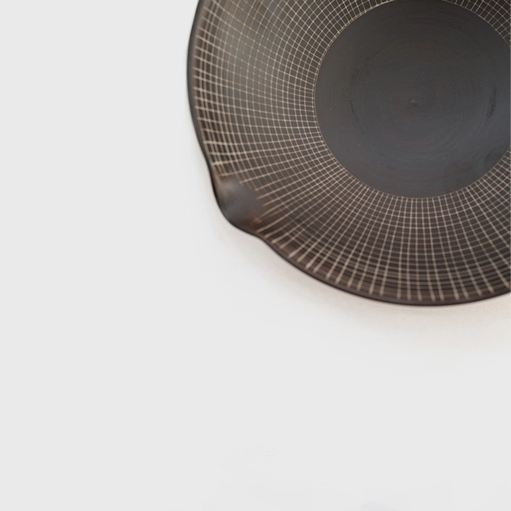 녹유의 유약을 나누어 千筋(실처럼 가늘고 긴 것이 무수히 많은 모양)무늬를 적용했습니다. 본 제품은 요리의 그릇으로도 사용하실 수 있습니다.