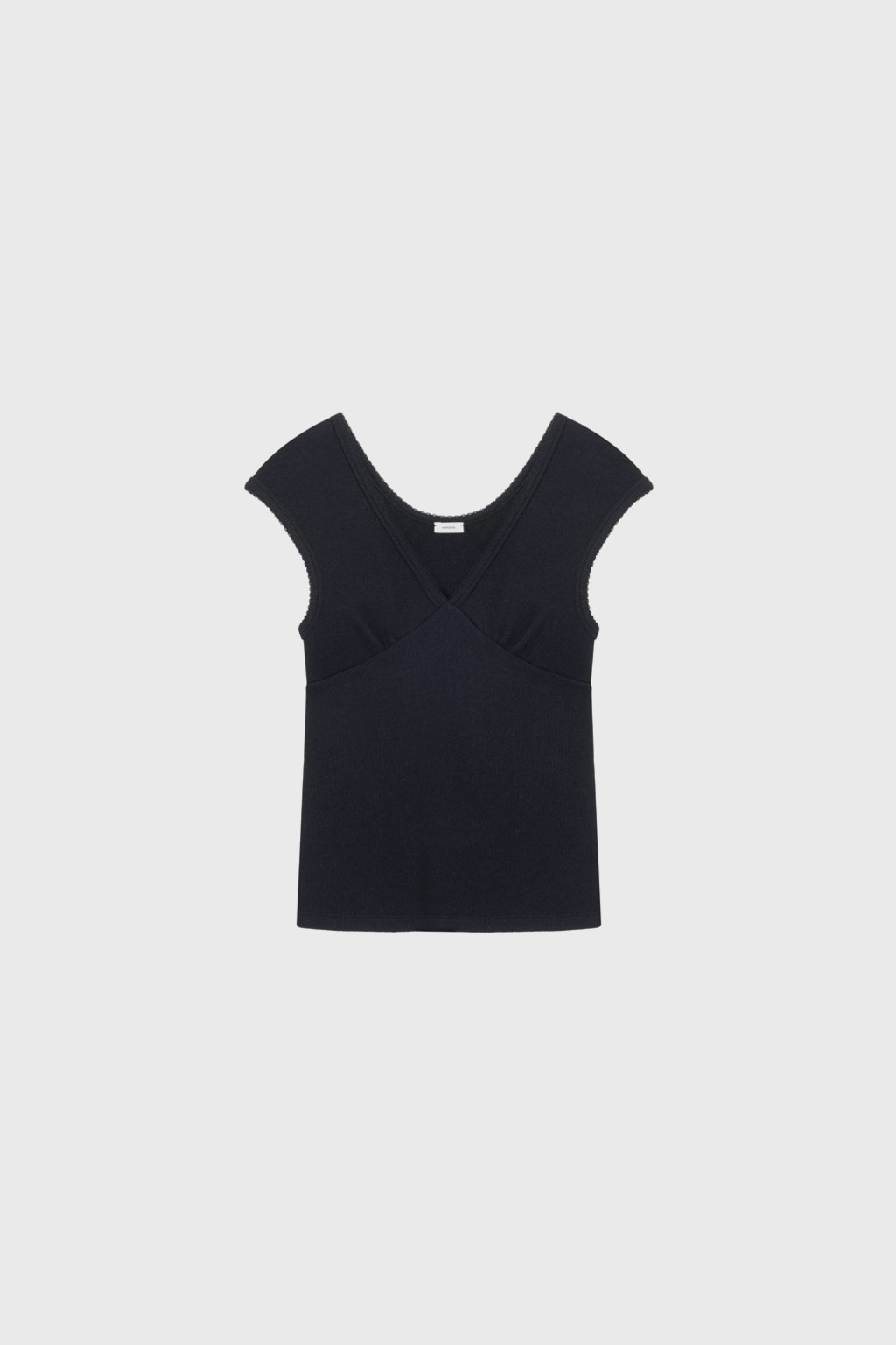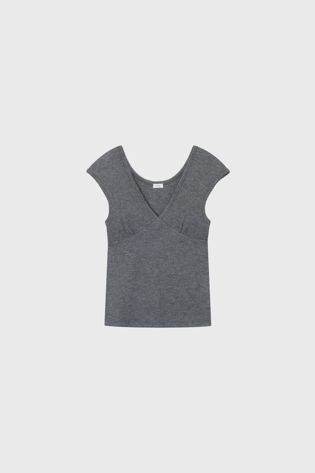 [3rd] Scallop Cap Sleeve Top (Ivory / Light Gray / Melange Gray / Black)