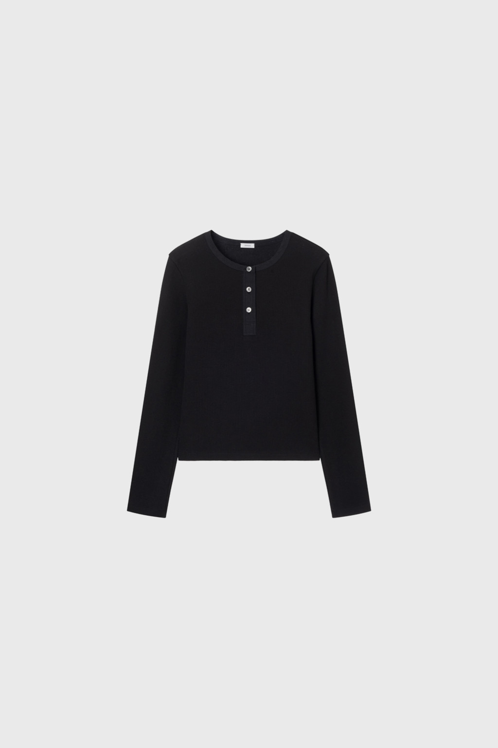 사계절 활용하기 좋은 신축성 있는 코튼 립 소재로 제작된 헨리 티셔츠입니다. 프론트 버튼과 면으로 감싼 라운드 넥 디테일이 특징이며, 적당한 기장과 사이즈로 누구나 편하게 입을 수 있는 소장가치 있는 에센셜 아이템입니다.