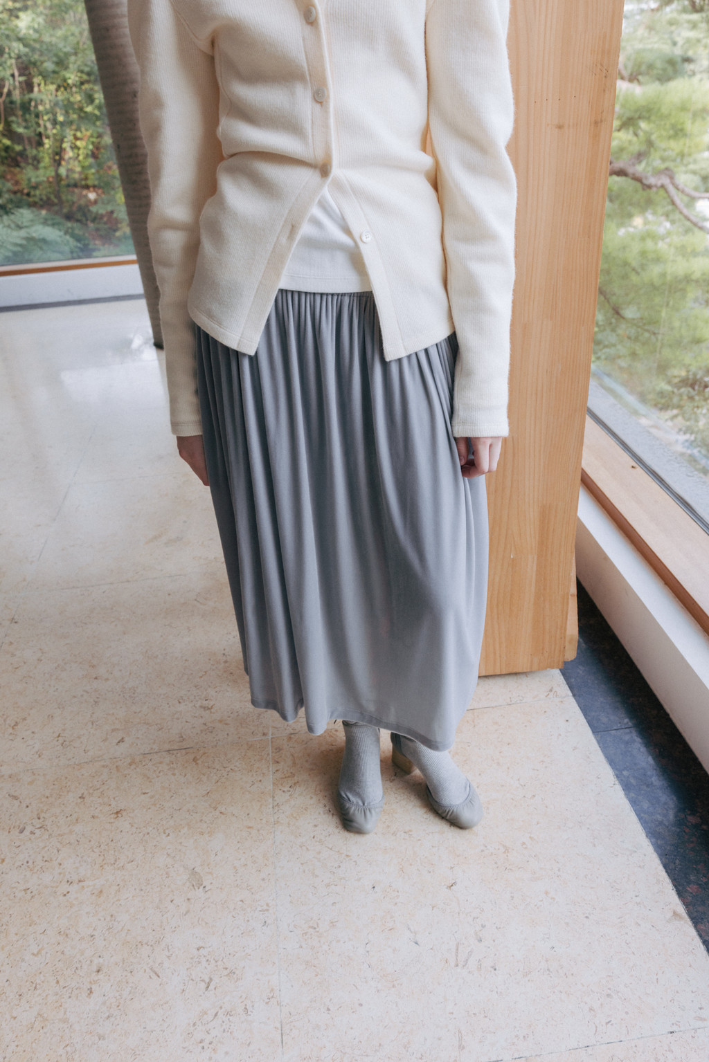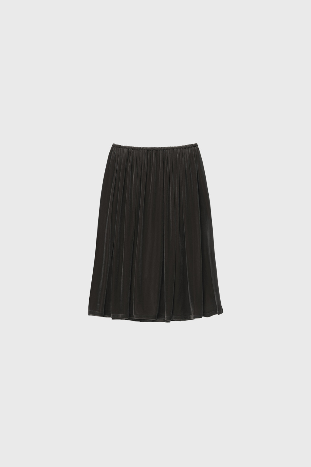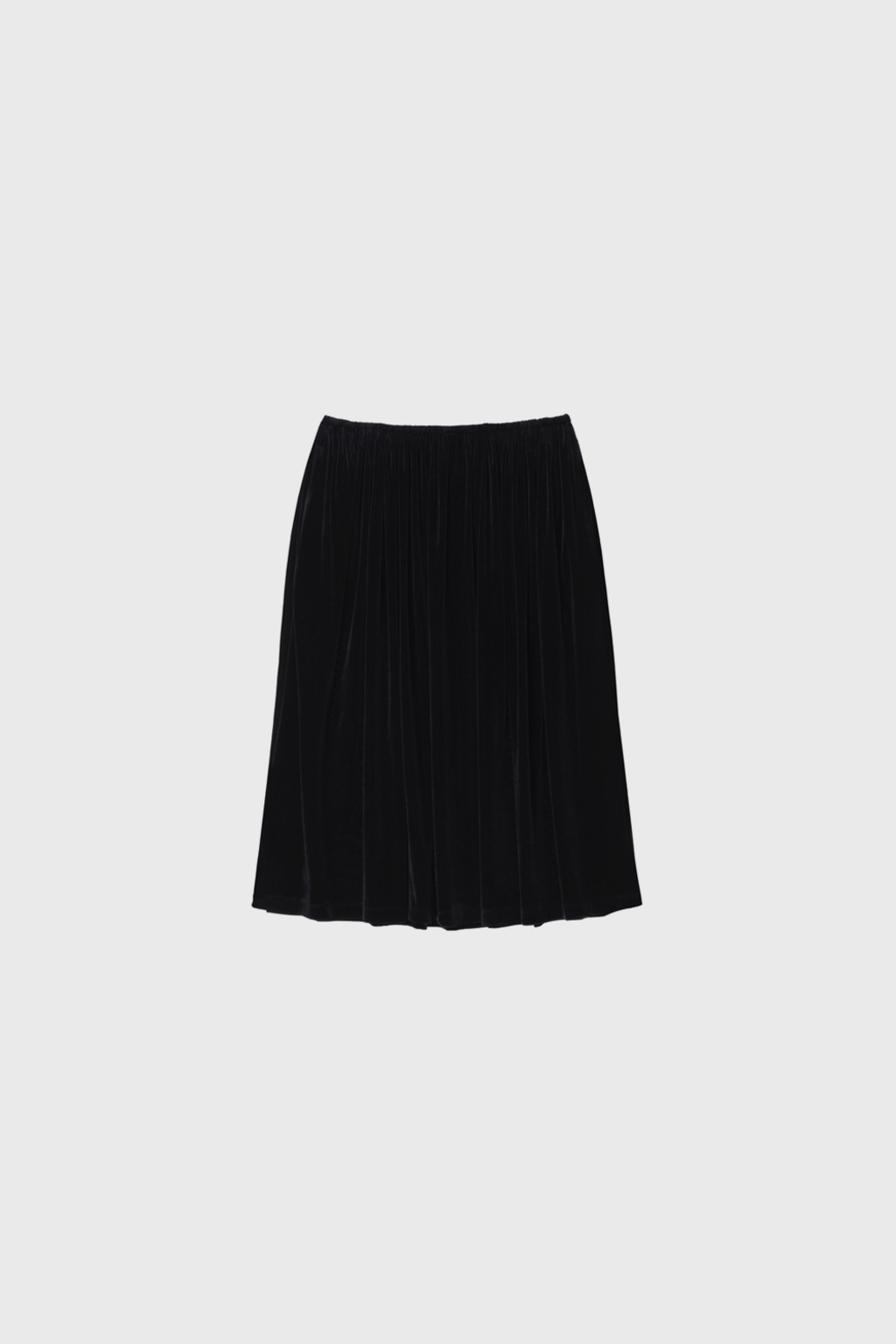 Velvet Jersey Shirred Midi Skirt (Ivory / Gray / Khaki / Black)
