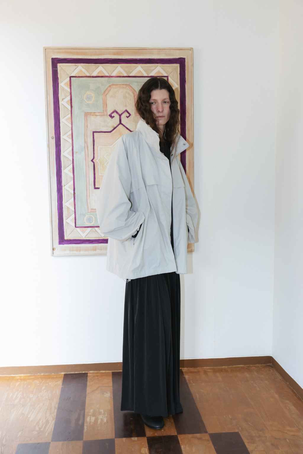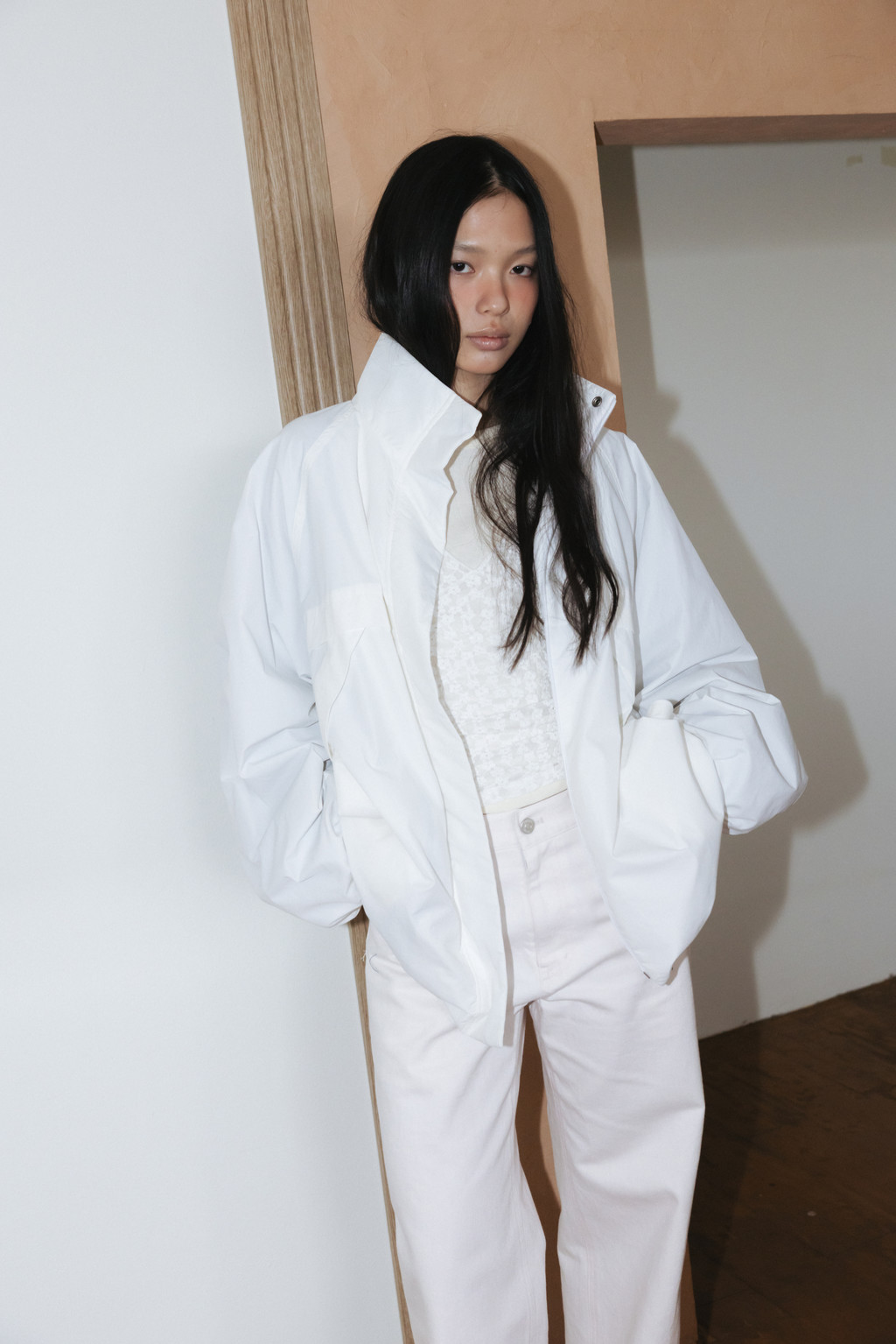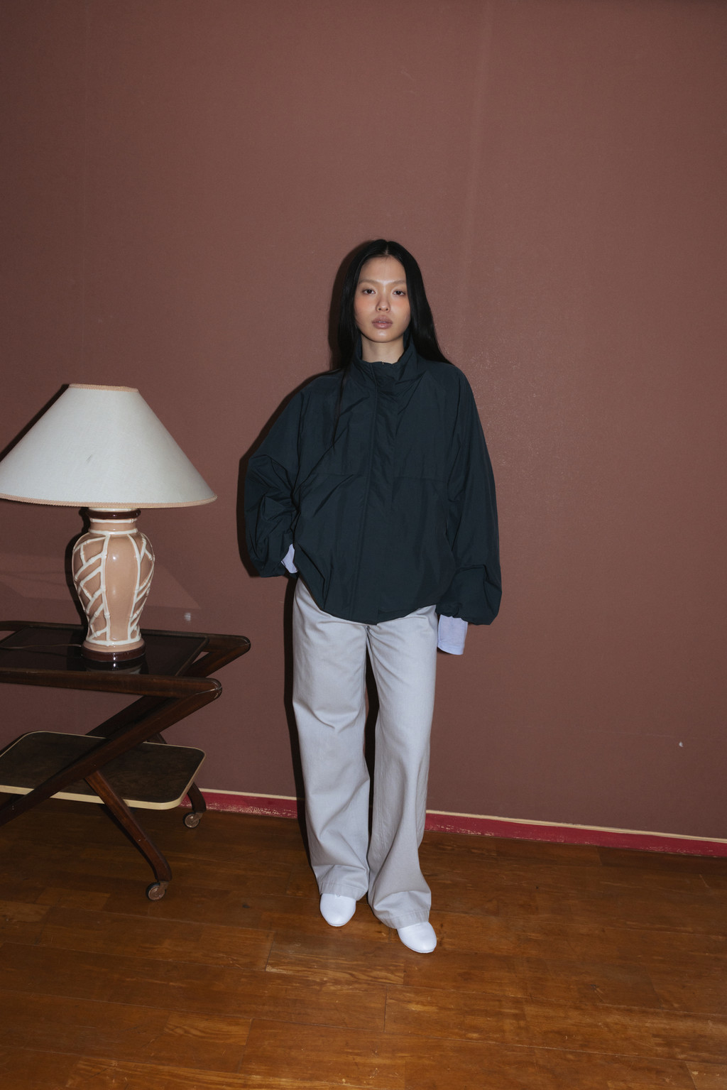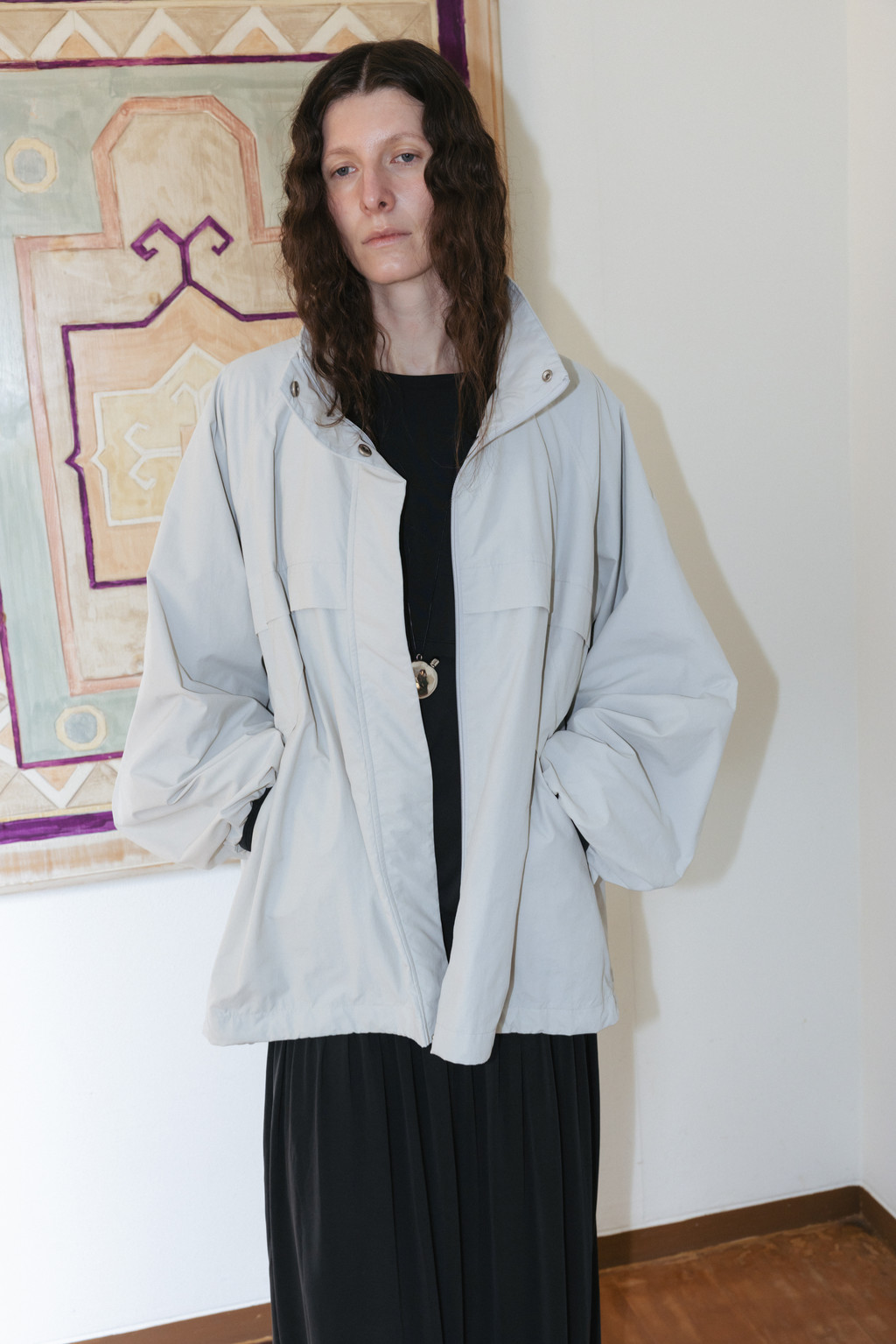 시원함이 느껴지는 바스락거리는 코튼 나일론 소재를 사용한 바람막이 점퍼입니다. 간절기 찬 바람을 막아주며, 엉덩이를 덮는 하프 기장과 넉넉한 사이즈로 편안하게 착용할 수 있습니다. 하이넥 디자인과 밑단 스트링 기능으로 다양한 실루엣 연출이 가능하며, 소매 끝 밴드가 바람을 막아주고 풍성한 볼륨감으로 연출되는 아이템입니다.