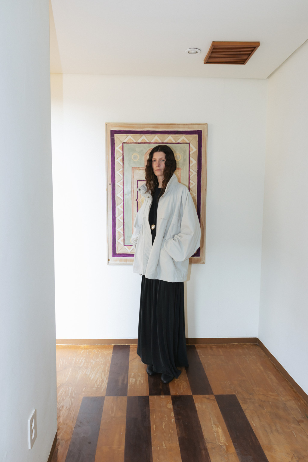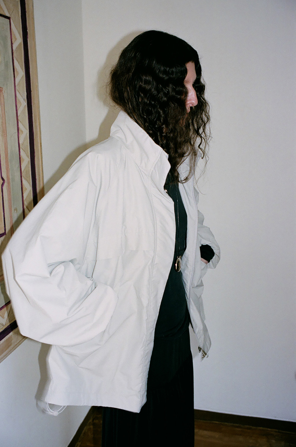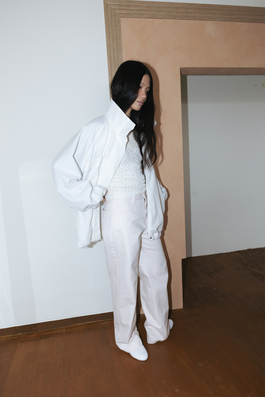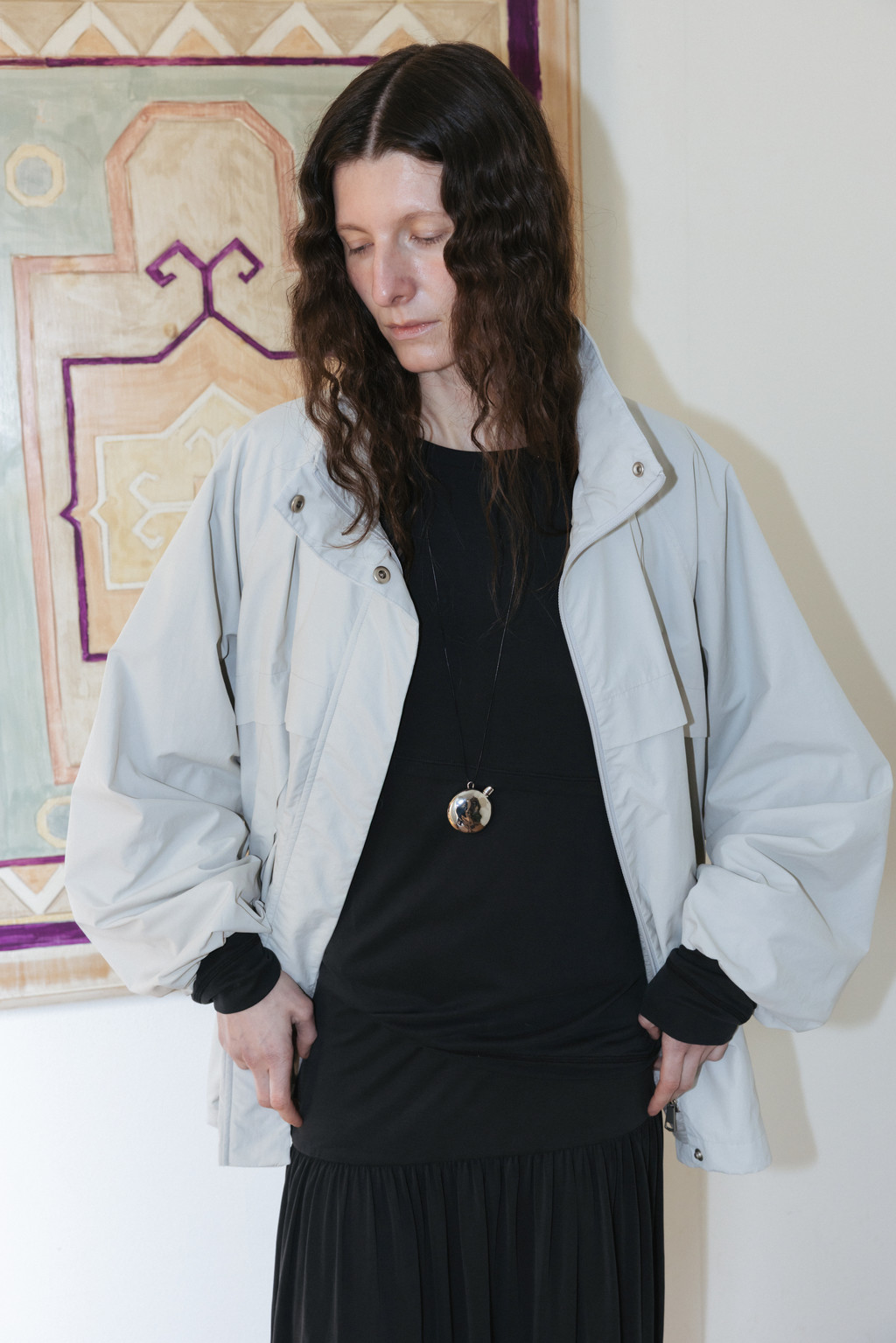 시원함이 느껴지는 바스락거리는 코튼 나일론 소재를 사용한 바람막이 점퍼입니다. 간절기 찬 바람을 막아주며, 엉덩이를 덮는 하프 기장과 넉넉한 사이즈로 편안하게 착용할 수 있습니다. 하이넥 디자인과 밑단 스트링 기능으로 다양한 실루엣 연출이 가능하며, 소매 끝 밴드가 바람을 막아주고 풍성한 볼륨감으로 연출되는 아이템입니다.
