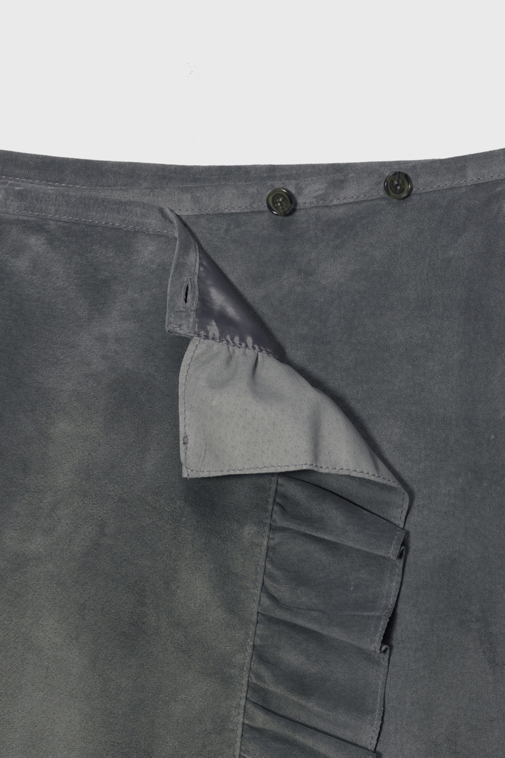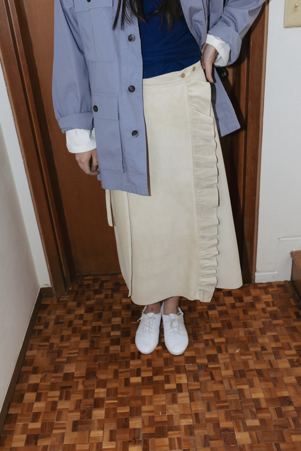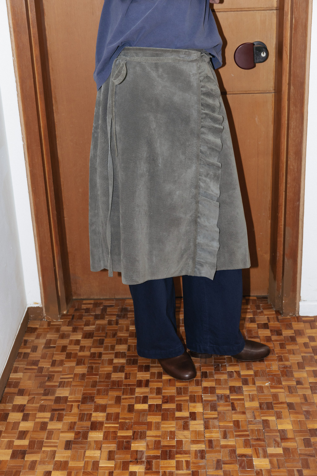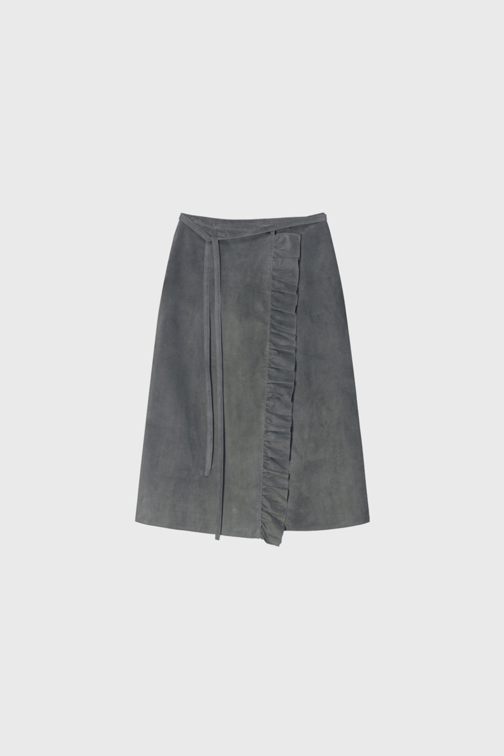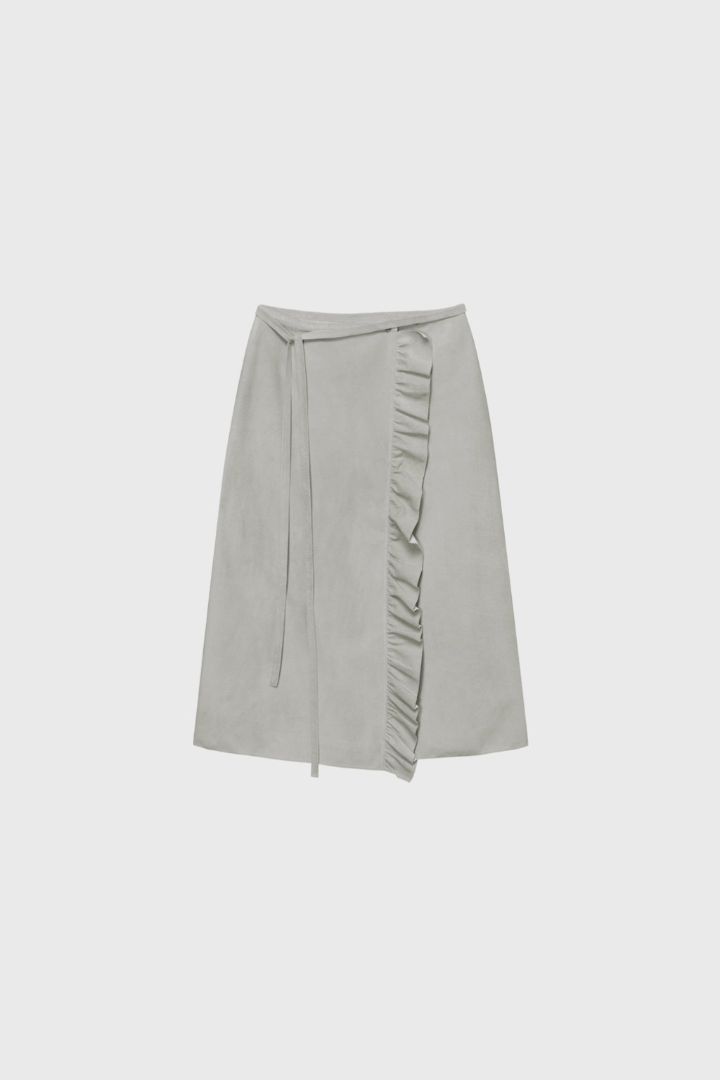 Suede Frill Wrap Skirt (Ivory / Gray)NEW
