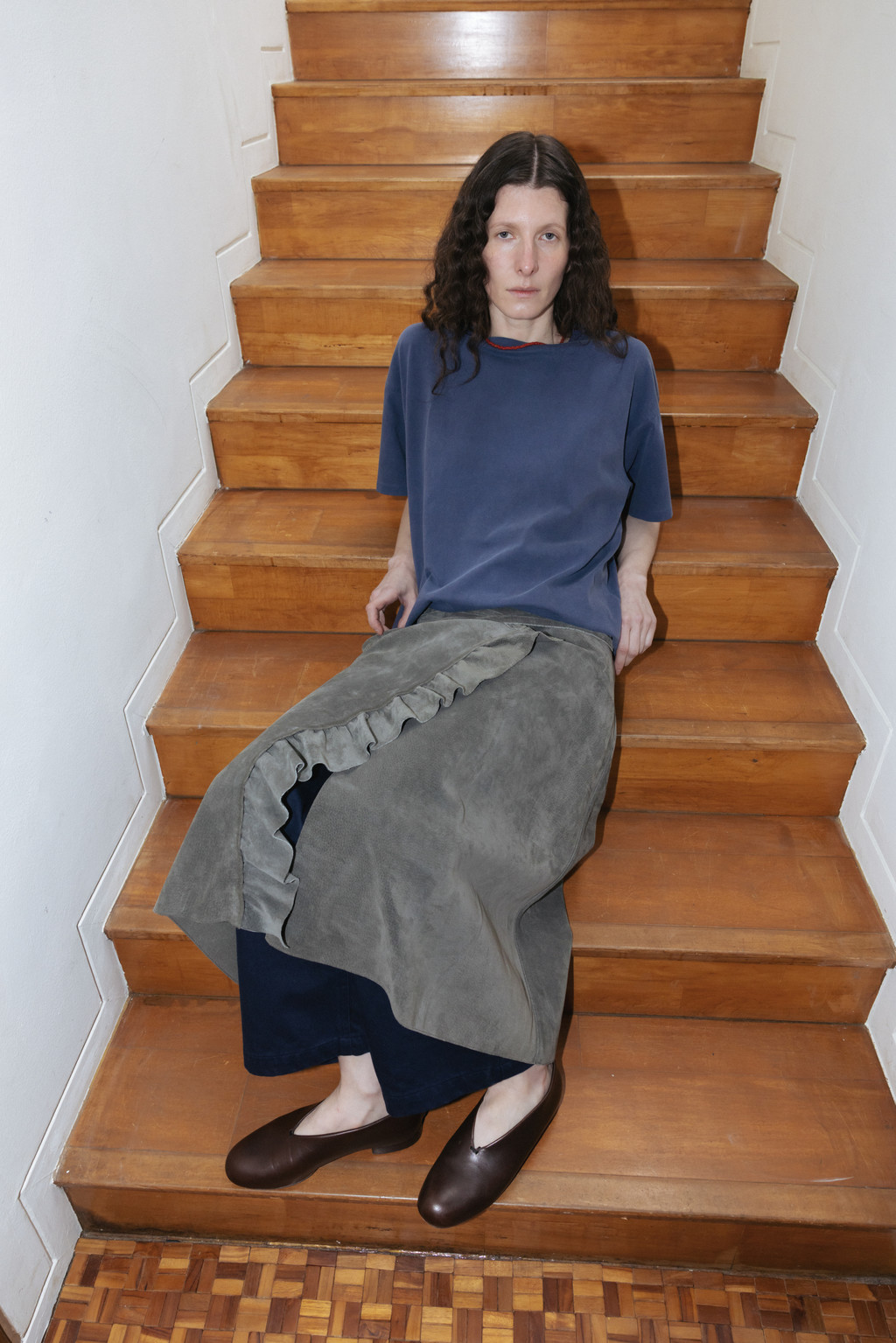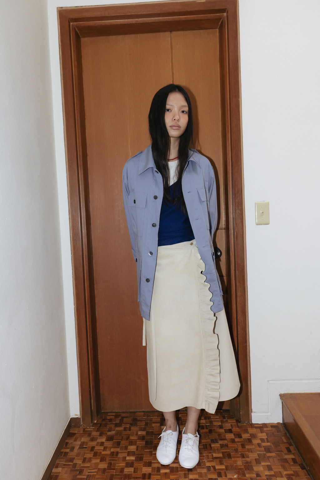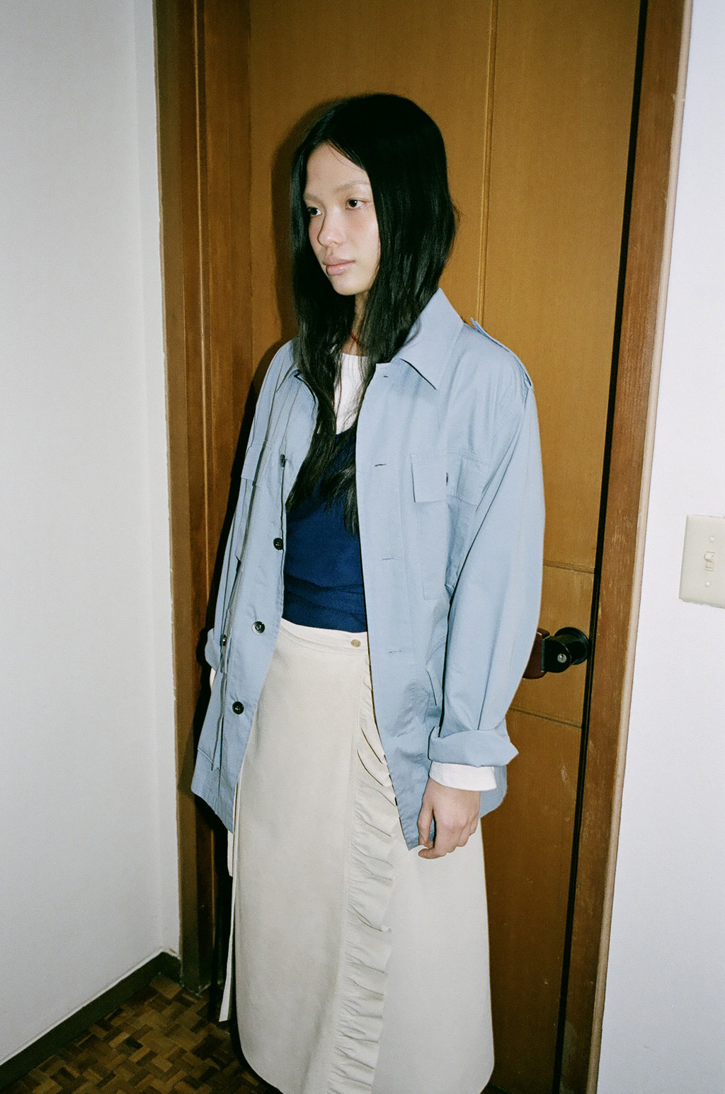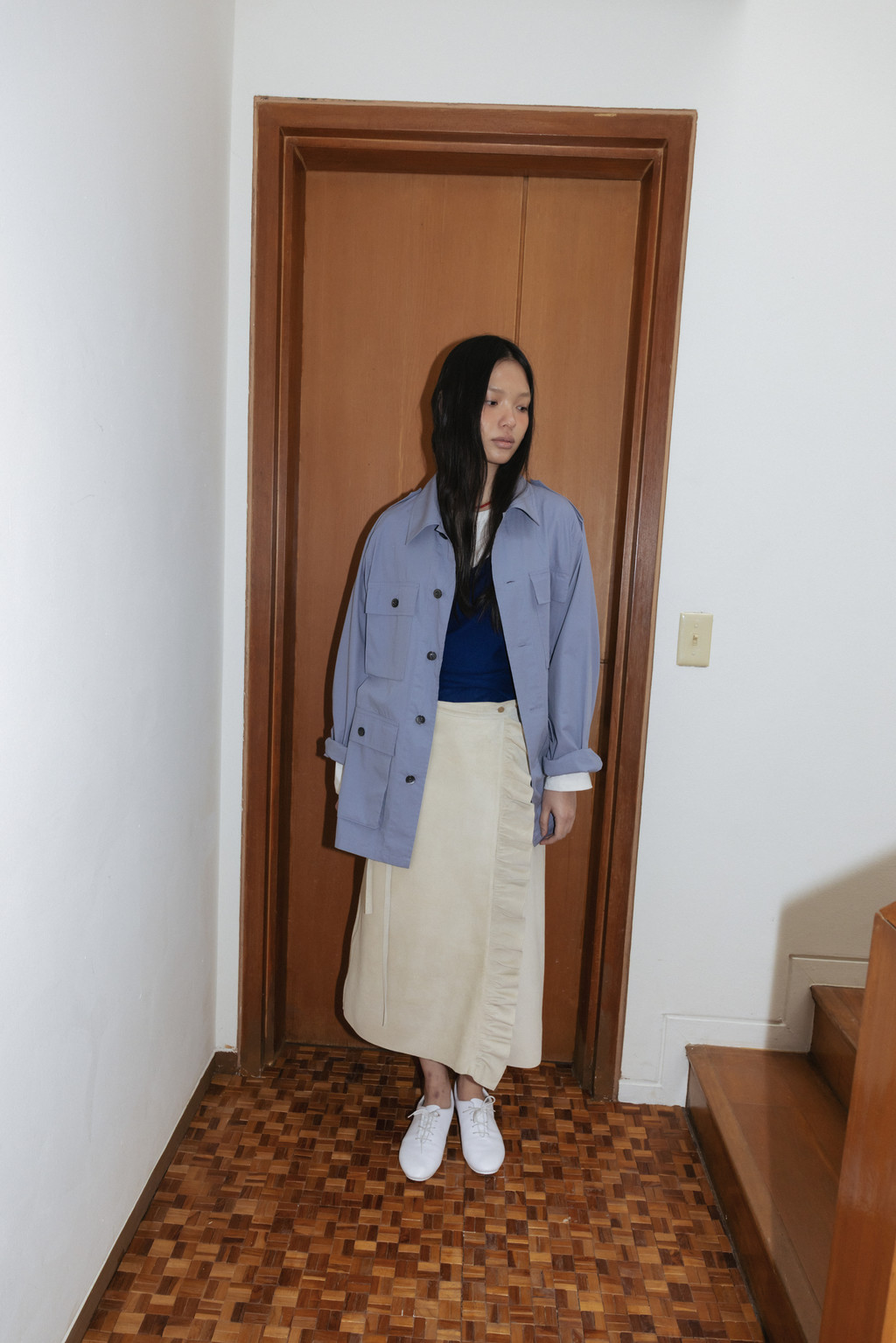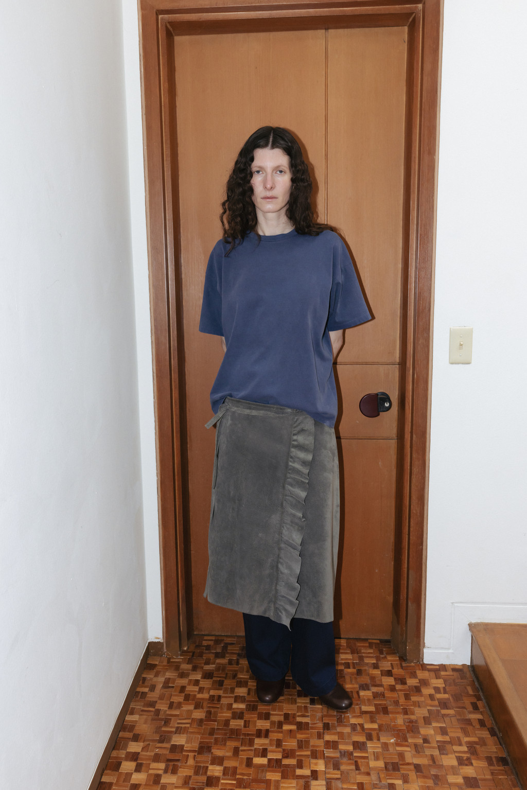 Suede Frill Wrap Skirt (Ivory / Gray)NEW