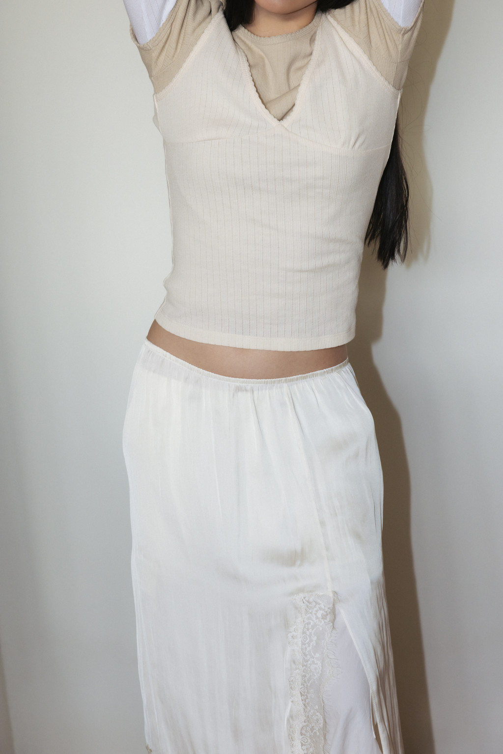 [Exclusive] Lace-Trim Skirt (Ivory / Light Gray / Blue)NEW