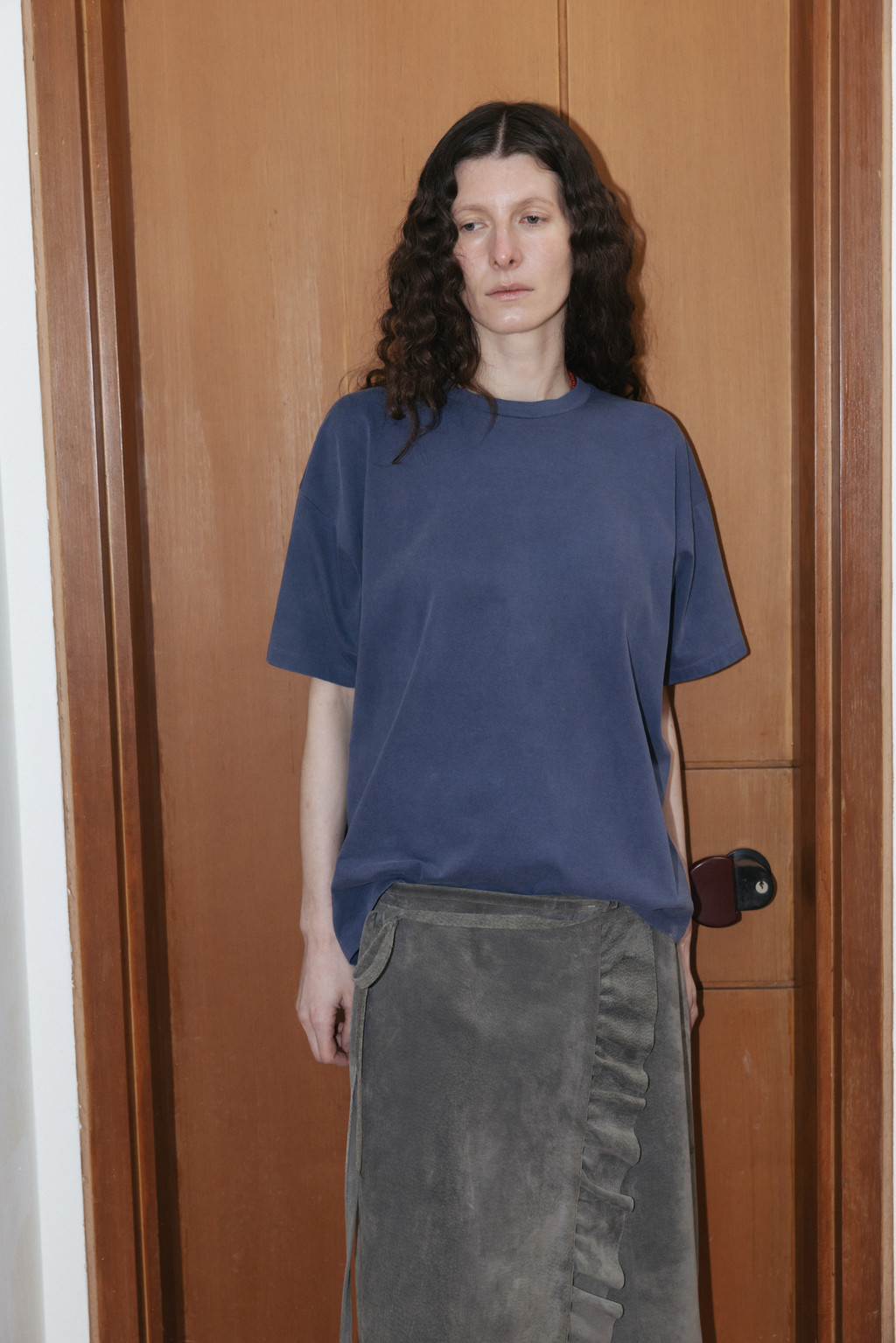 빈티지한 무드가 느껴지는 다잉 티셔츠입니다. 모노하만의 컬러로 후가공 처리되어 특별한 컬러감을 더했으며, 편하게 입을 수 있는 넉넉한 사이즈로 제작되었습니다.