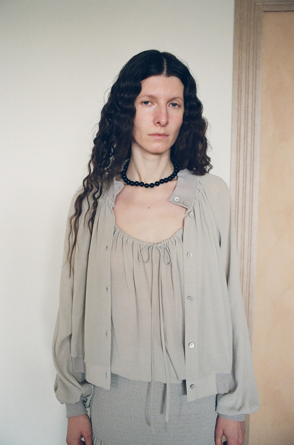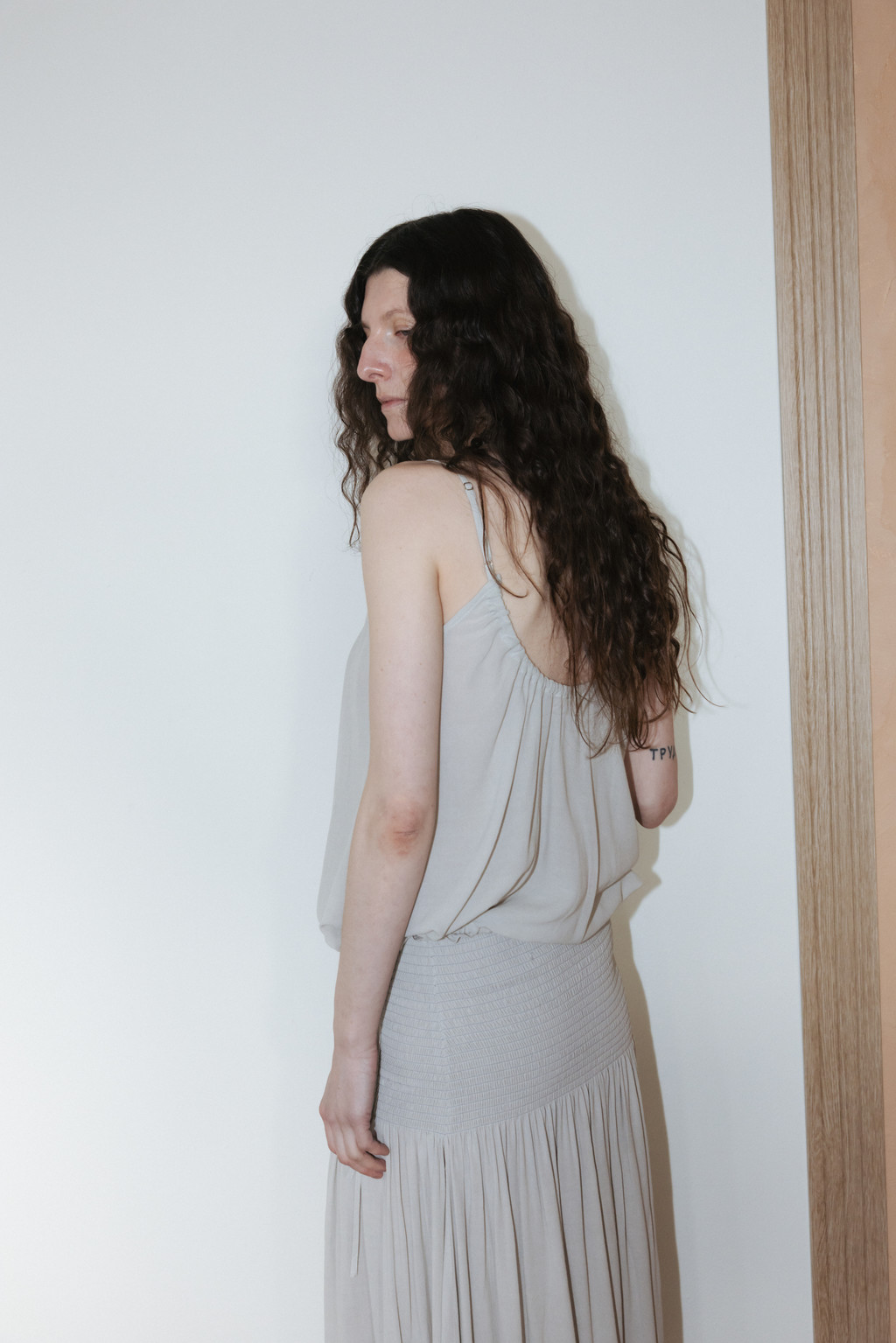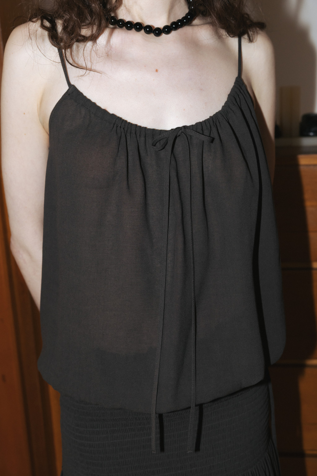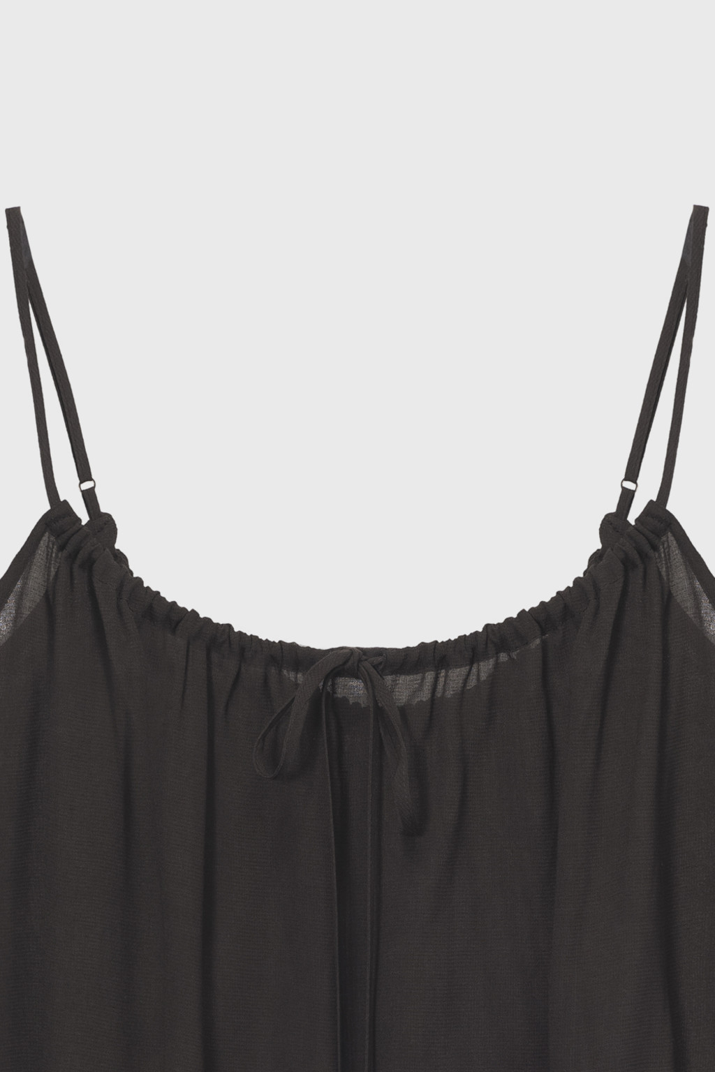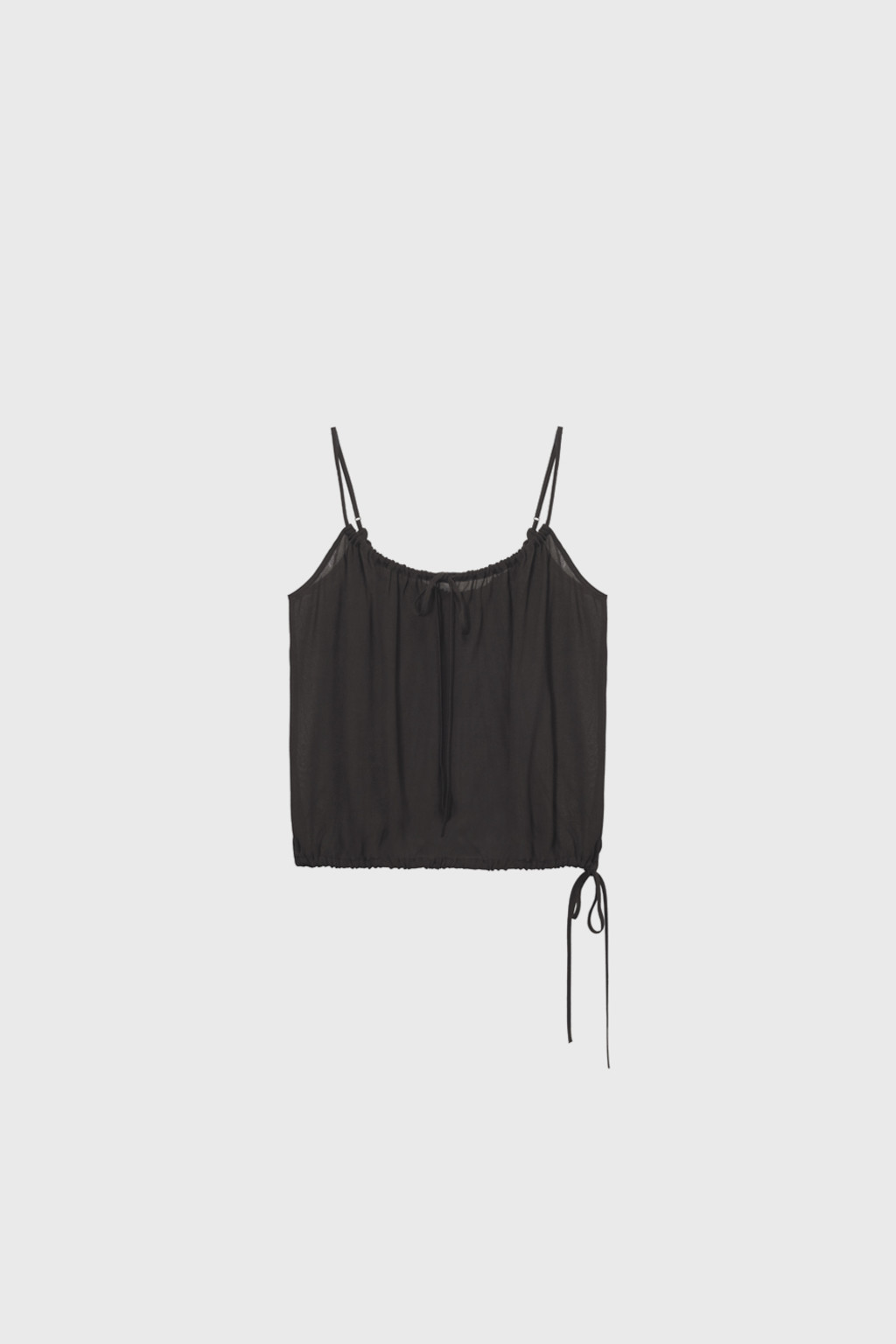 Sheer Shirred Camisole Blouse (Light Gray / Brown)NEW