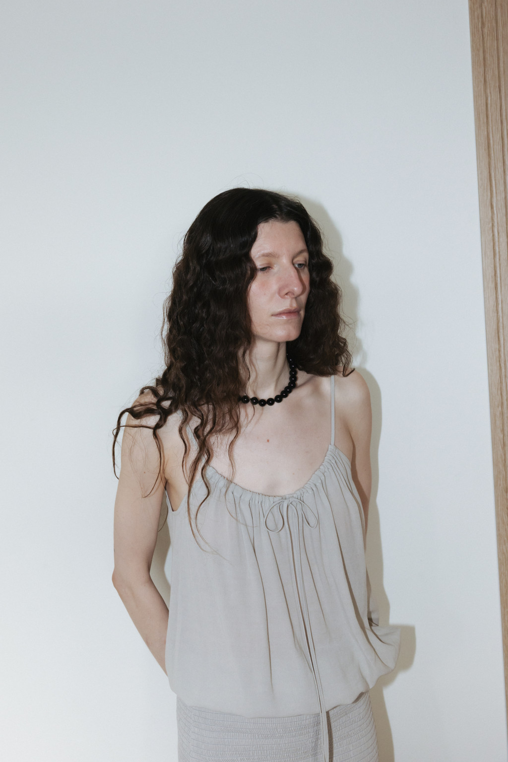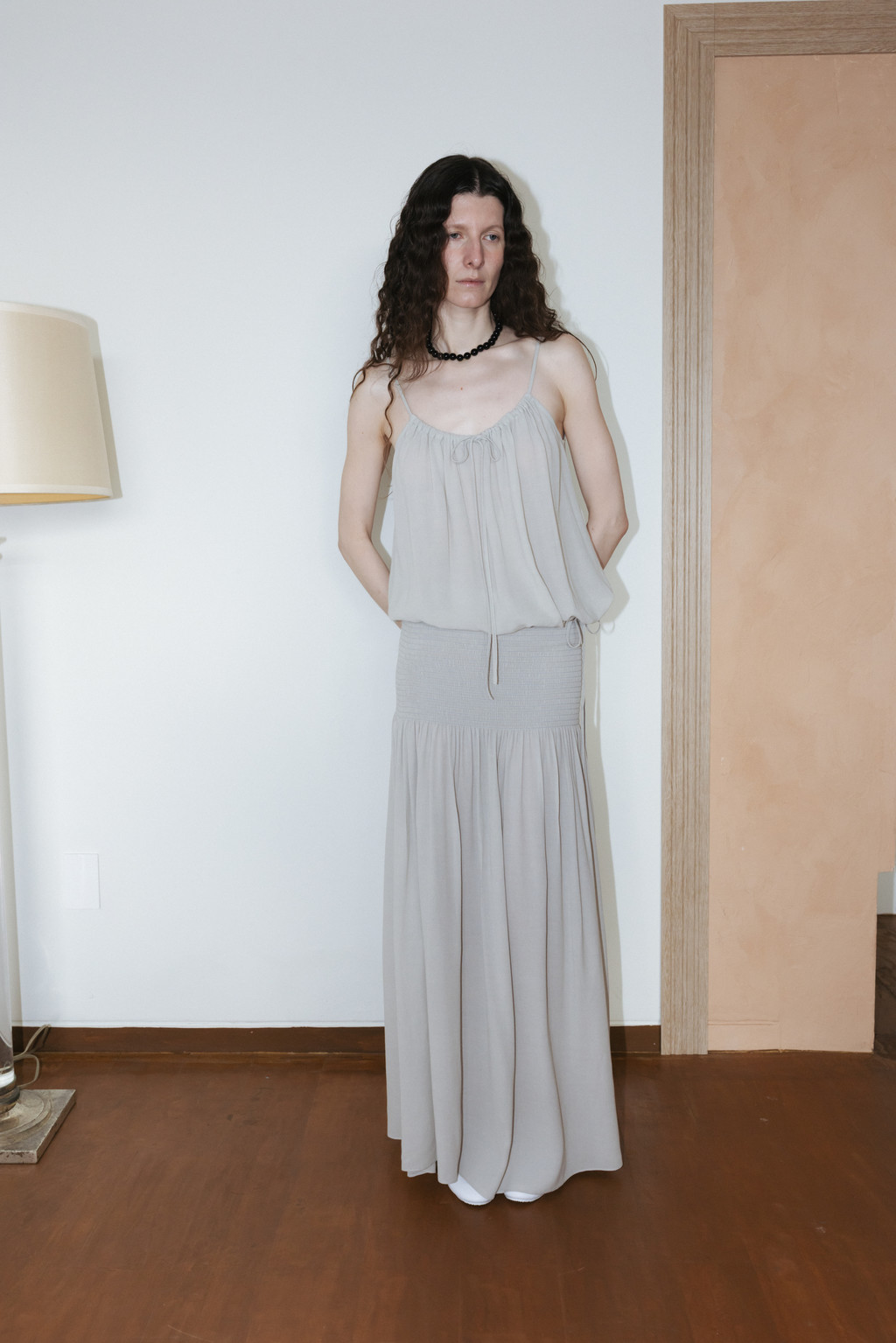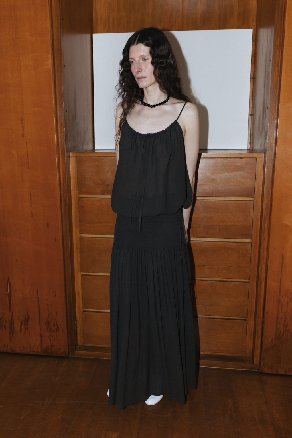 얇고 시어한 소재로 제작된 셔링 슬리브리스 블라우스입니다. 자연스럽게 퍼지는 셔링 디테일이 은은한 포인트가 되며, 여유 있는 사이즈와 적당한 기장으로 편안하게 착용할 수 있습니다. 밑단 스트링을 통해 볼륨감 있는 실루엣을 연출할 수 있고, 어깨 끈 조절 디테일로 체형에 맞게 길이 조절이 가능합니다.