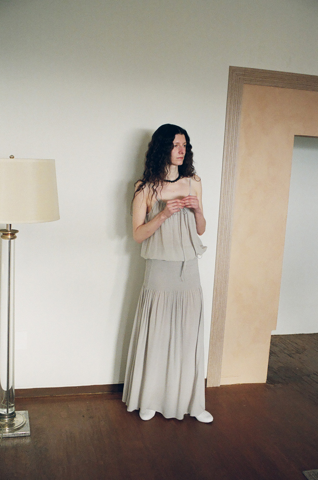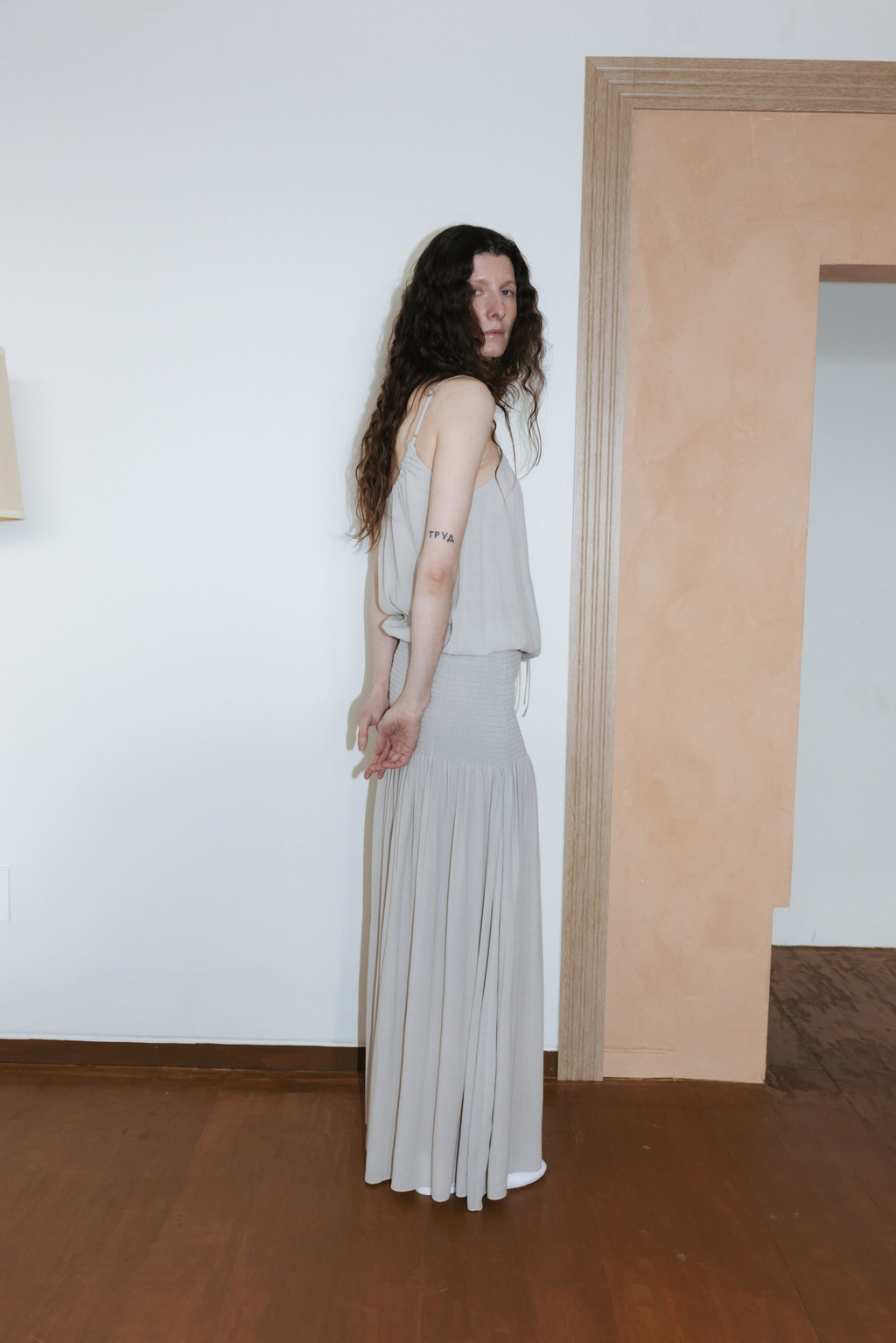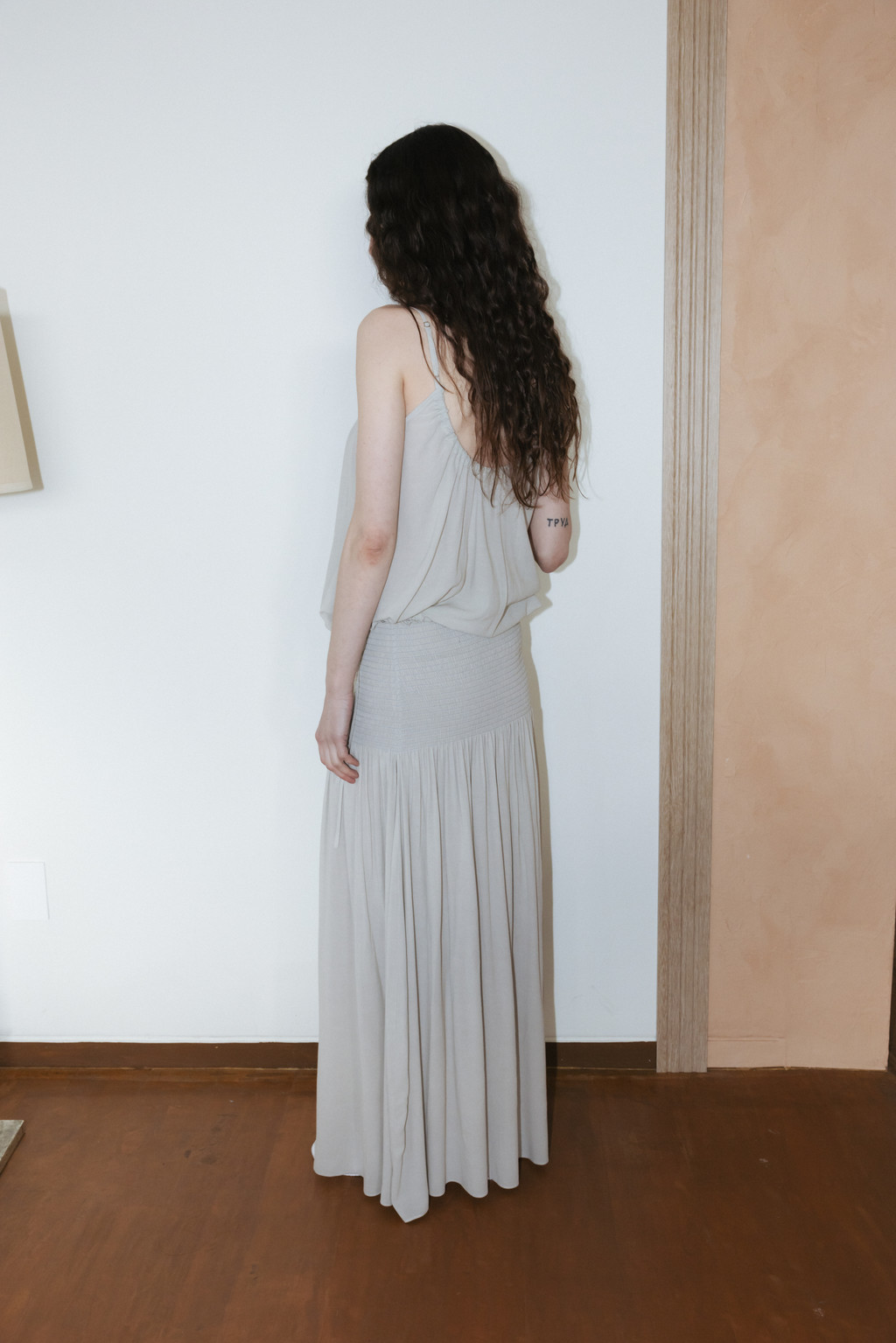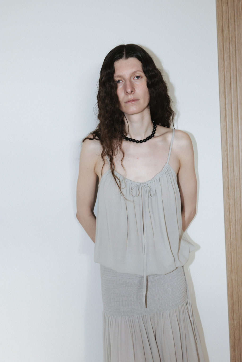 얇고 시어한 소재로 제작된 셔링 슬리브리스 블라우스입니다. 자연스럽게 퍼지는 셔링 디테일이 은은한 포인트가 되며, 여유 있는 사이즈와 적당한 기장으로 편안하게 착용할 수 있습니다. 밑단 스트링을 통해 볼륨감 있는 실루엣을 연출할 수 있고, 어깨 끈 조절 디테일로 체형에 맞게 길이 조절이 가능합니다.