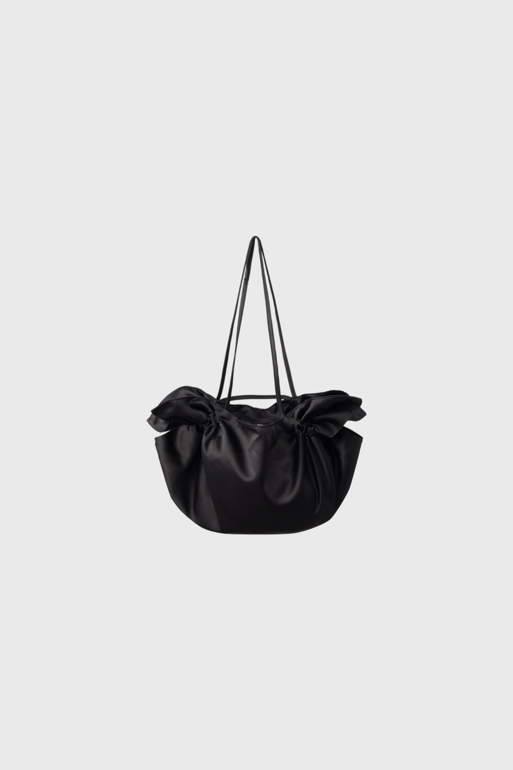 은은한 광택이 감도는 사틴 소재로 제작된 미니 토트백입니다. 이중 봉제 처리로 형태를 탄탄하게 잡아주며, 잎의 실루엣에서 영감받은 유니크한 디자인이 특징입니다. 스트랩을 조절해 가방의 형태와 사이즈를 다양하게 연출할 수 있어 활용도가 높습니다.