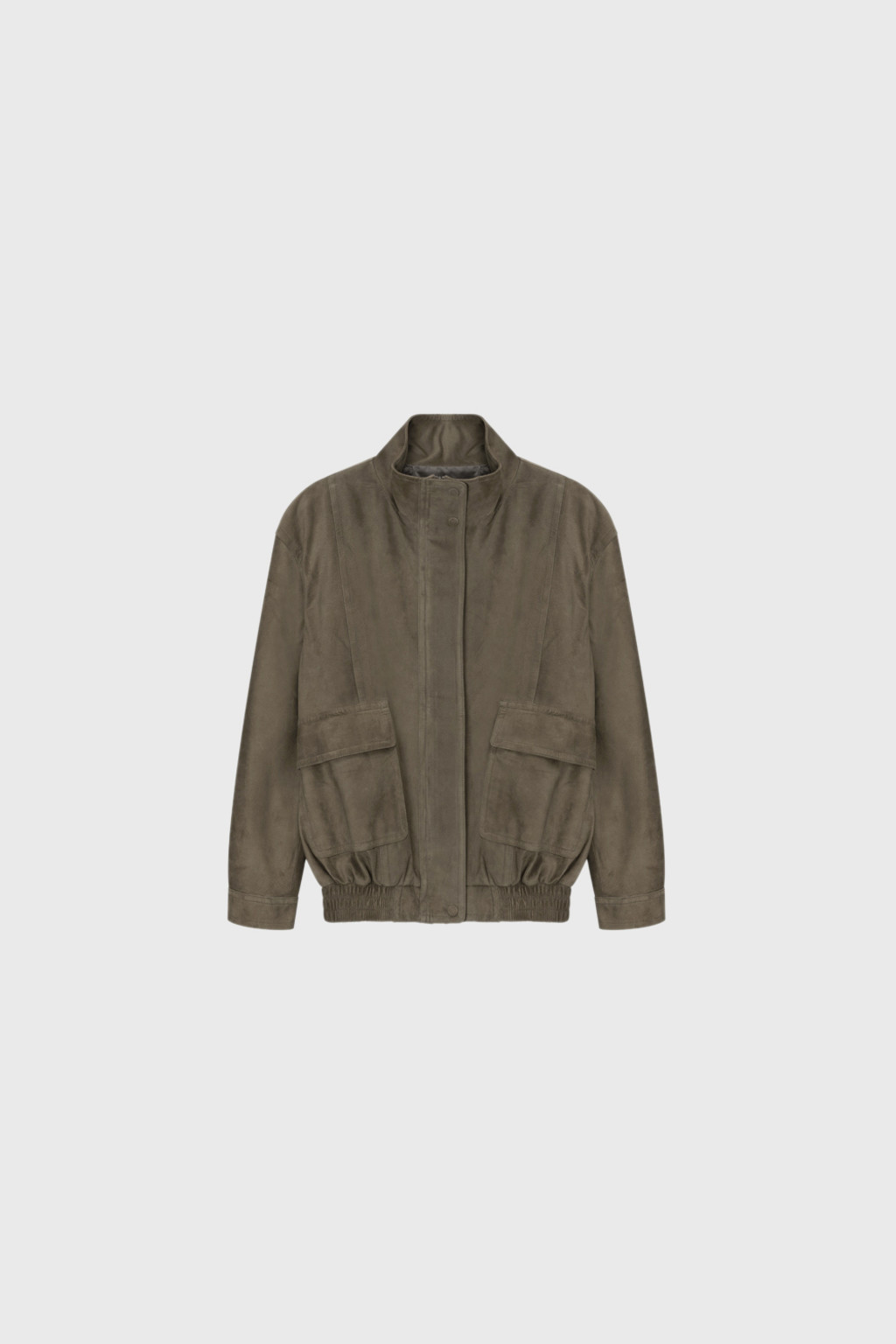 부드러운 터치감의 스웨이드를 사용해 클래식한 A2 재킷을 현대적으로 재해석한 하이넥 점퍼입니다. 채도가 낮은 자연스러운 카멜 색상은 따스한 무드를 더하며, 빈티지한 매력이 돋보이는 카키 색상은 고급스러움을 강조합니다. 전체적으로 여유롭고 볼륨감 있는 실루엣에 밑단은 넓은 밴딩 처리로 깔끔하게 마무리되었으며, 캐주얼한 무드를 더하기 위해 두 줄의 오버 스티치와 제 원단으로 싼 스냅 디테일을 적용해 견고함을 더했습니다. 클래식하면서도 세련된 디자인으로 다가오는 시즌 다양한 스타일링에 활용하기 좋은 아이템입니다.