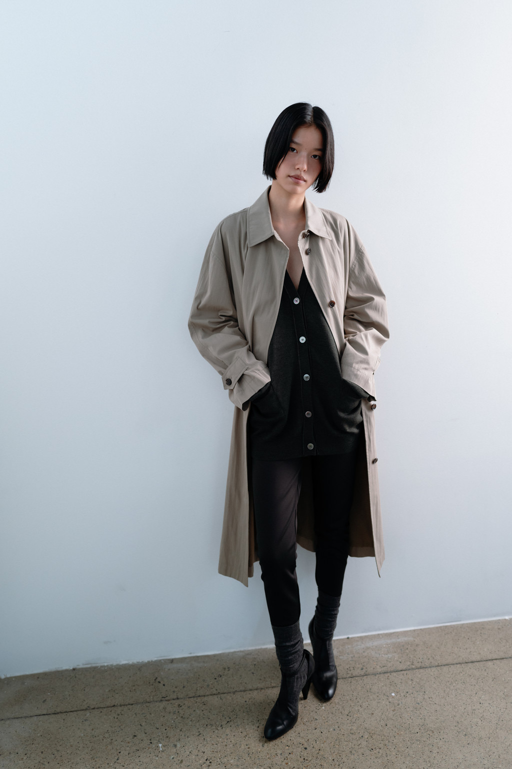 가을 시즌에 활용하기 좋은 싱글 트렌치 코트입니다. 종아리까지 오는 적당한 기장감과 여유 있는 실루엣으로 편안한 착용감을 선사합니다. 모노하만의 컬러로 염색된 고밀도 트윌 코튼 소재를 사용해 고급스러운 질감을 느낄 수 있으며, 히든 클로징 디테일로 미니멀한 무드를 완성한 아이템입니다.