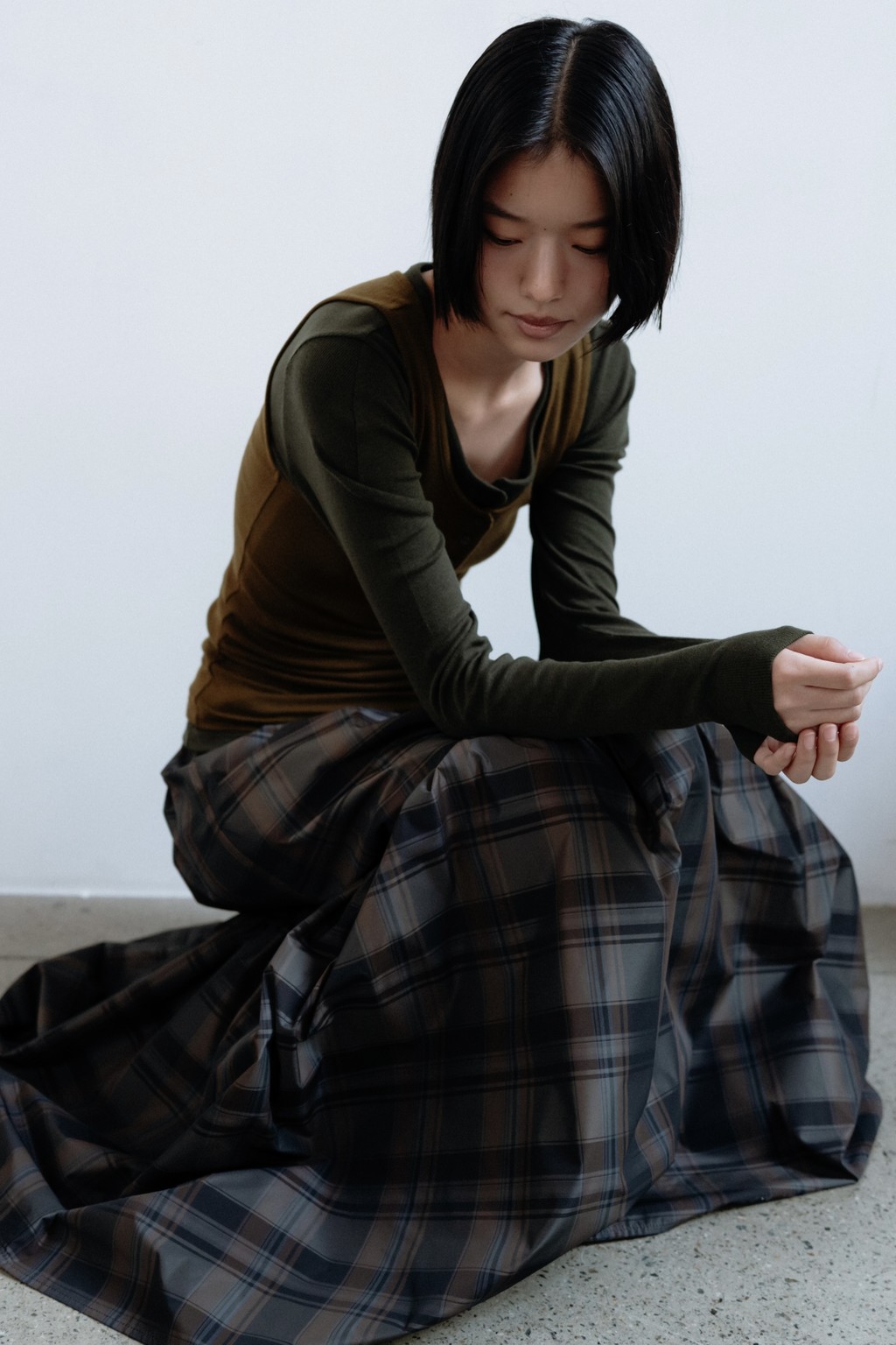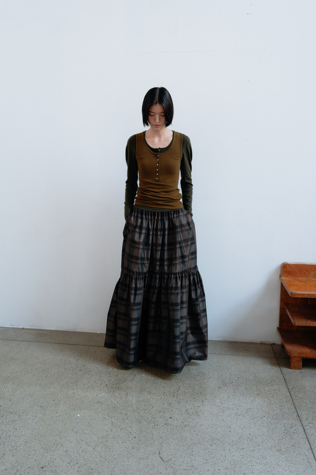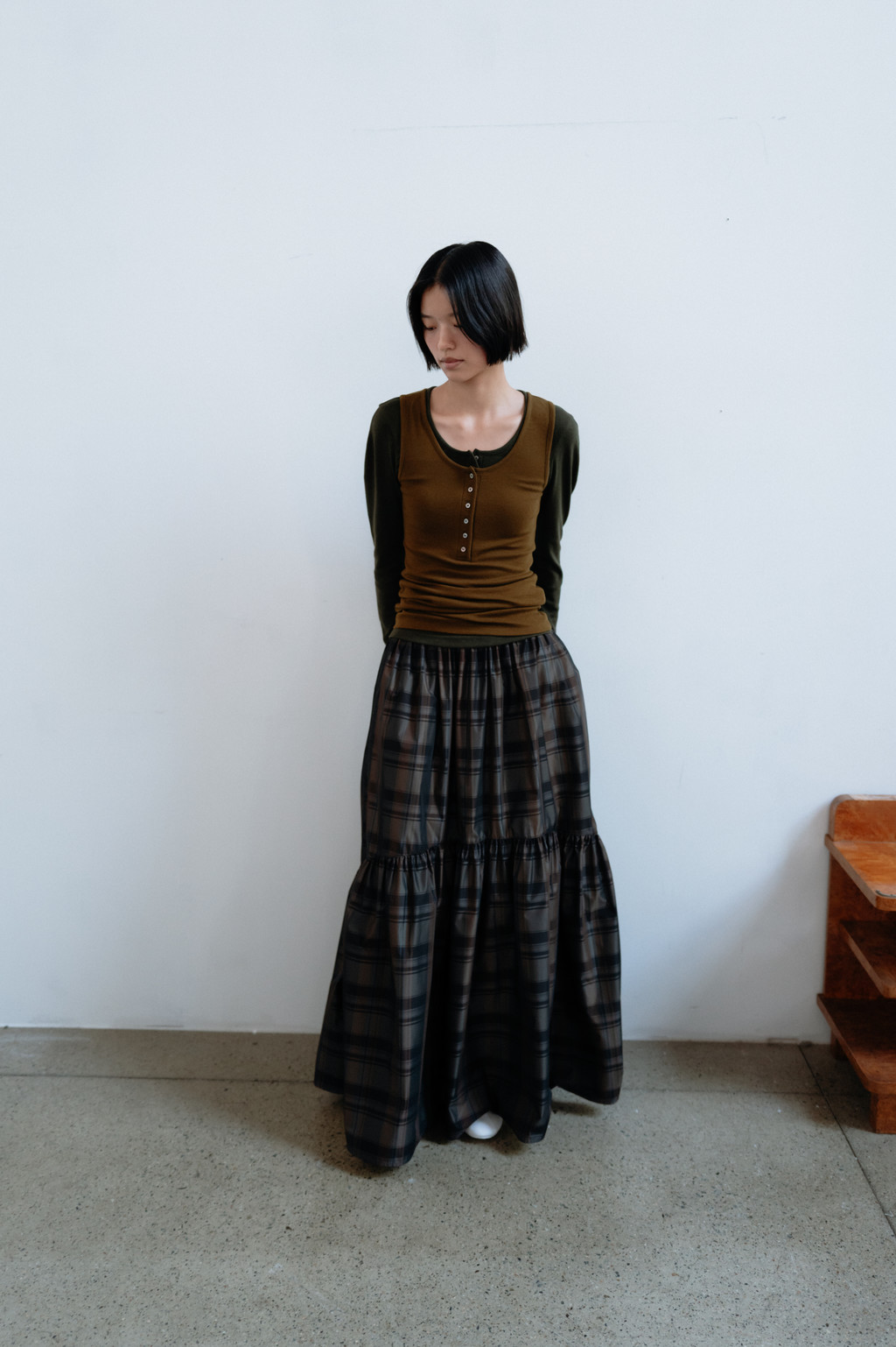 Check tiered skirt (khaki)