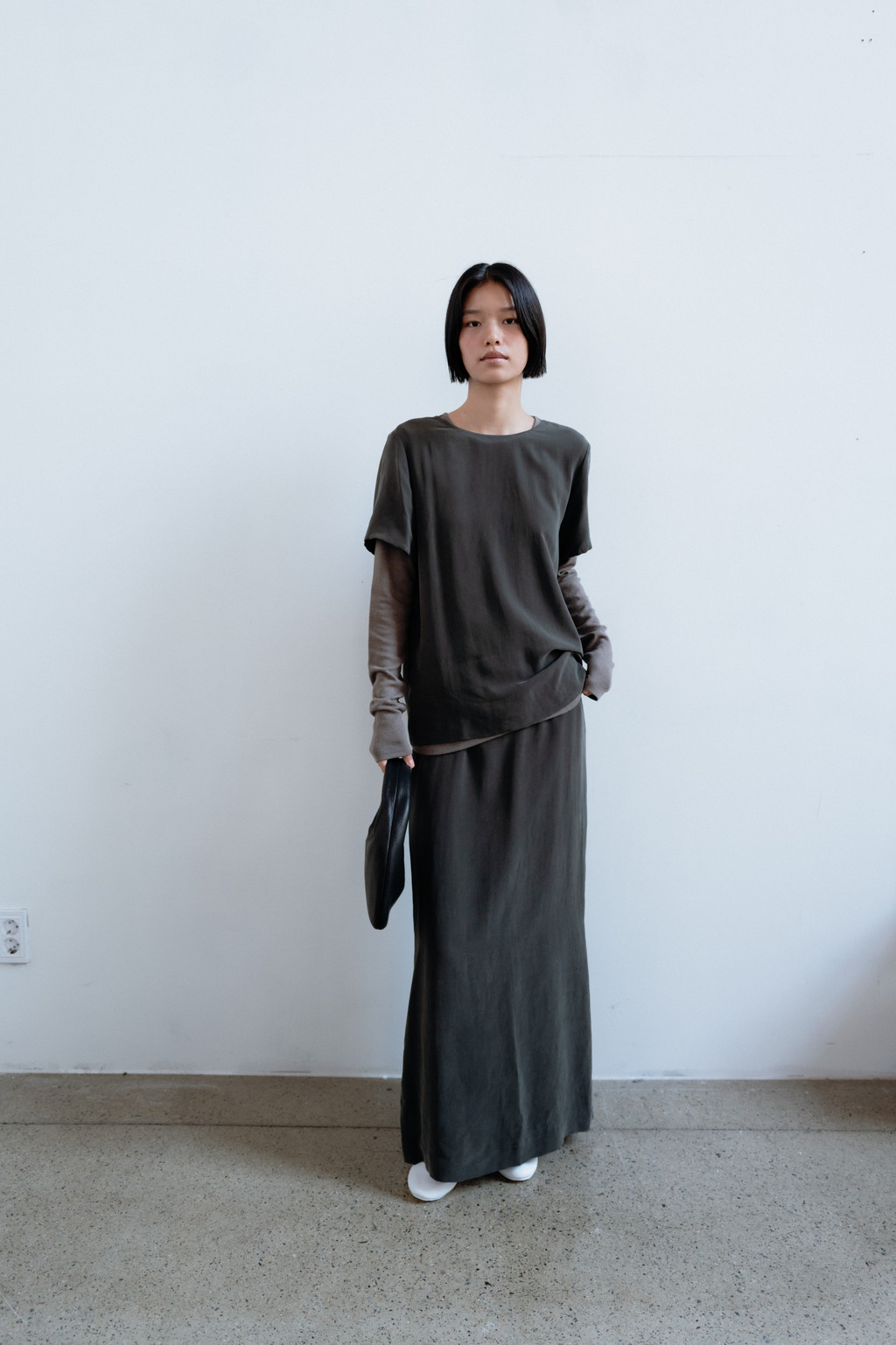 Cupro backless blouse (dark gray)
