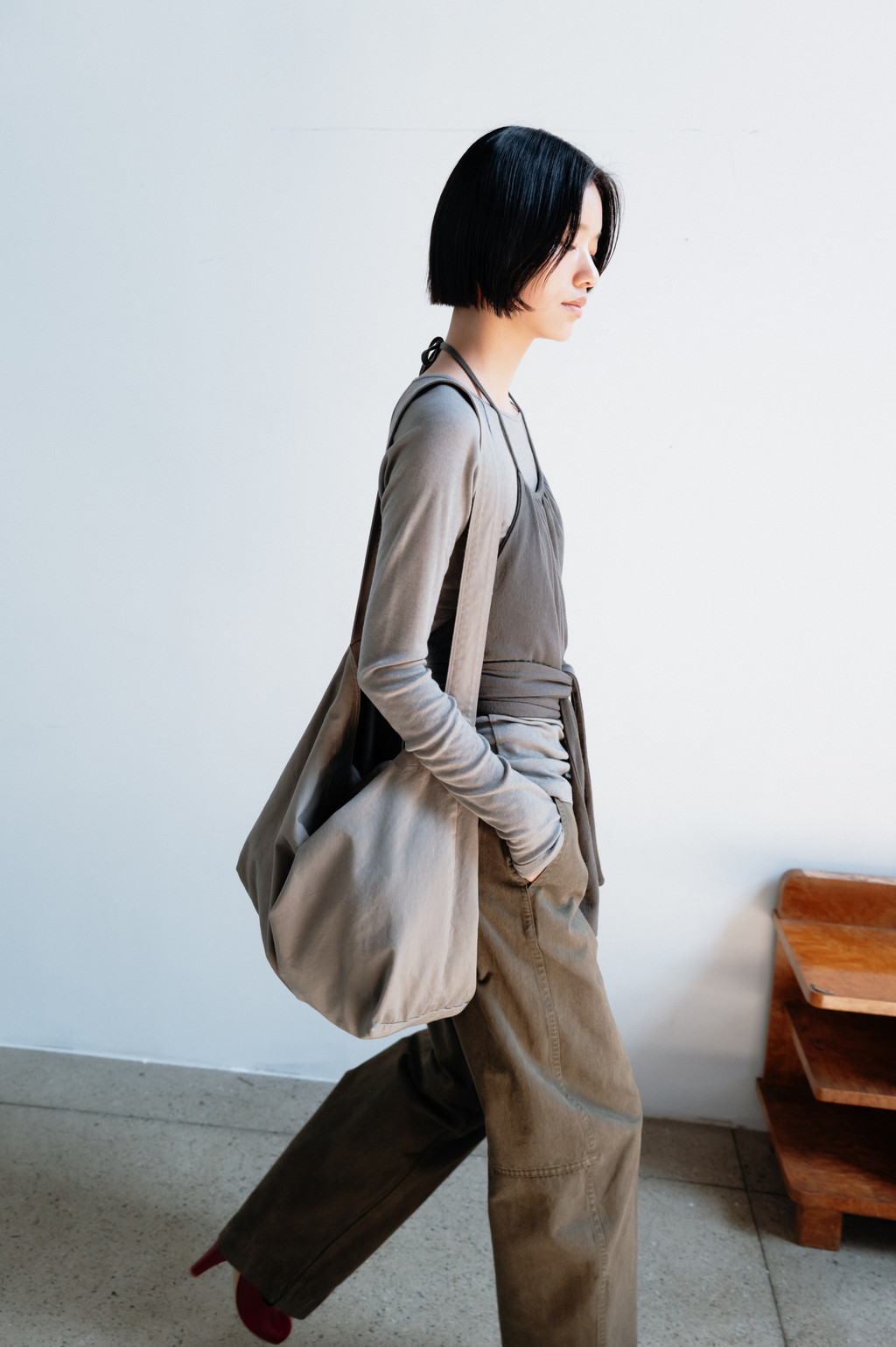 부드럽고 유연한 울 혼방 저지 소재로 제작되었으며 간절기 아우터 속 이너로 활용하기 좋습니다. 넓은 골 조직으로 짜여 체형에 구애 없이 입기 편하며 래글런 소매 디테일과 적당한 기장이 특징입니다.