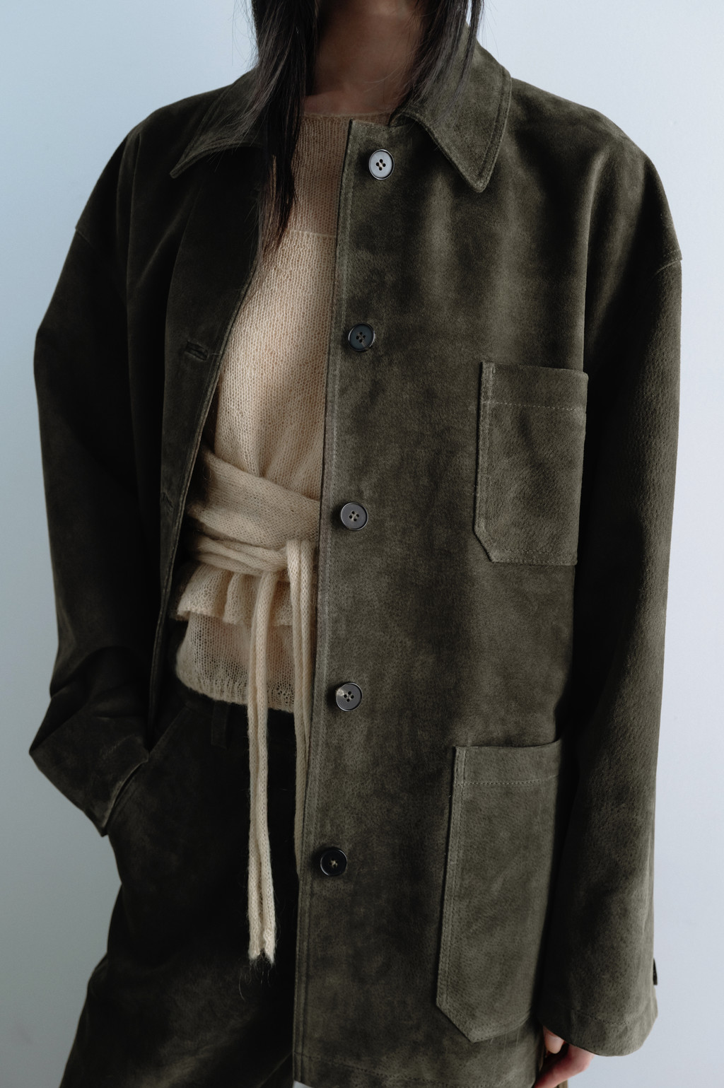 솜털처럼 보송보송한 터치감이 특징인 모헤어와 울 혼방 원사를 사용하여 만든 슬리브리스입니다. 슬리브리스의 기본 형태를 이루며 양옆으로 삼각형 형태의 긴 원단이 이어져 있어 스카프처럼 몸에 감싸 묶는 연출을 할 수 있습니다. 간절기에 얇은 티셔츠와 레이어드하기 좋도록 가볍게 완성하였습니다. 전체적으로 여유 있는 사이즈이지만 경쾌한 기장감으로 캐주얼한 무드 연출이 가능한 제품입니다.