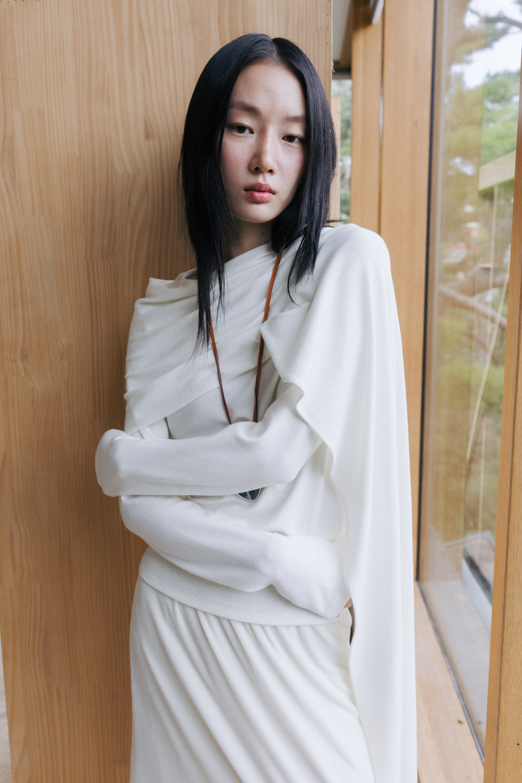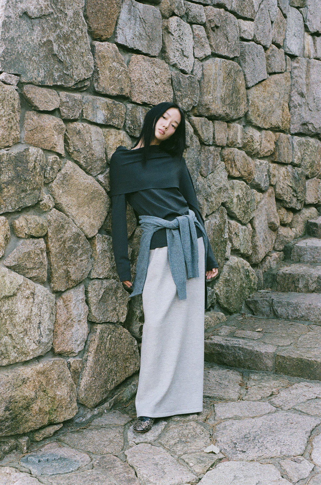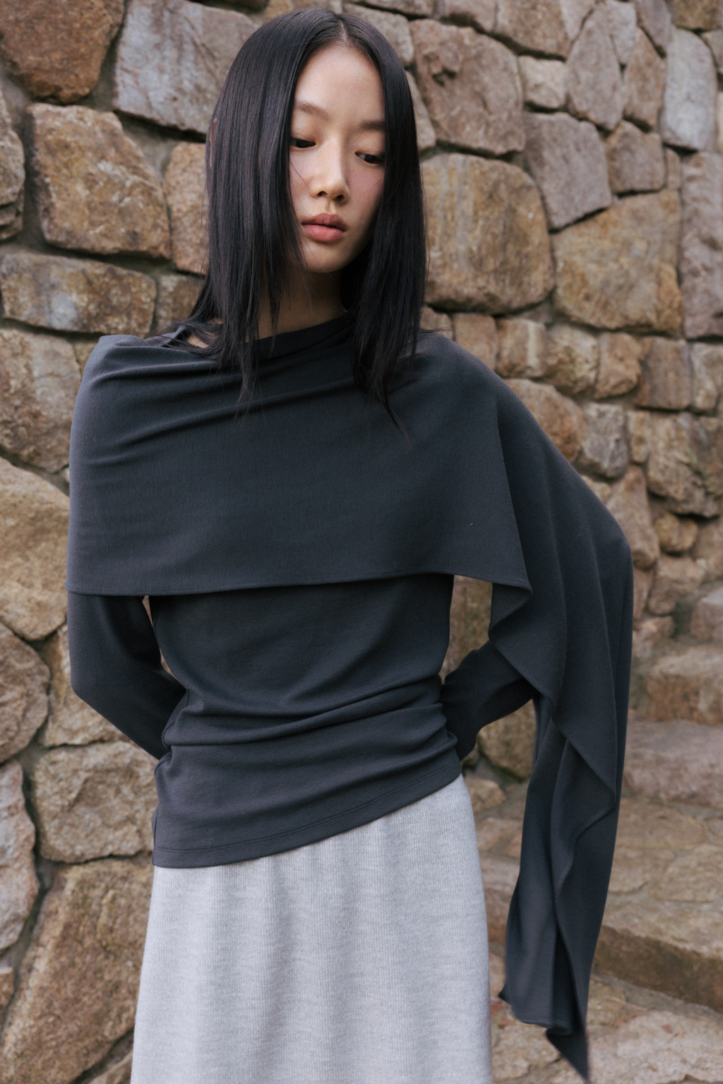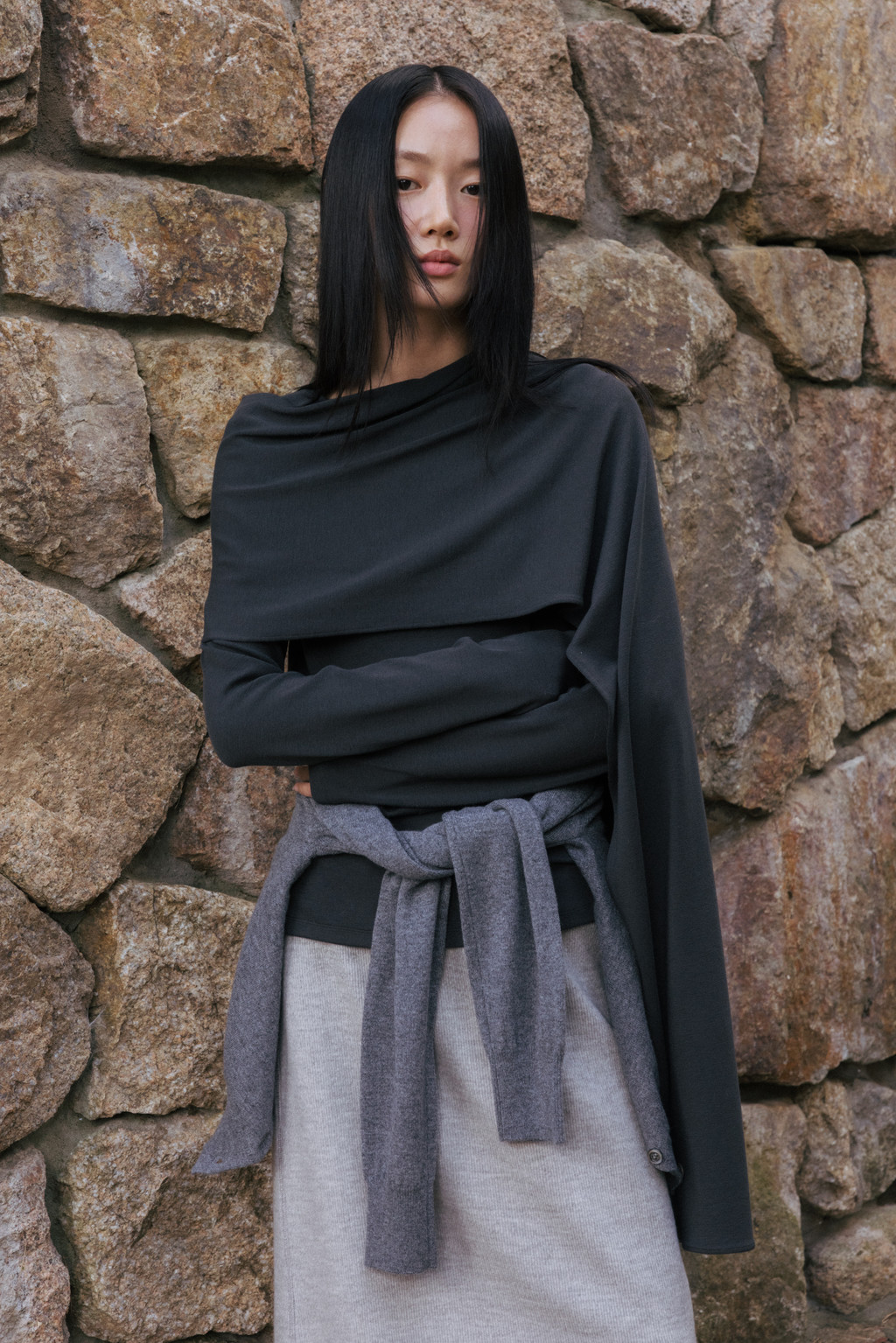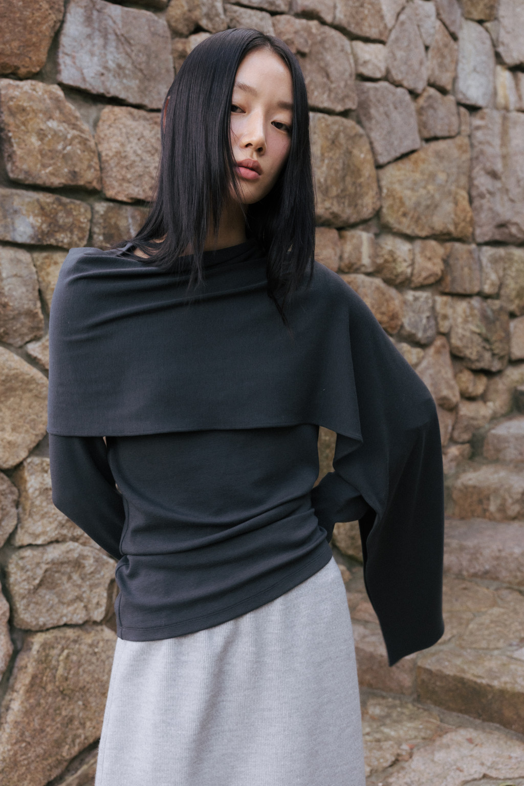 한겨울 착용하기 좋은 울 혼방 저지 소재로 제작된 티셔츠입니다. 신축성이 좋아 사이즈에 구애받지 않고 착용할 수 있으며, 길게 연결된 머플러 디테일로 다양하게 연출 가능한 아이템입니다.