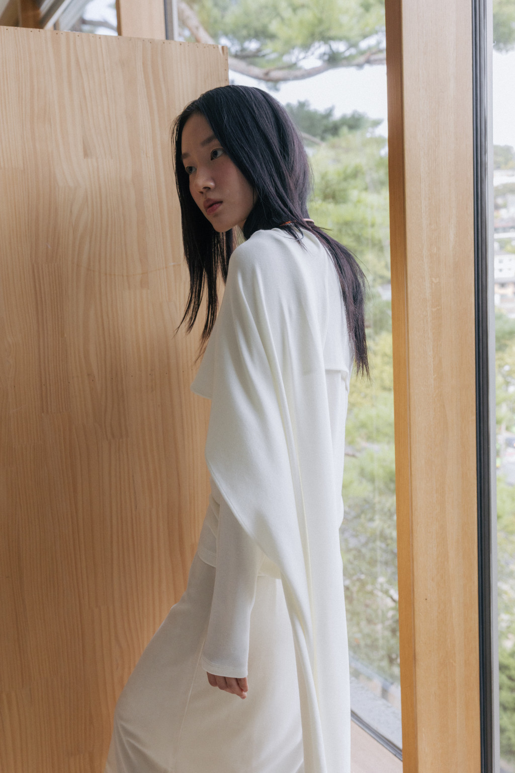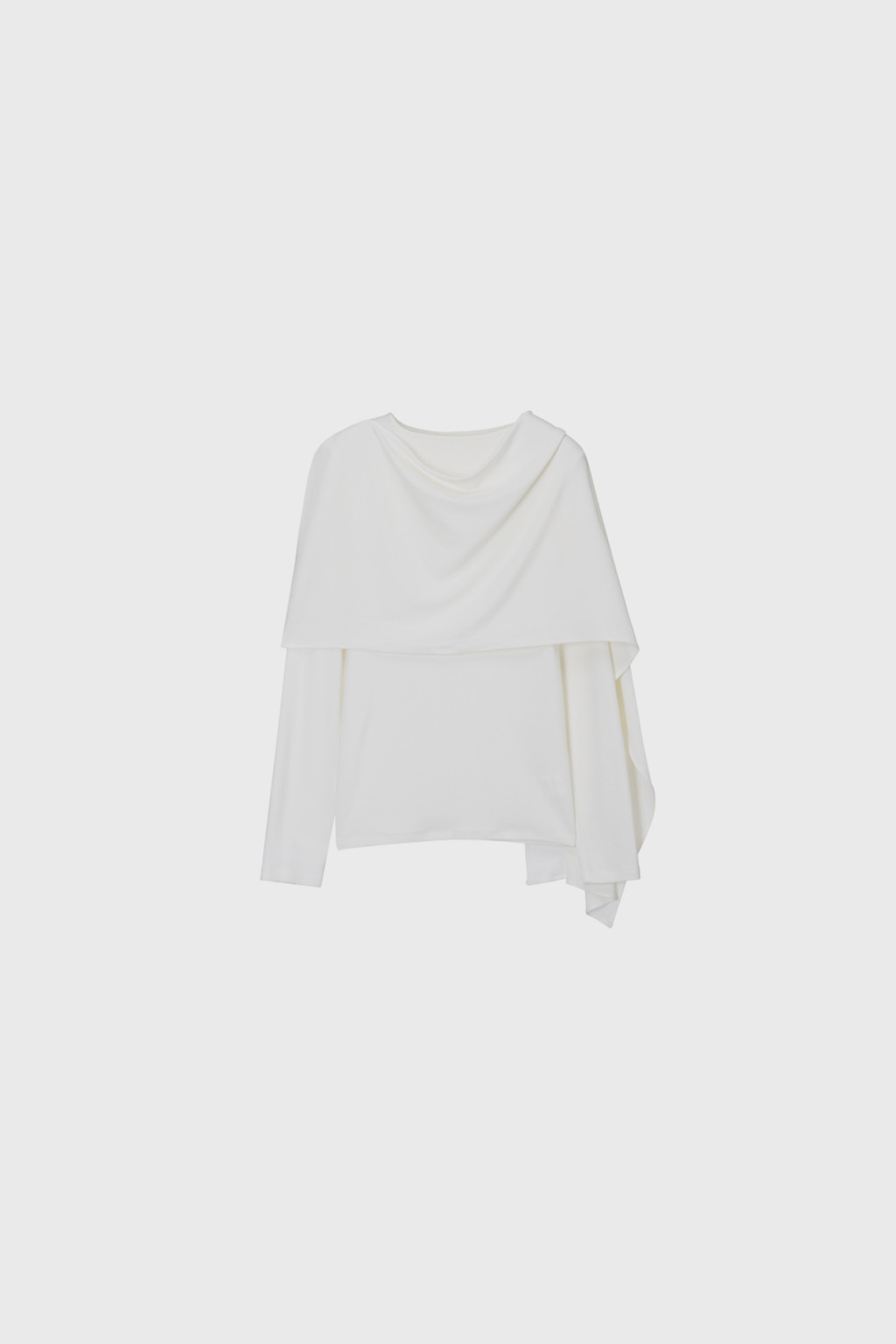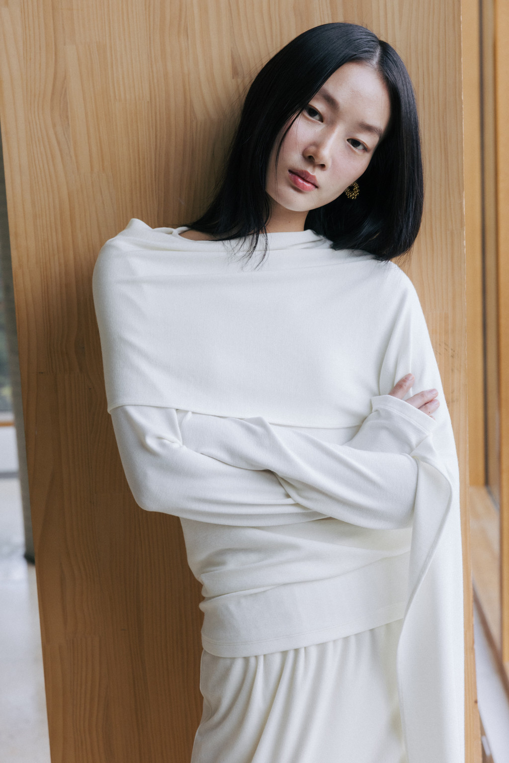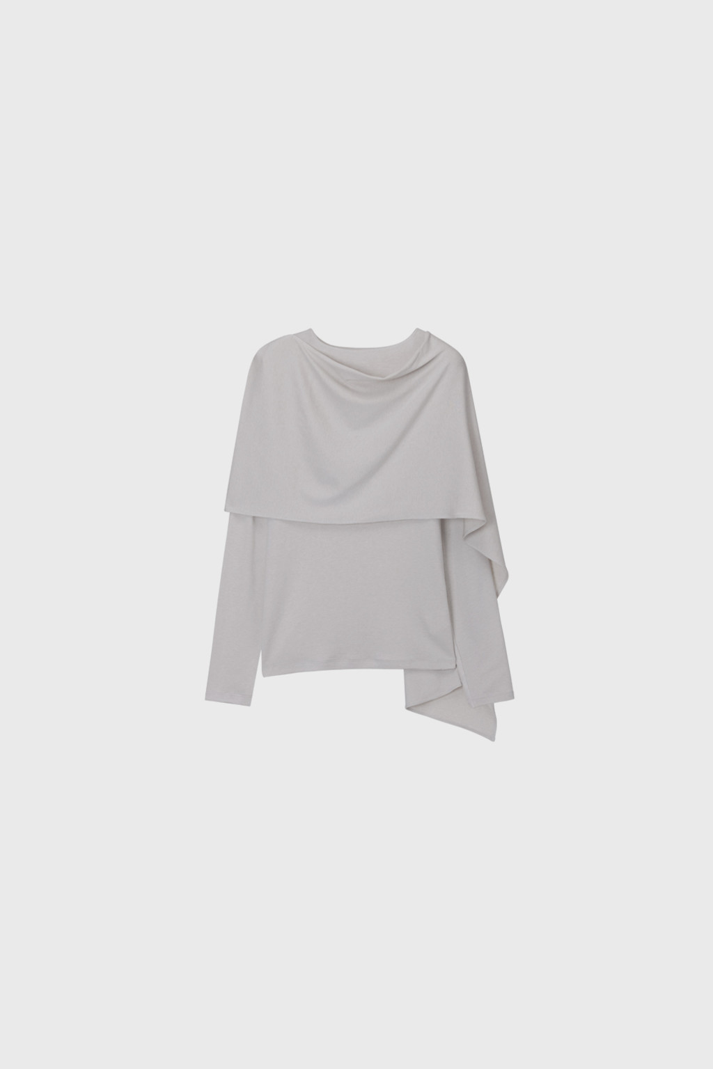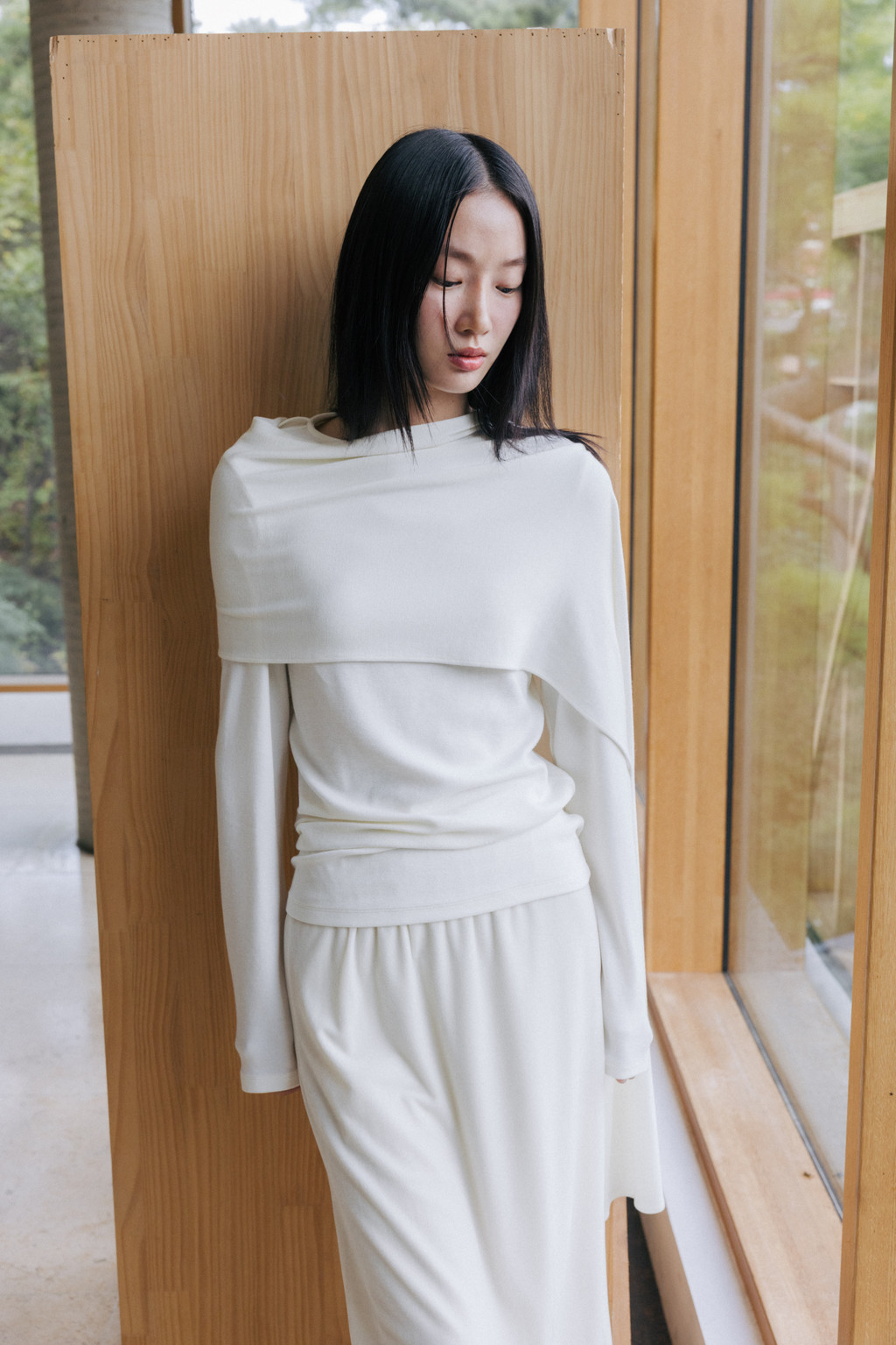 Wool stretch muffler t-shirt (ivory / light beige / dark gray)