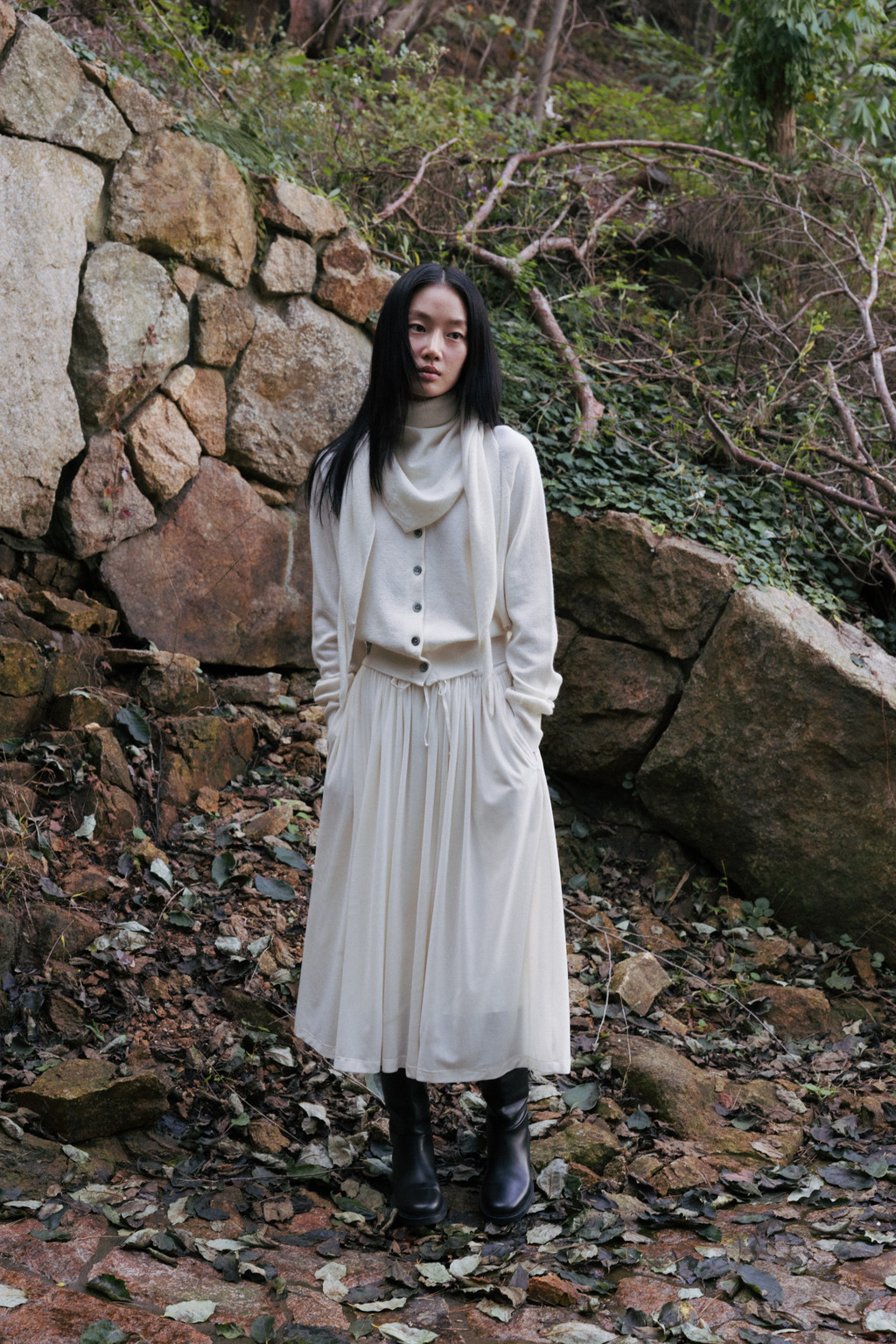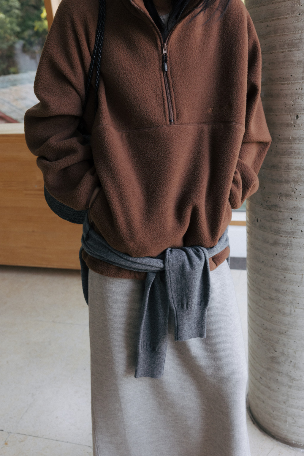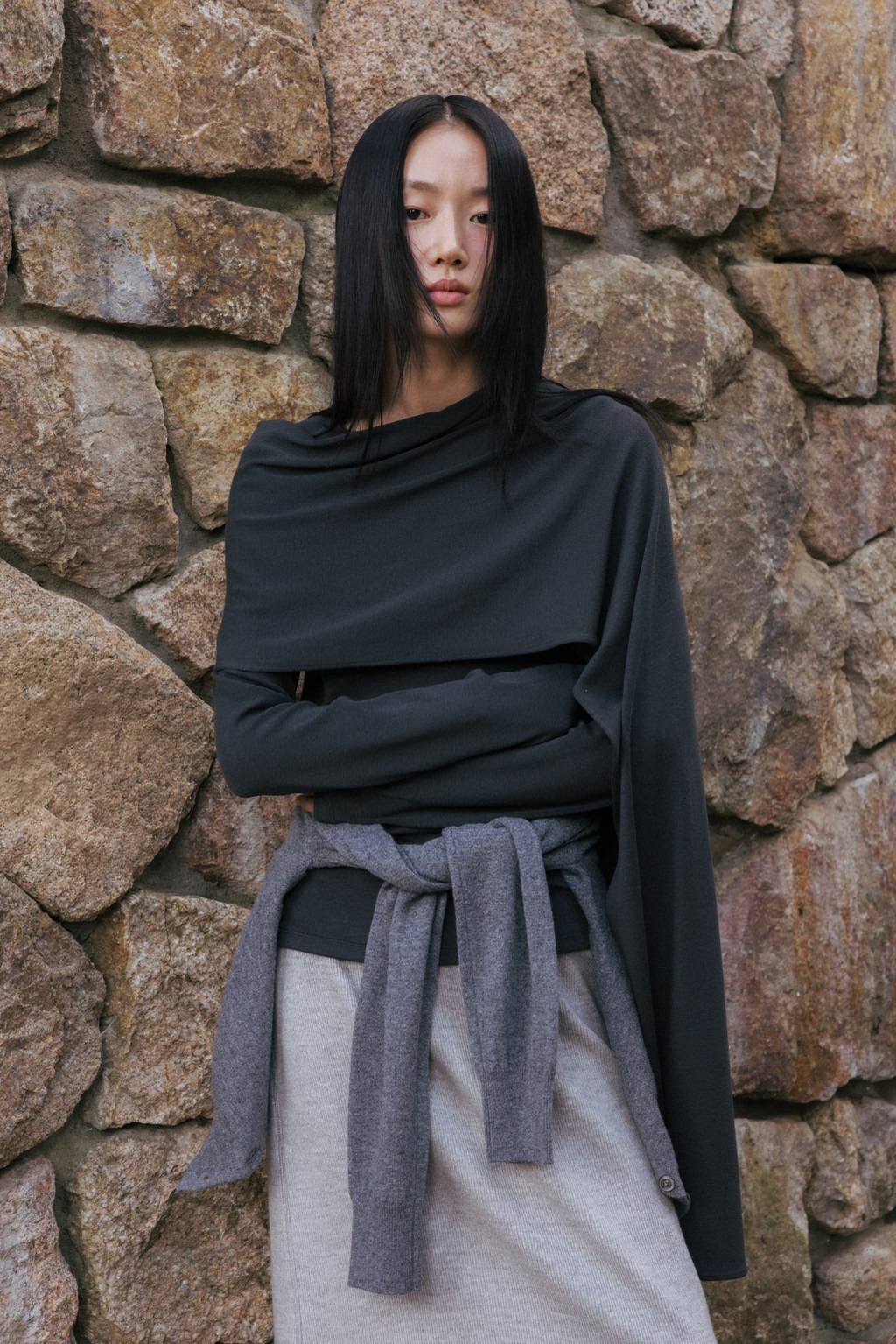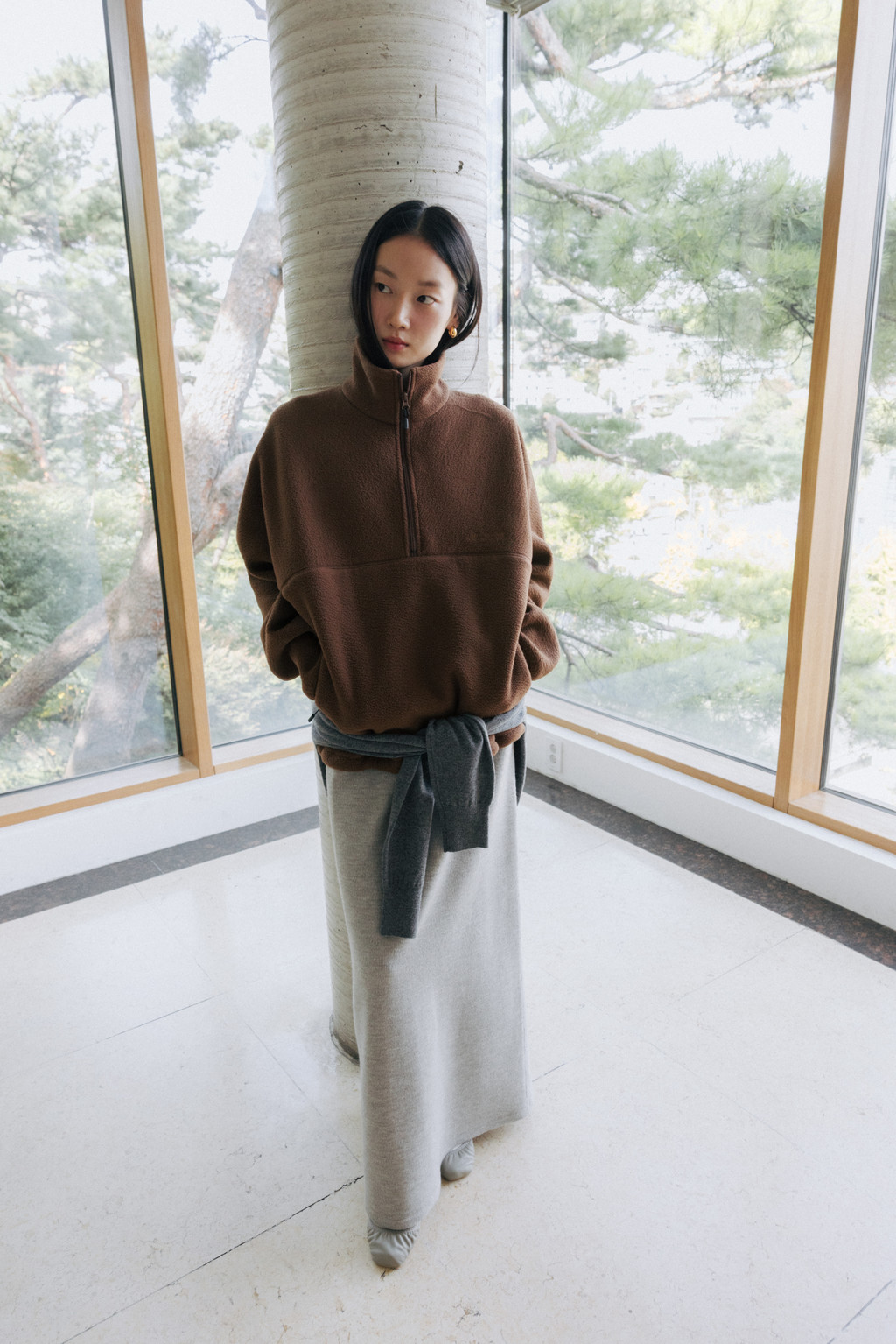 ・ Model height 175cm (blue, red 착용) / 170cm (light brown, ivory, light gray 착용)