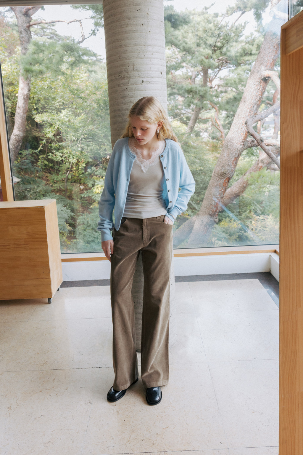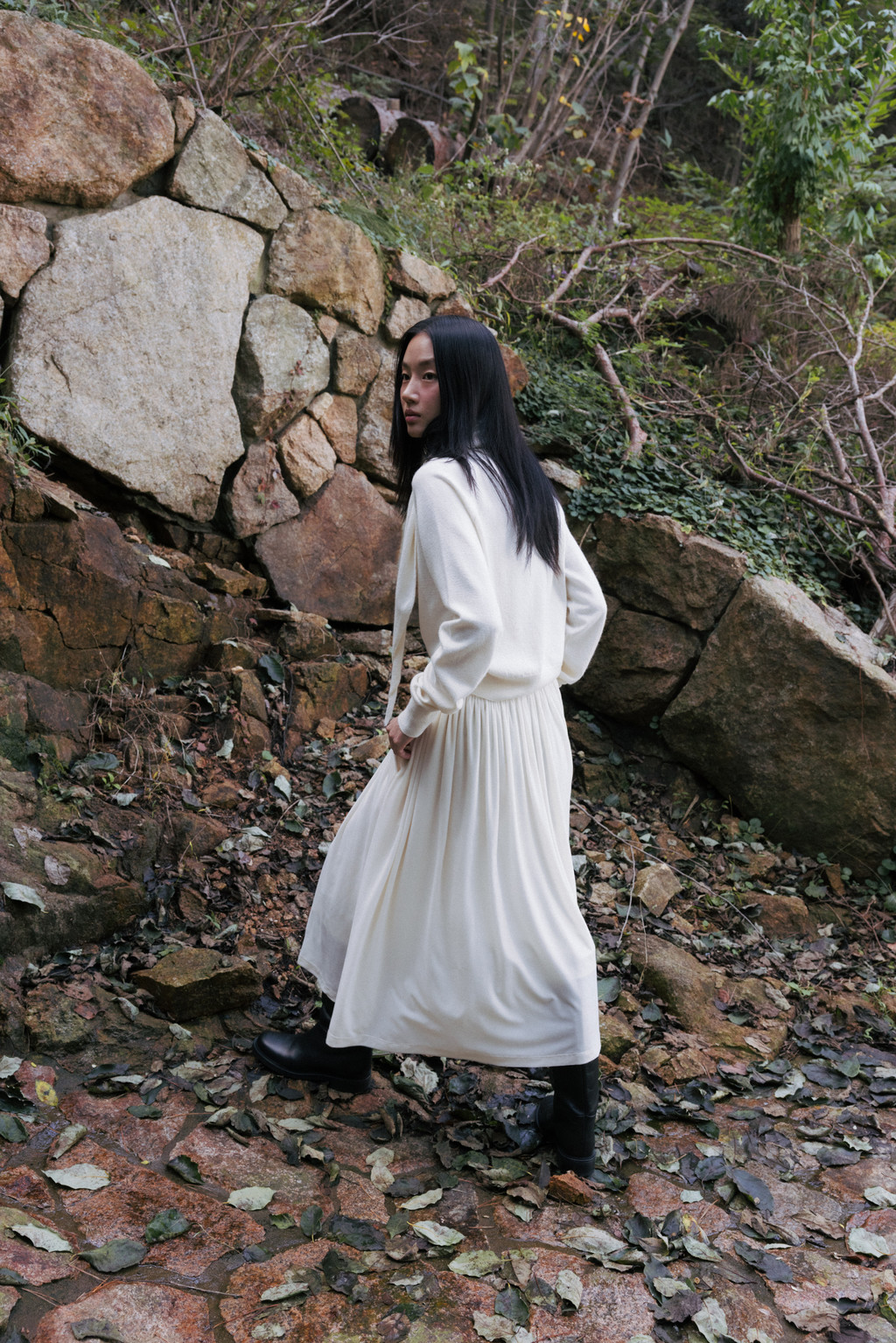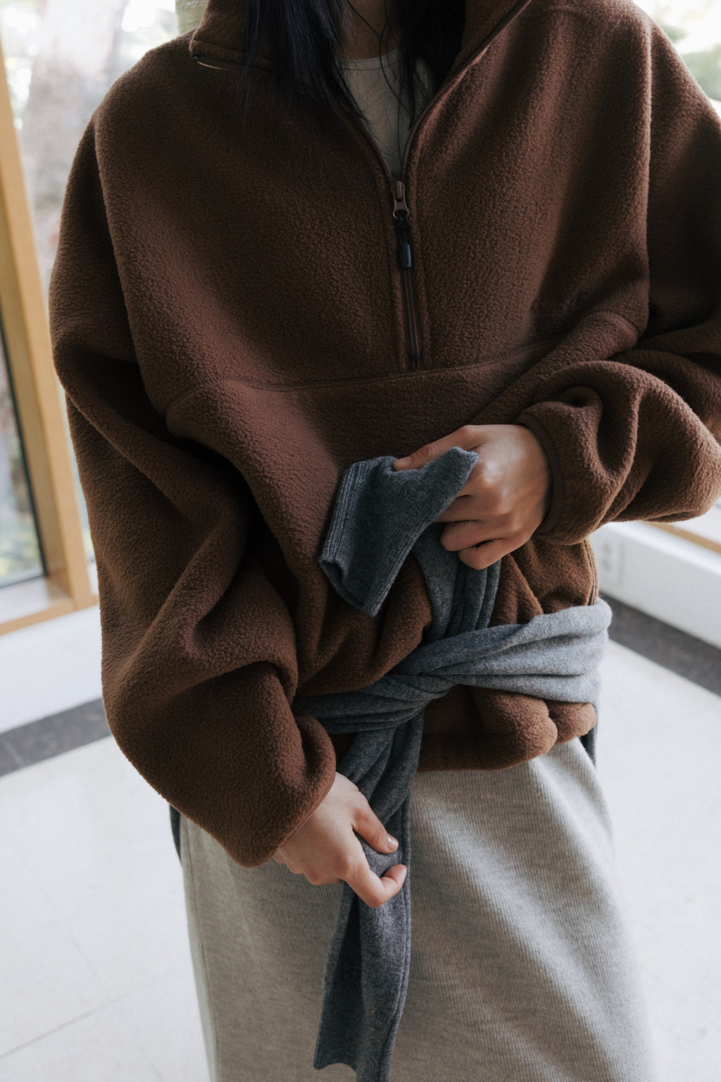 ・ Model height 175cm (blue, red 착용) / 170cm (light brown, ivory, light gray 착용)