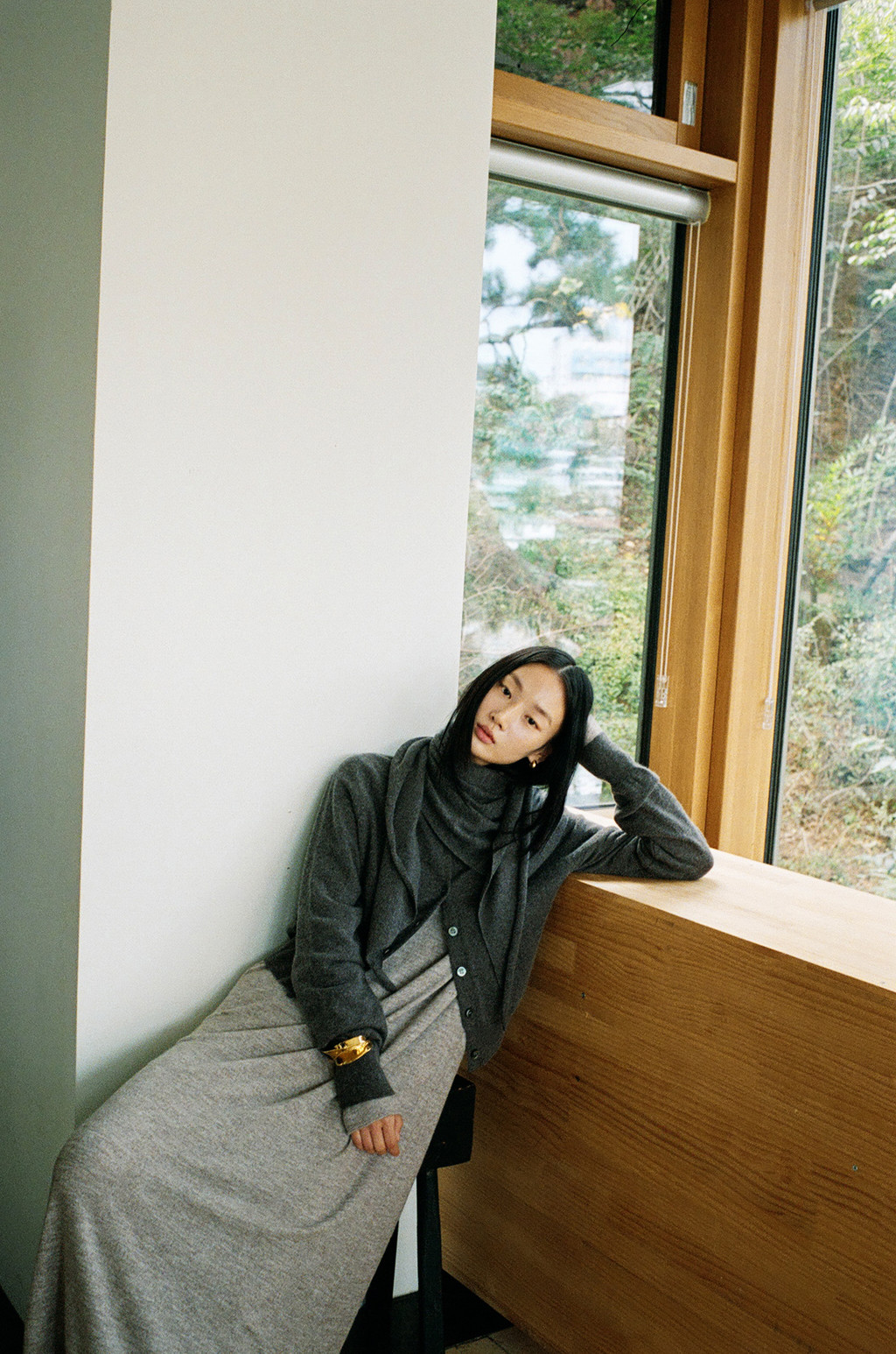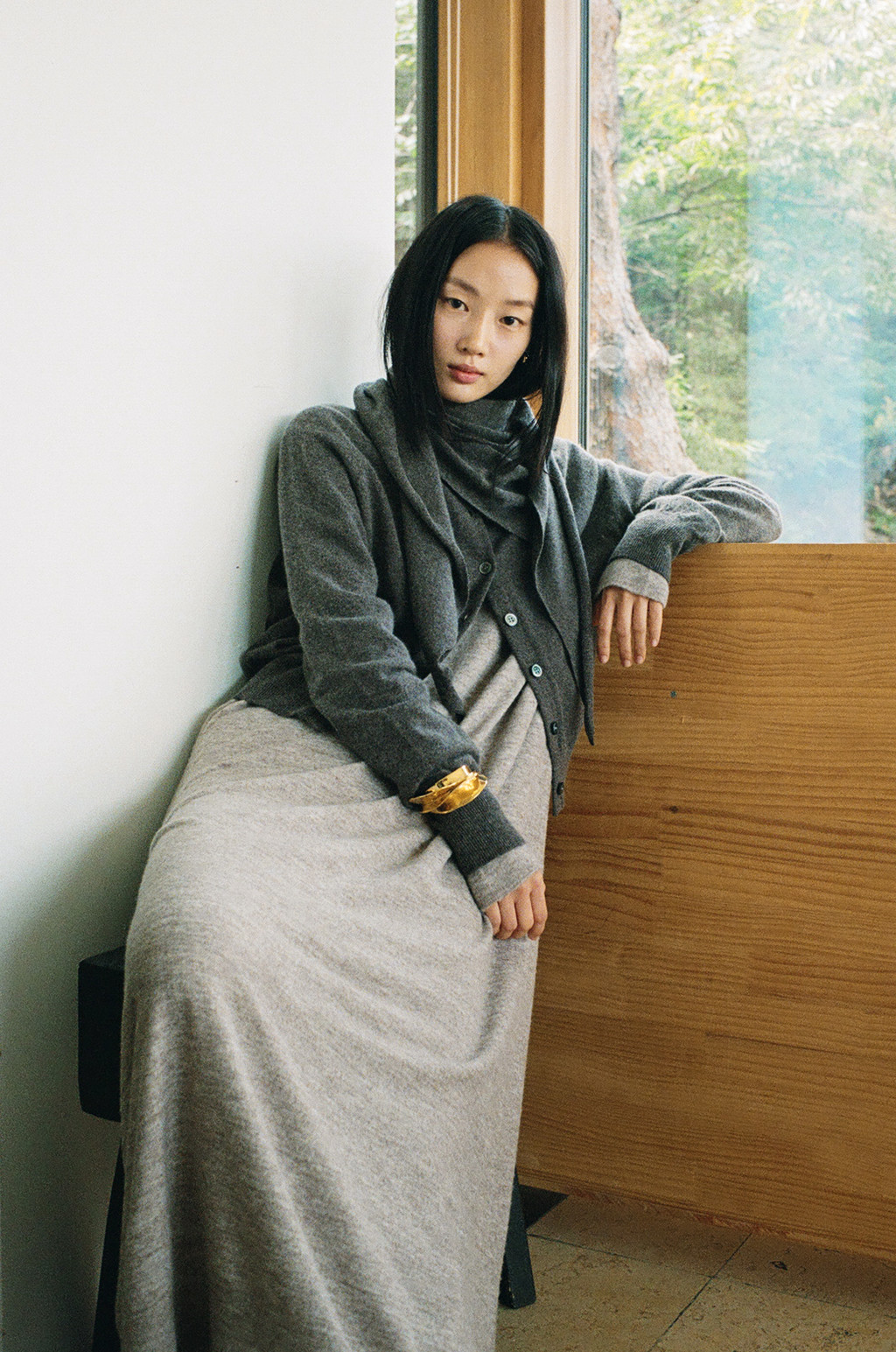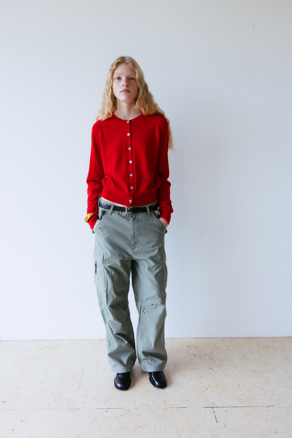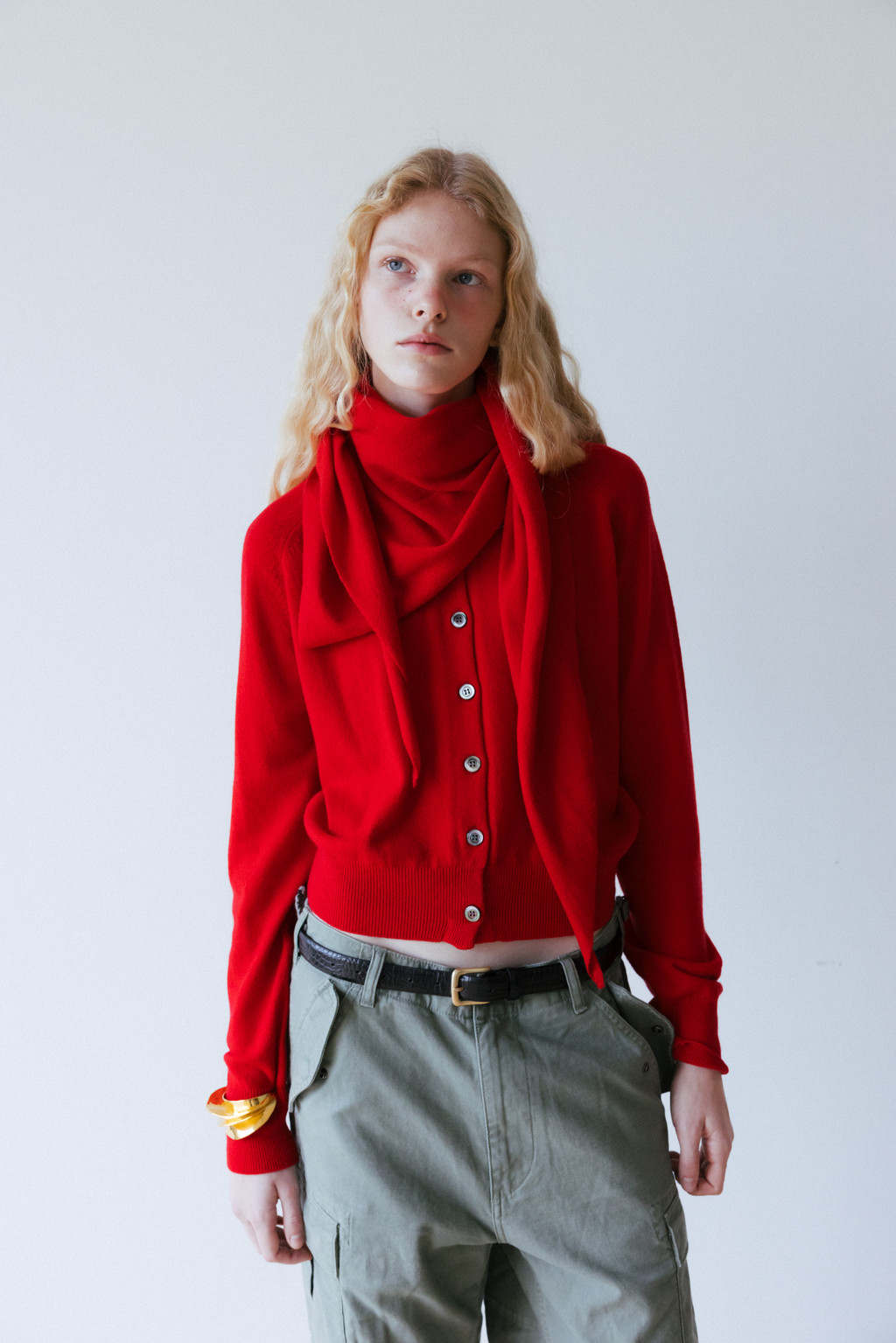 ・ Model height 175cm (blue, red 착용) / 170cm (light brown, ivory, light gray 착용)