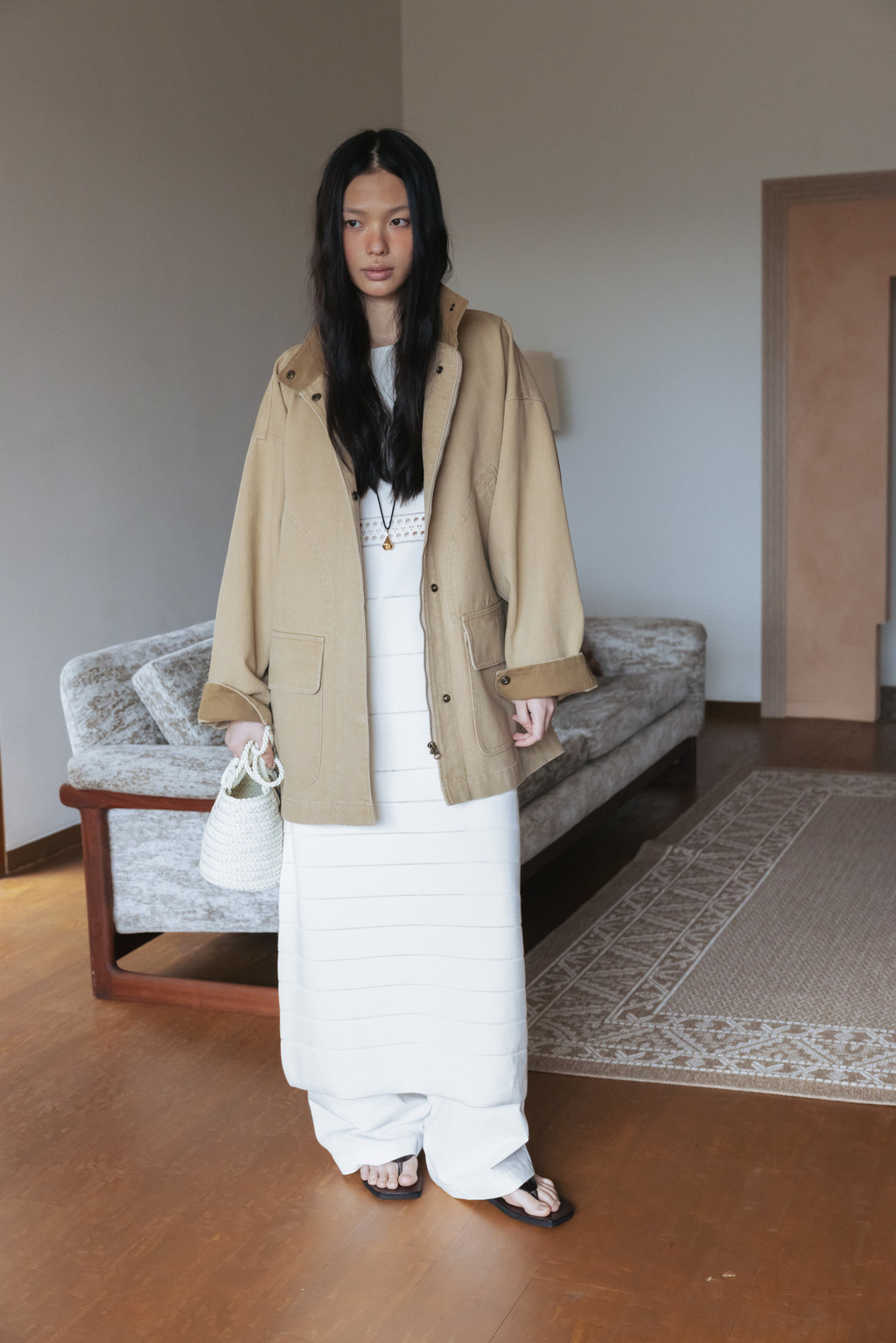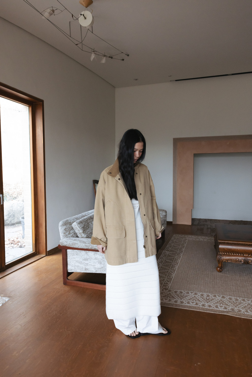・ Model height 169cm (Beige 착용) / 176cm (Dark Navy 착용)