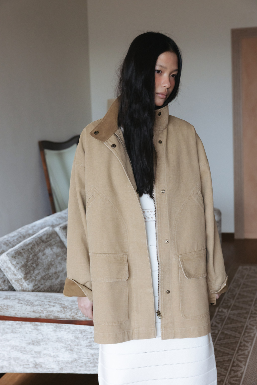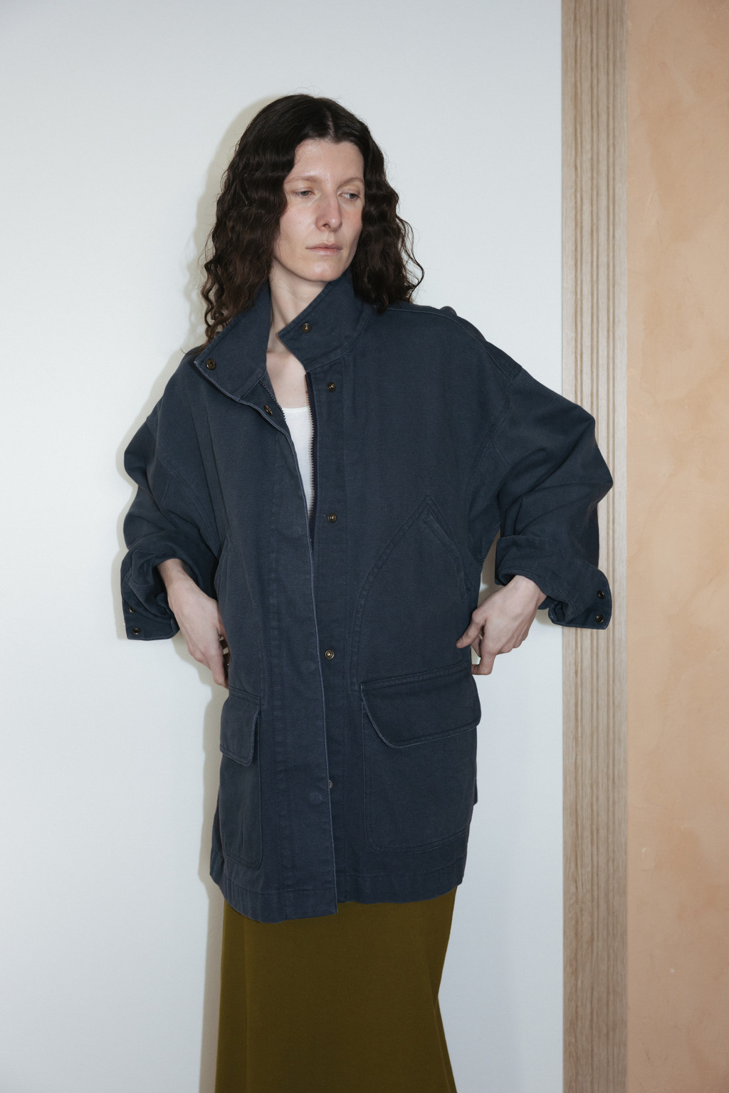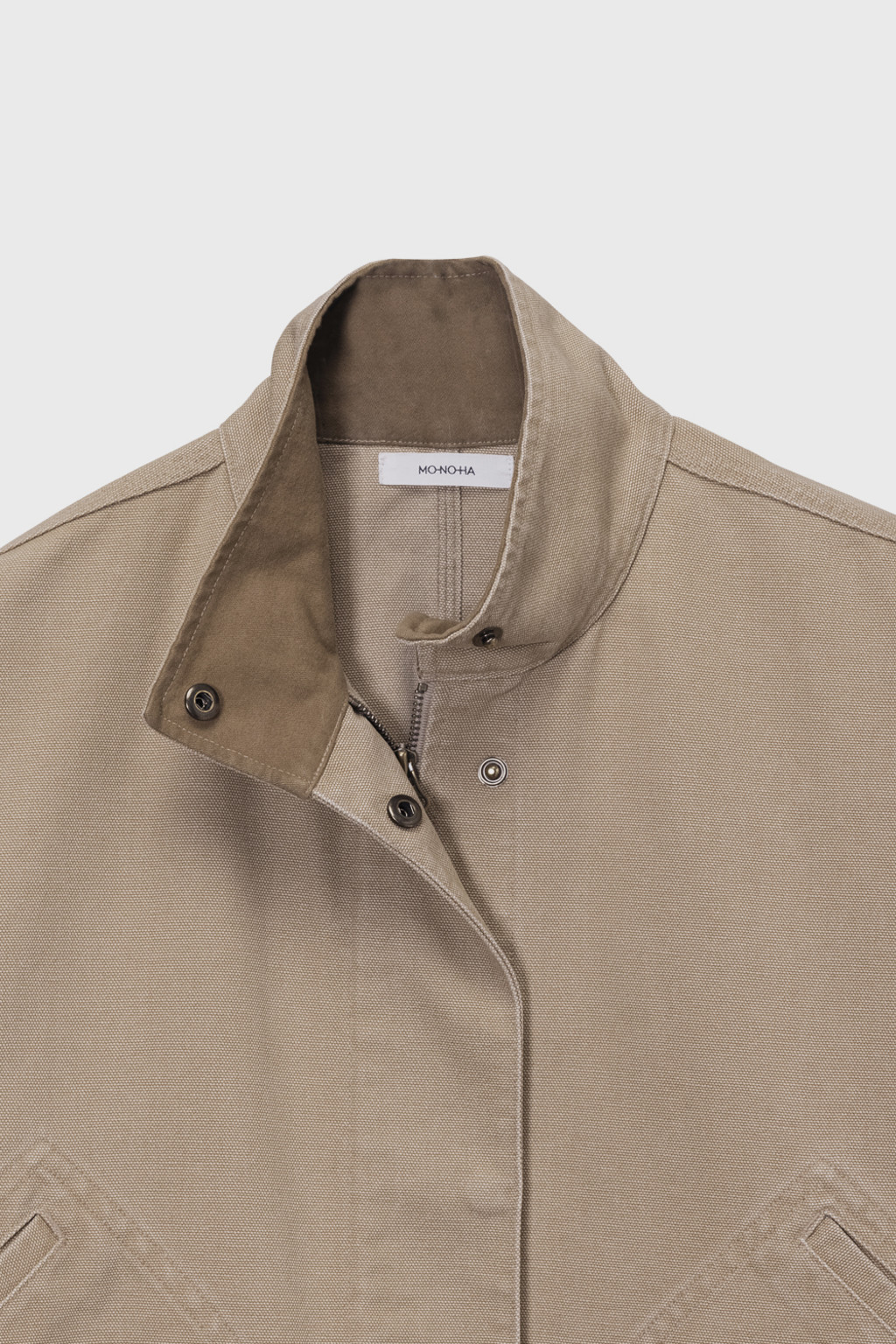 클래식한 밀리터리 재킷을 베이스로 변형된 실루엣을 더해 완성한 아이템입니다. 빈티지한 무드를 살리기 위해 후가공 워싱을 적용했으며, 조직감이 느껴지는 고밀도 옥스포드 소재를 사용해 탄탄한 착용감을 제공합니다. 엉덩이를 자연스럽게 덮는 넉넉한 하프 기장과 하이넥 디자인으로 실용성을 높였고, 네크와 소매 부분의 배색 디테일이 은은한 포인트가 됩니다. 활용도 높은 주머니 디테일과 스냅 클로징으로 데일리 착용에 실용성과 스타일을 동시에 갖추었습니다.