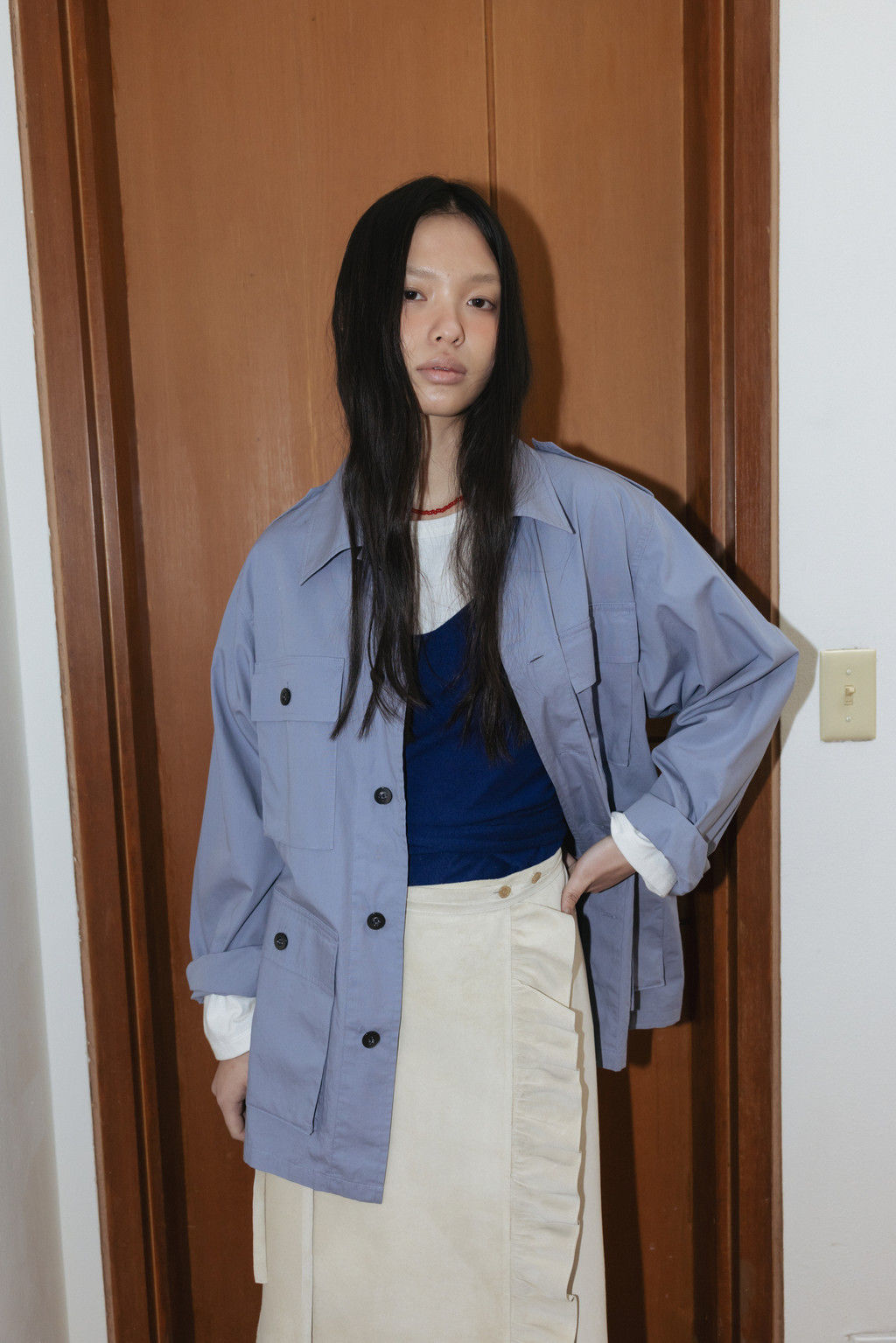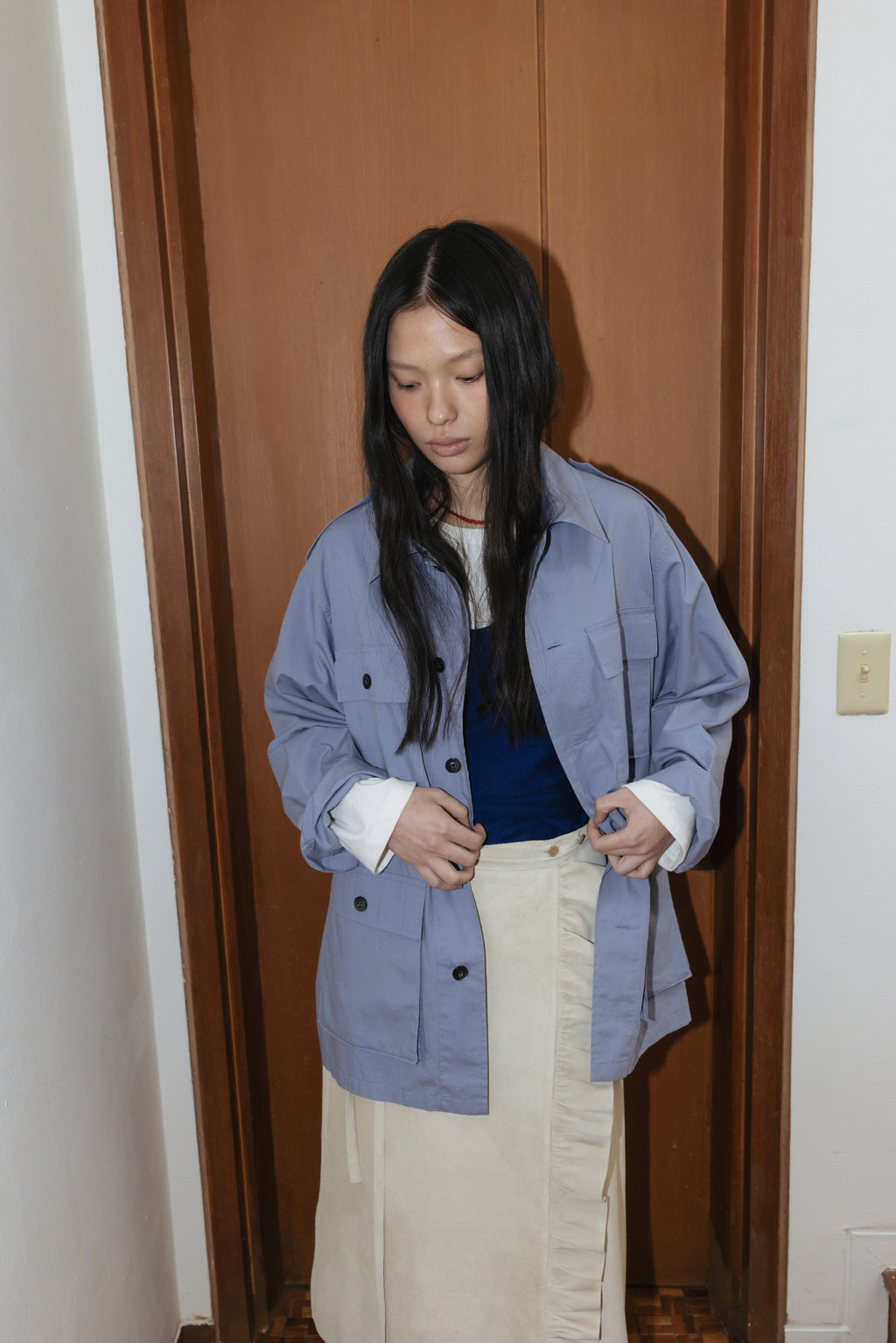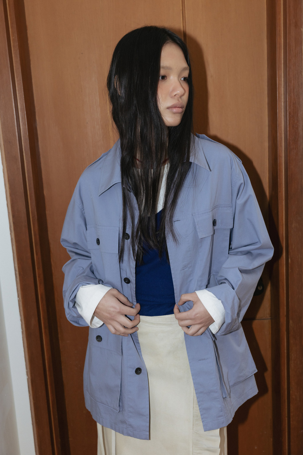 Cotton Field Shacket (Beige / Blue)NEW