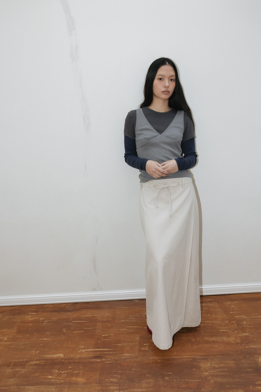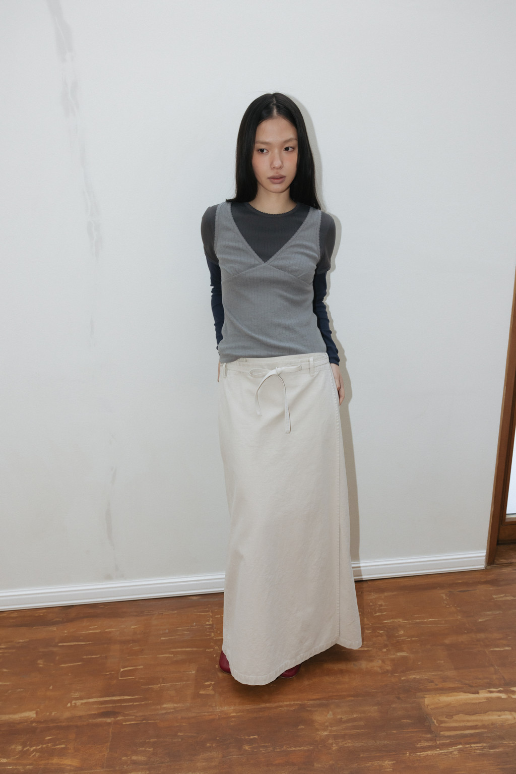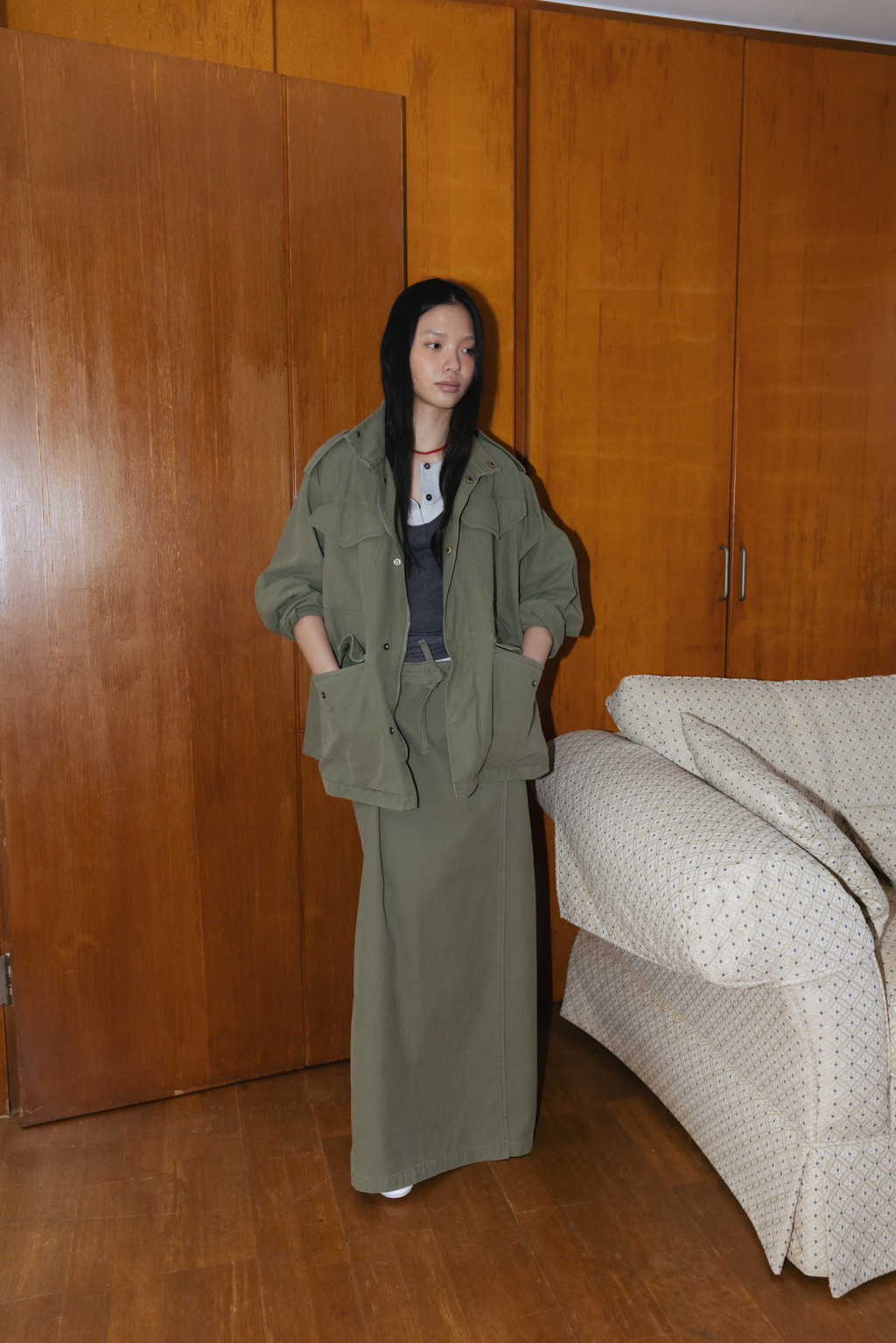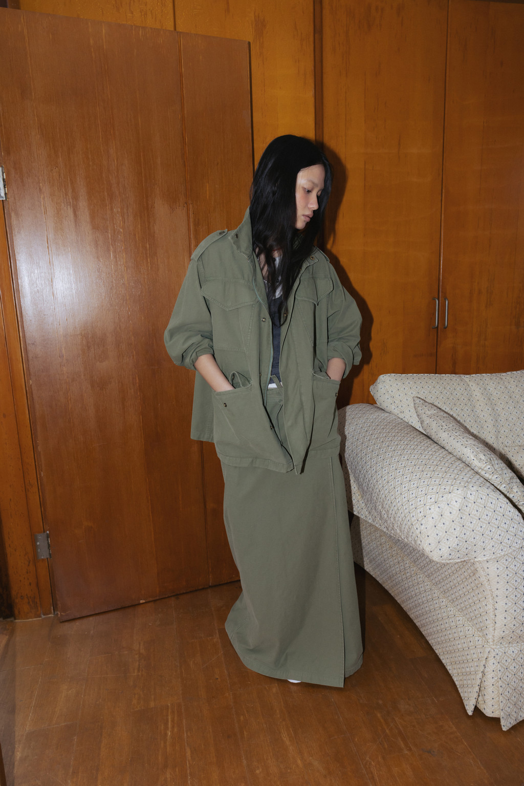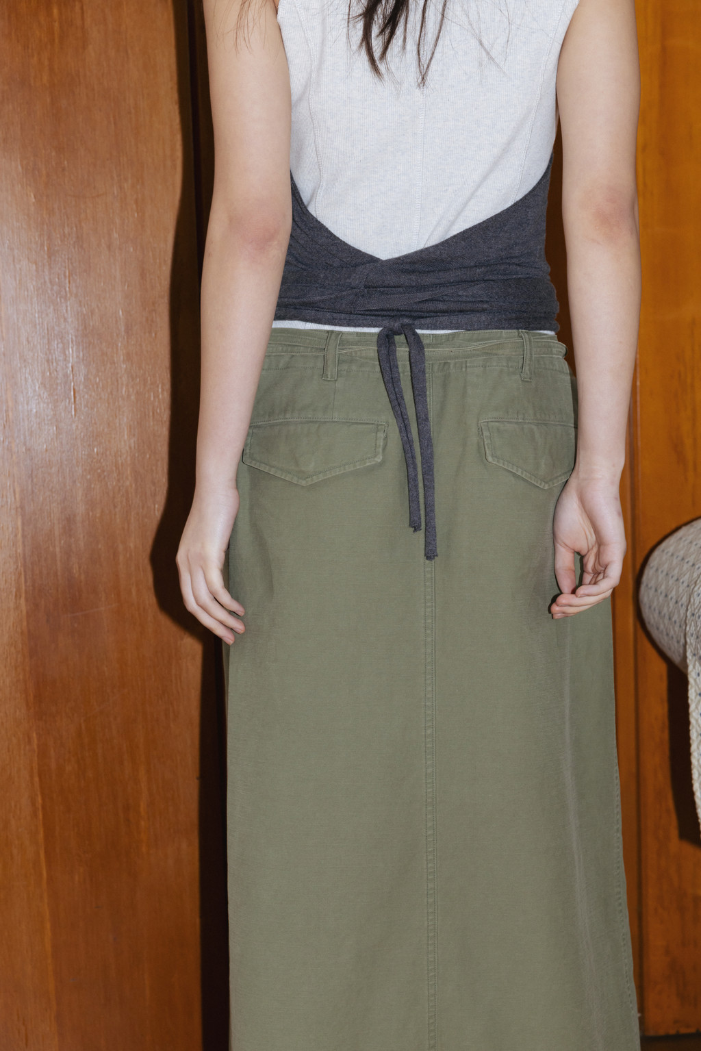 Washed Military Wrap Skirt (Light Beige / Khaki / Dark Gray)NEW