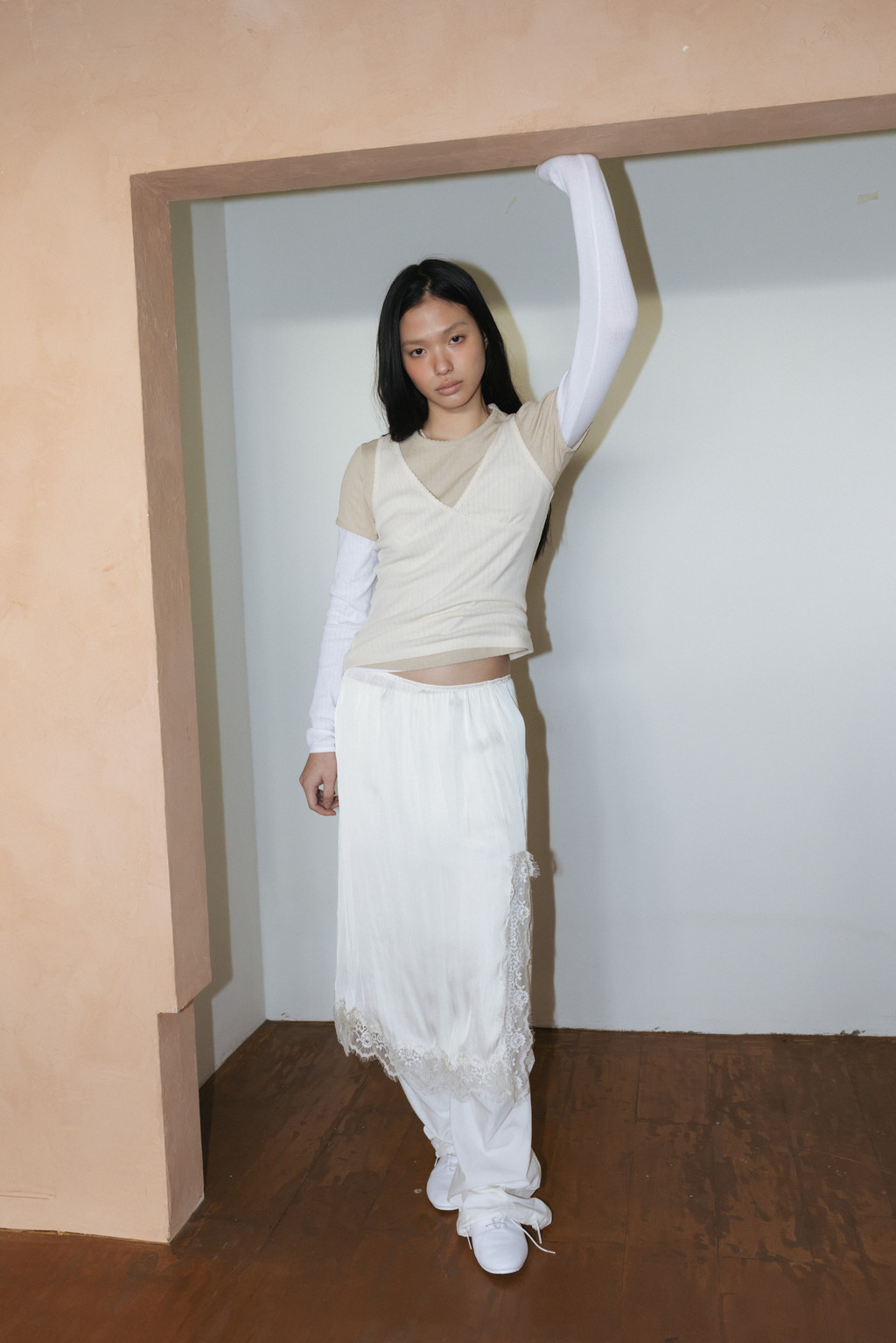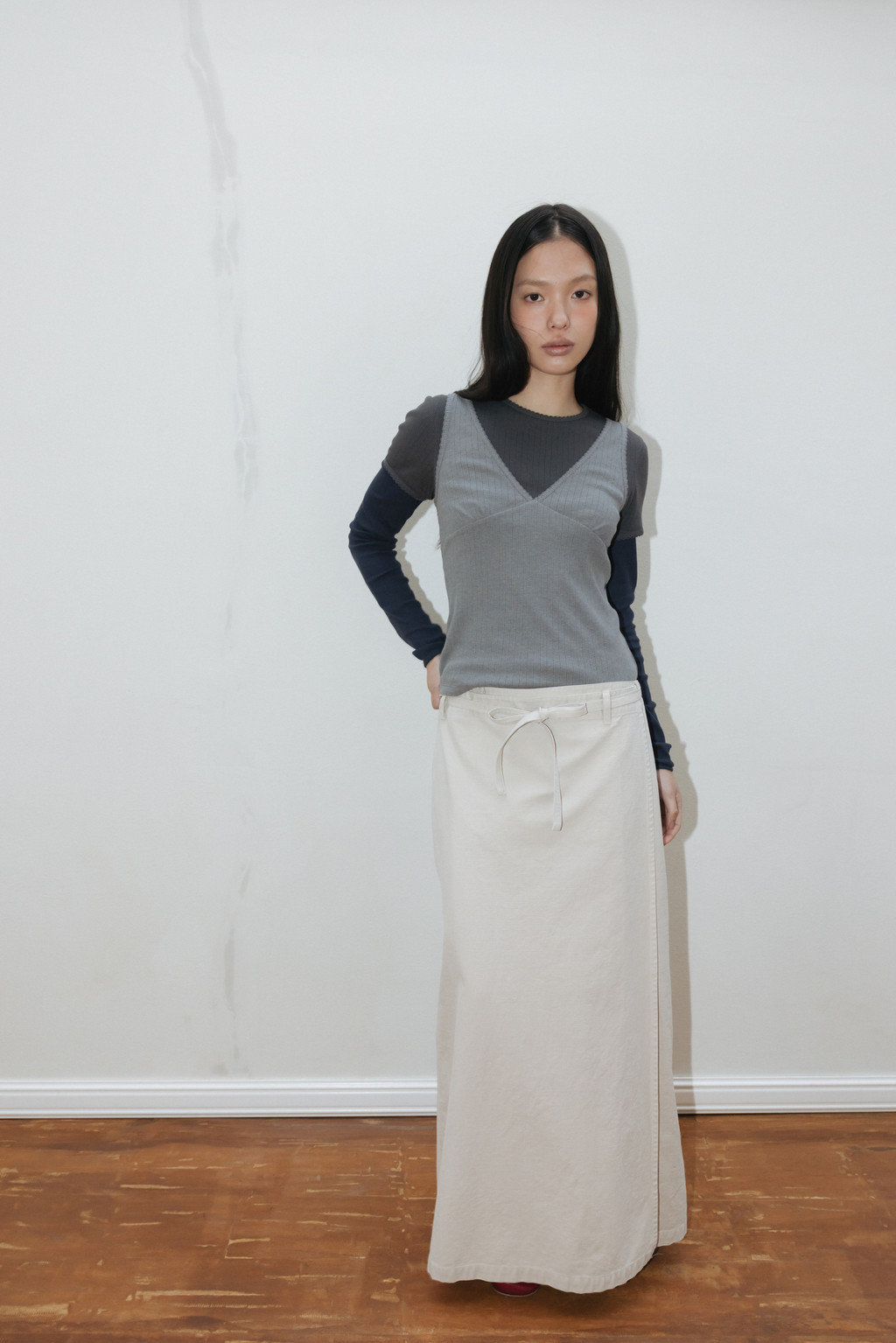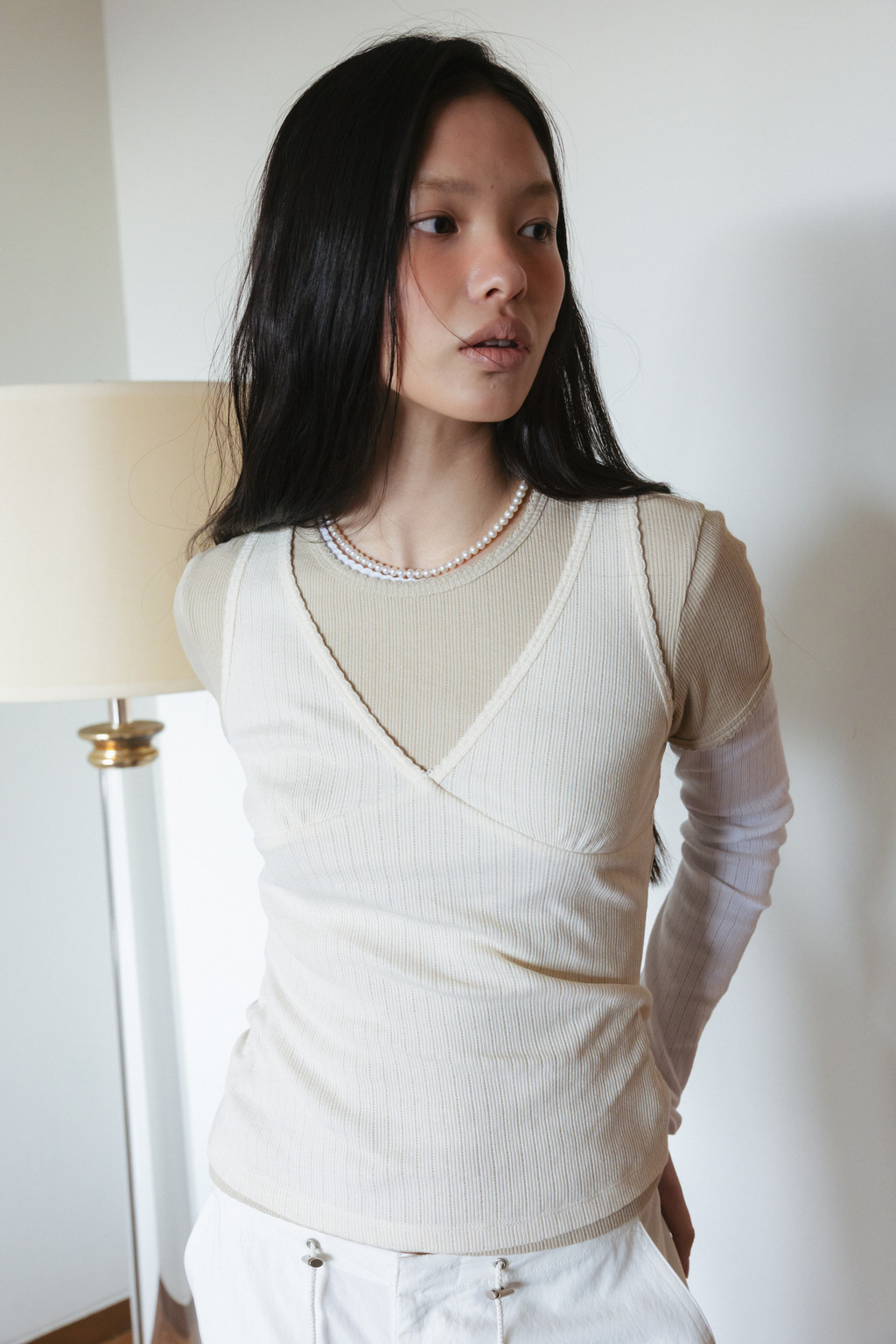 Scallop Ribbed Jersey Sleeveless (Ivory / Gray)NEW