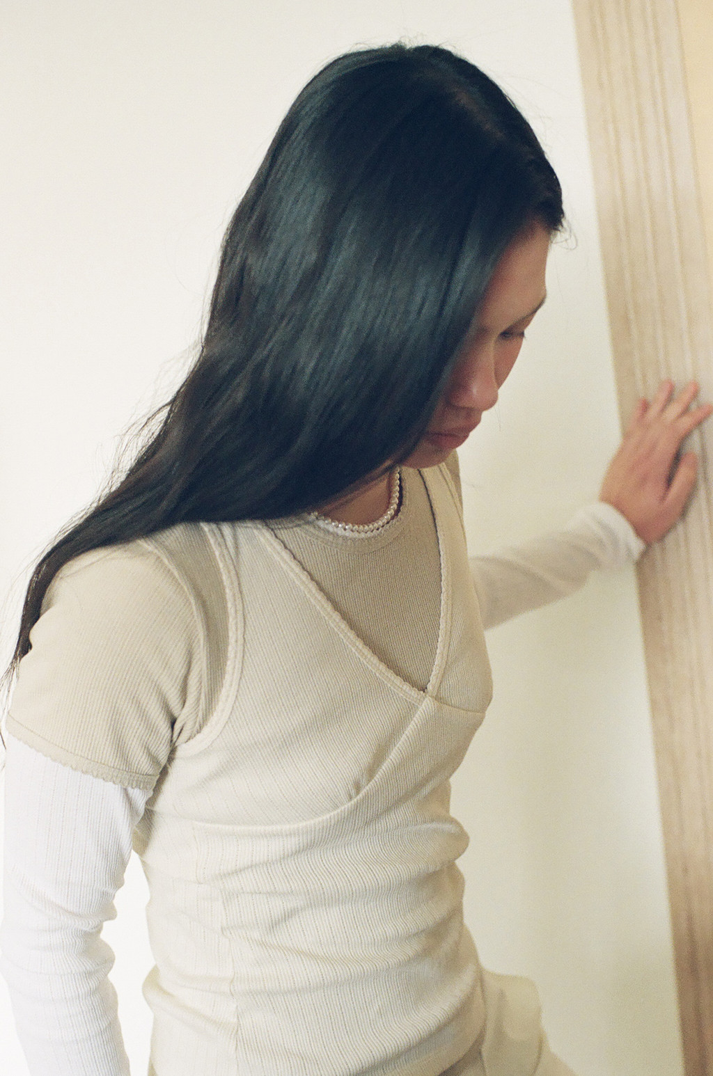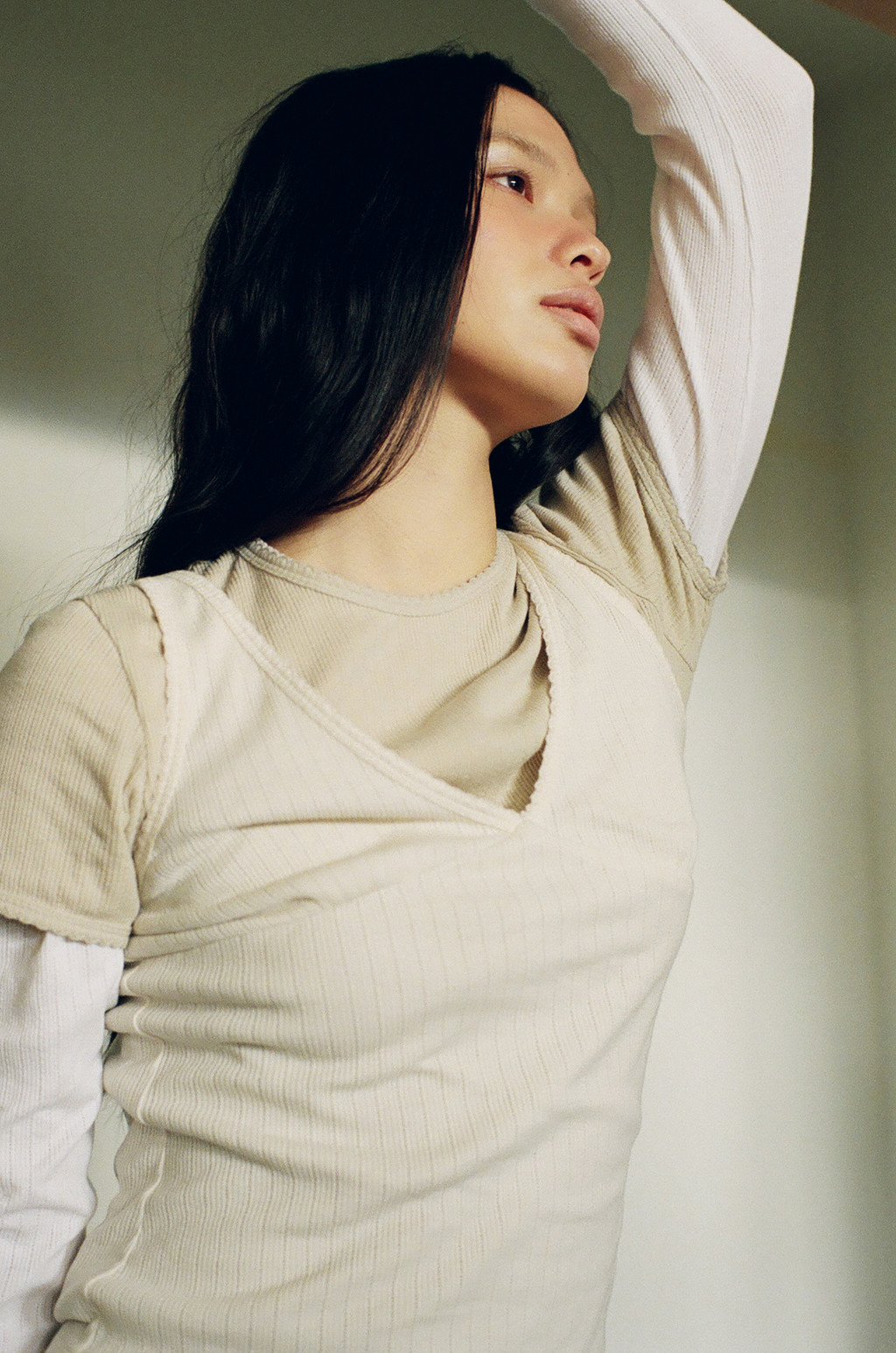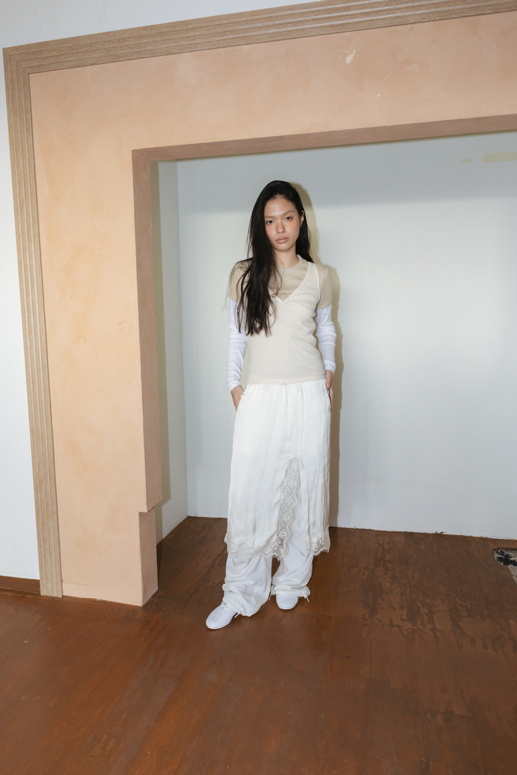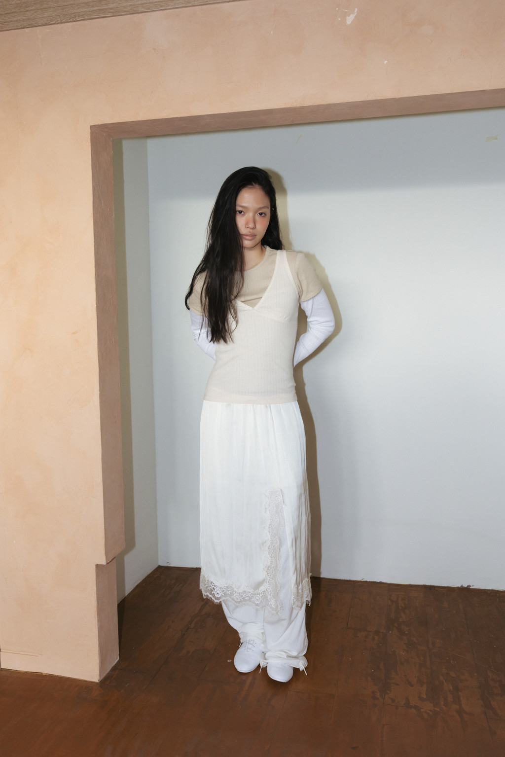 Scallop Ribbed Jersey Sleeveless (Ivory / Gray)NEW