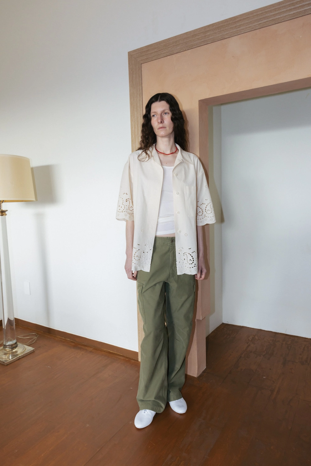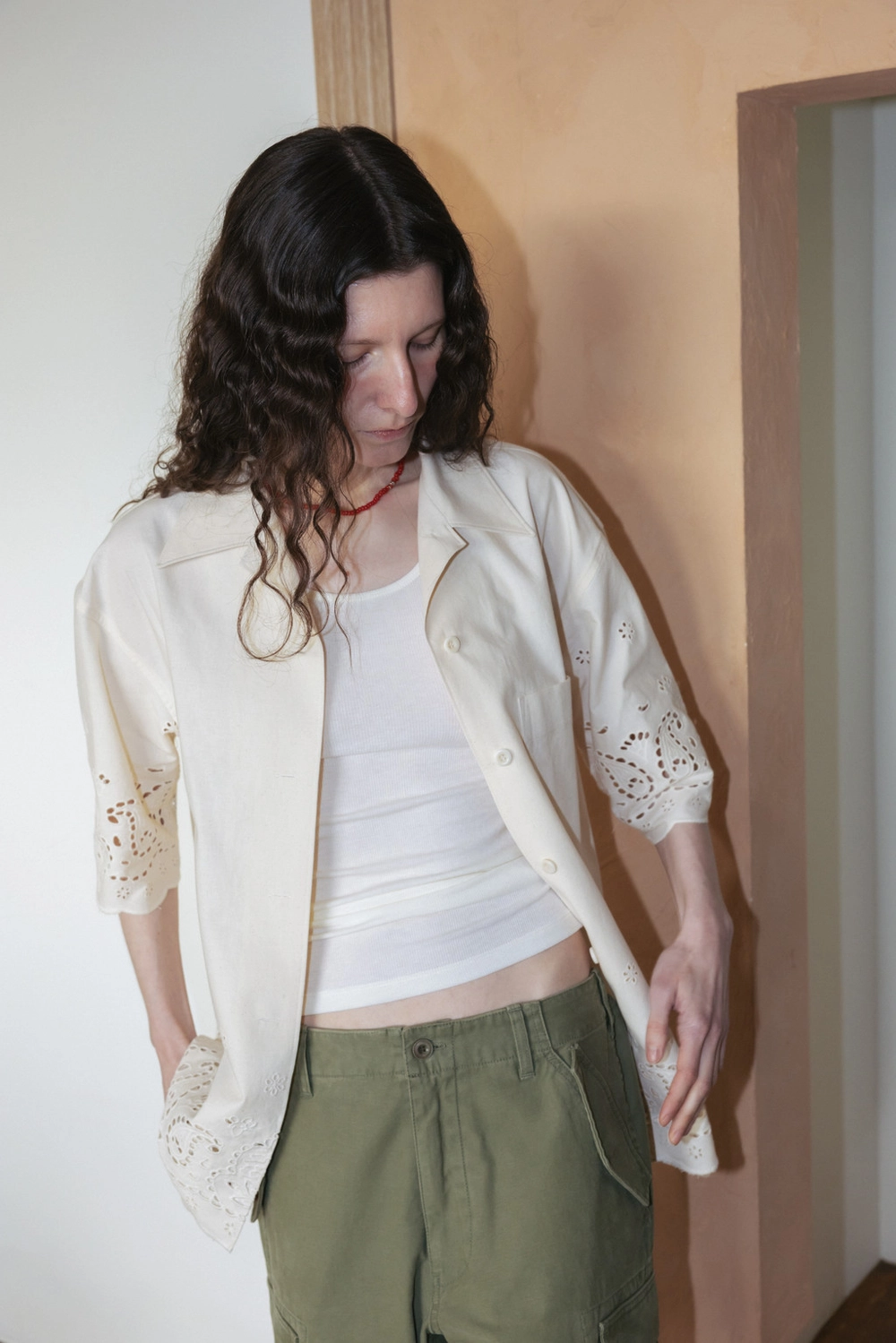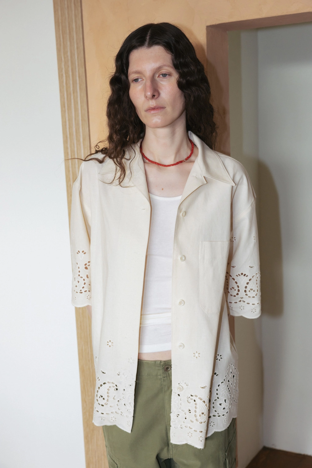 Paisley Eyelet Cotton Shirt (Ivory / White)NEW
