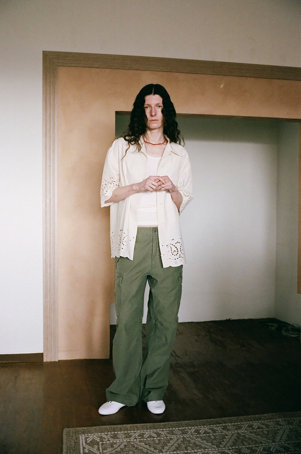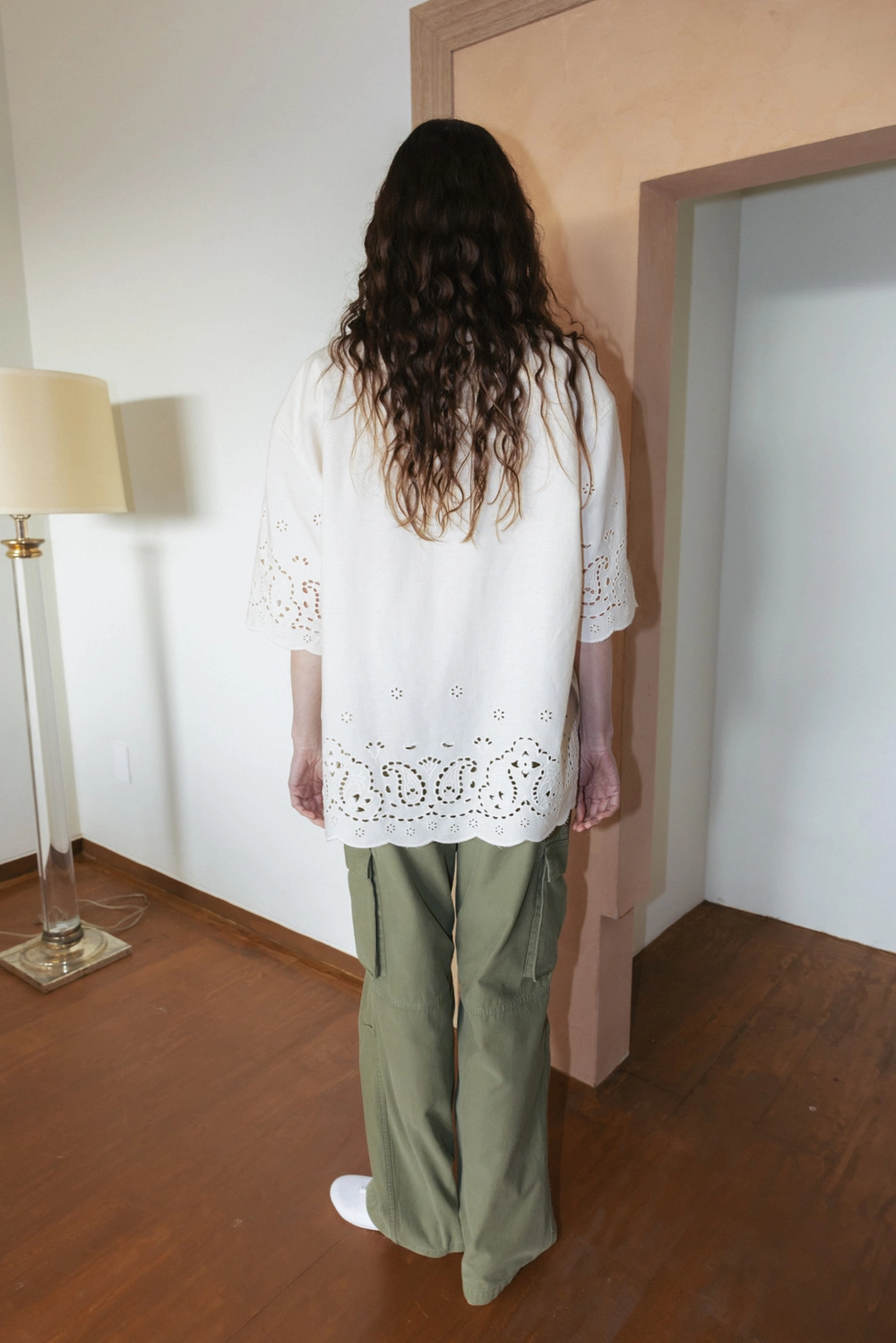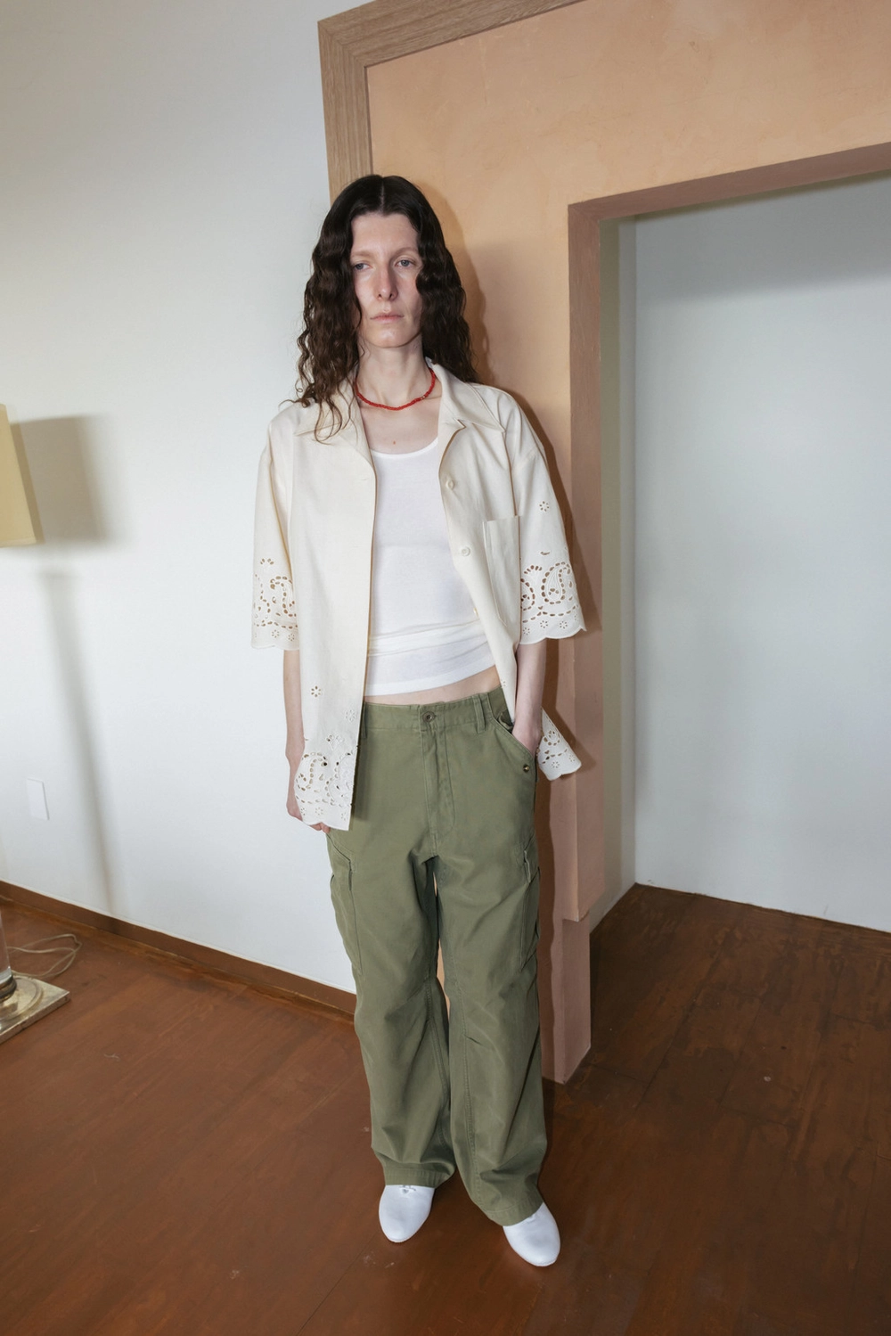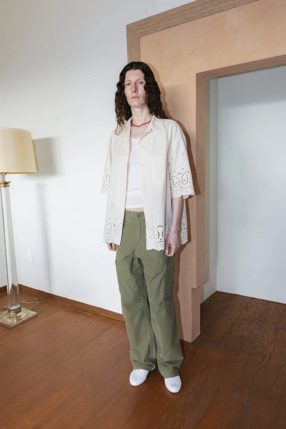 Paisley Eyelet Cotton Shirt (Ivory / White)NEW