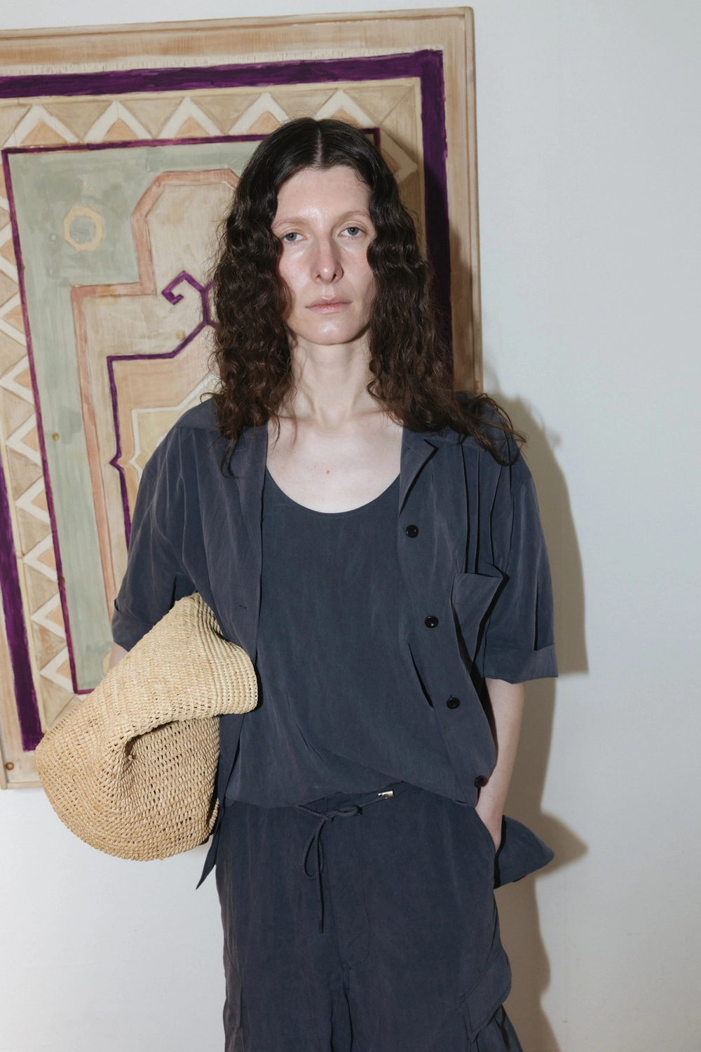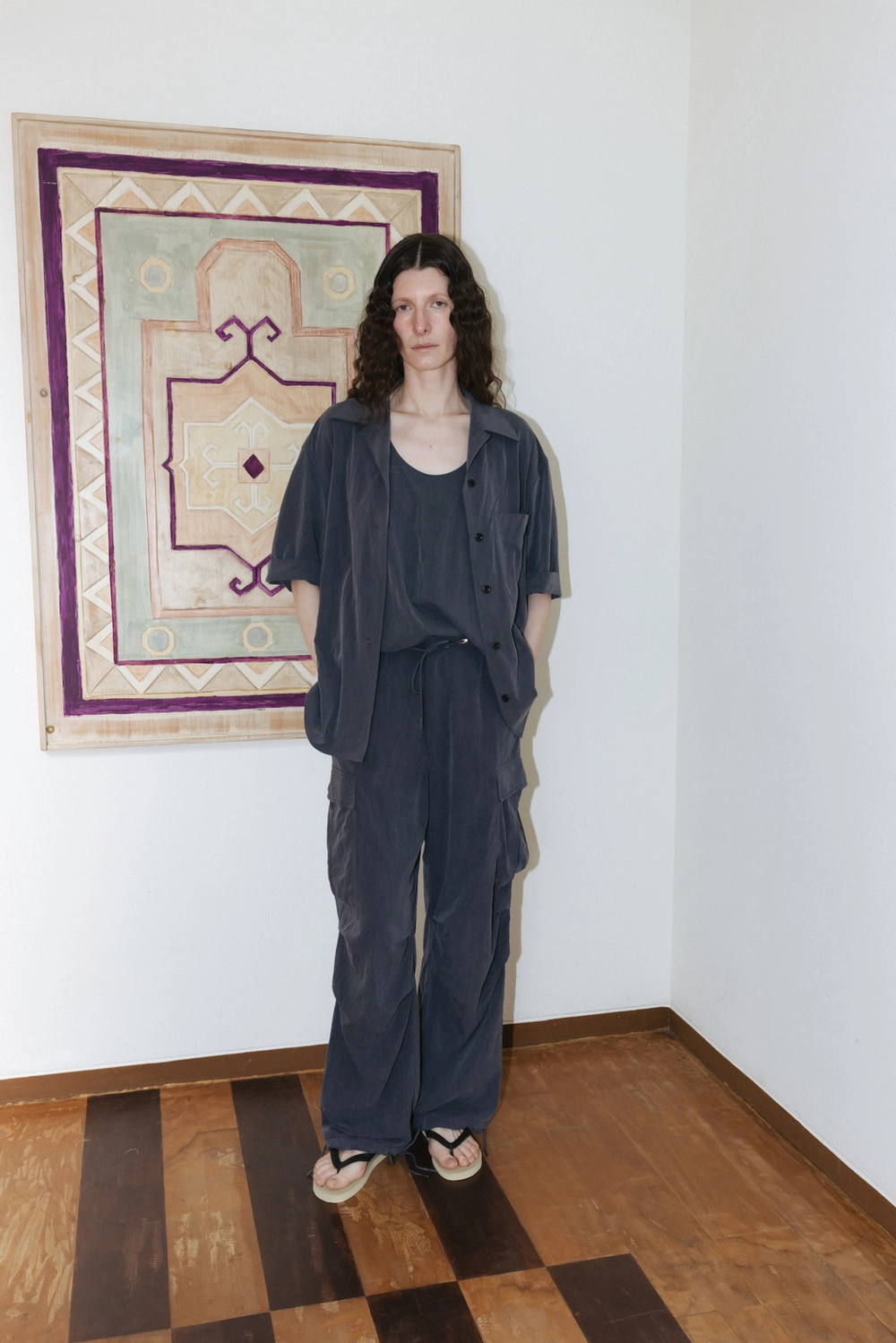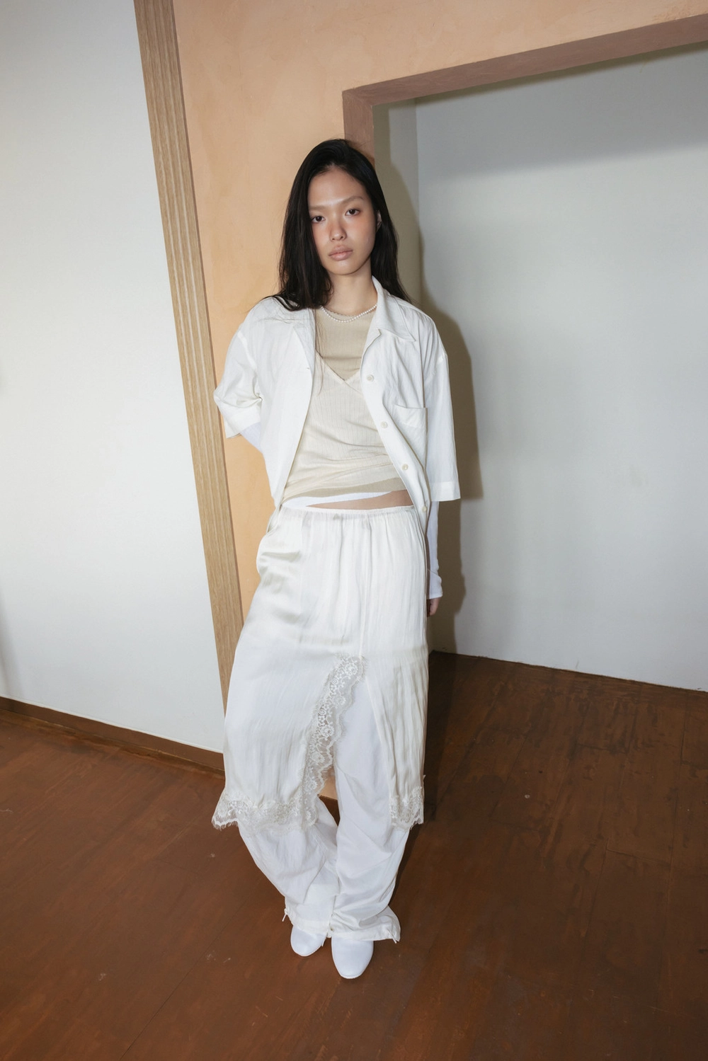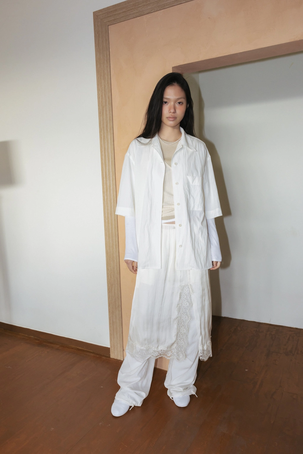 Drapey Washed Shirt (Ivory / Dark Gray)NEW
