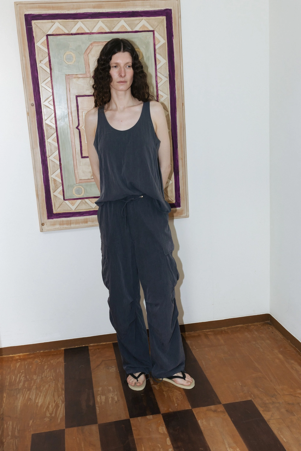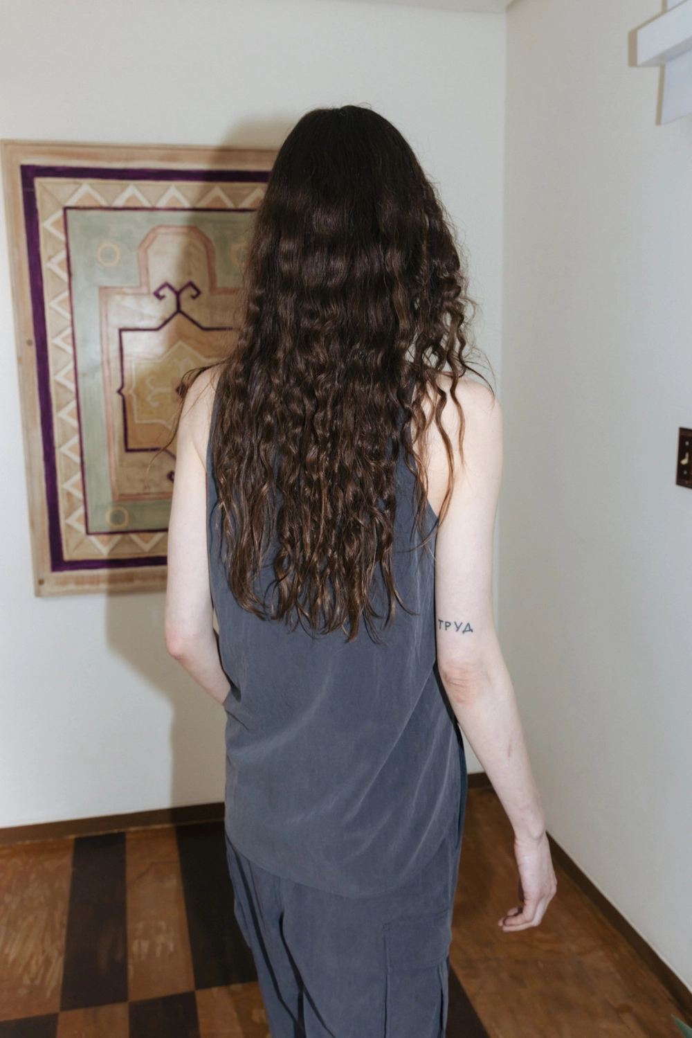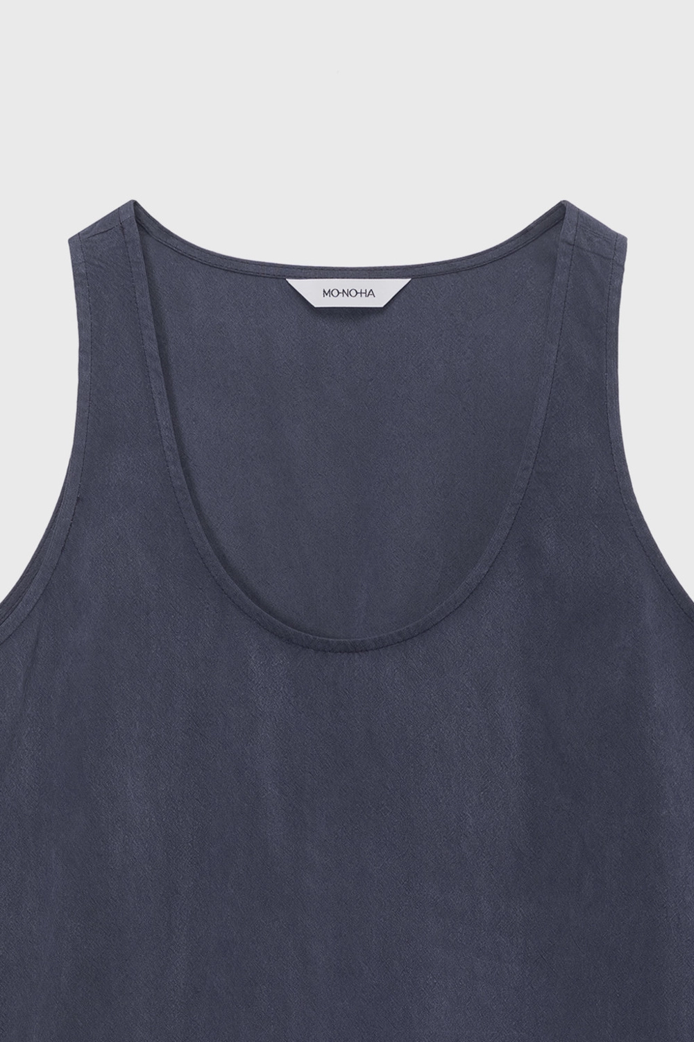 흐르는 레이온 혼방 소재에 후가공 워싱을 더해 자연스러운 빈티지 무드를 살린 슬리브리스 톱입니다. 단독으로 착용하기 좋은 적당히 파인 넥 라인과 여유 있는 사이즈로 편안한 실루엣을 완성했으며, 군더더기 없는 디자인으로 다양한 스타일에 활용도가 높은 아이템입니다.