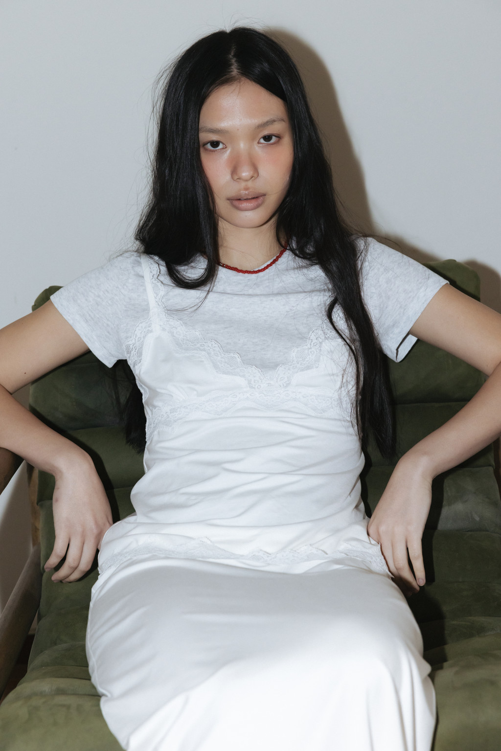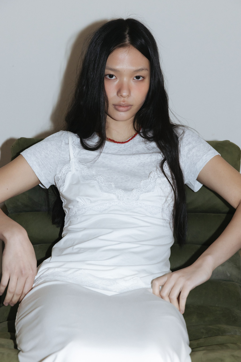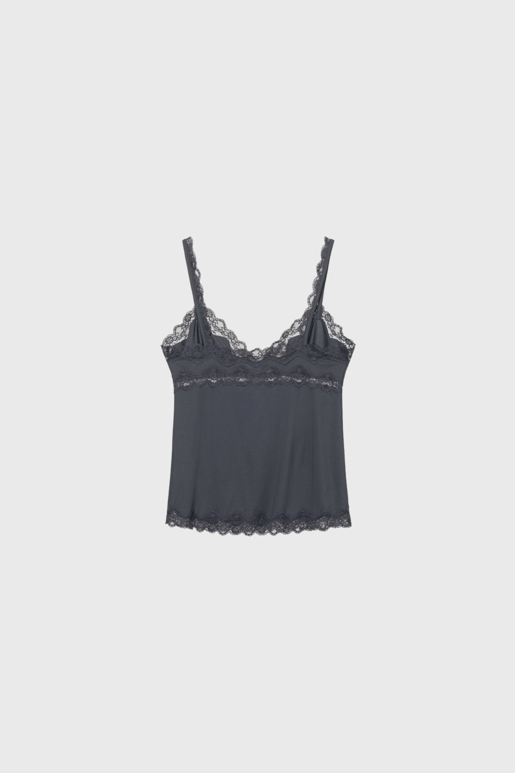 은은한 광택이 도는 실키한 저지 소재로 제작된 캐미 탑입니다. 부드러운 터치감과 신축성이 어우러져 체형에 구애 없이 편안하게 착용할 수 있습니다. 전체에 더해진 레이스 트리밍 디테일이 섬세한 포인트가 되며, 단독으로는 물론 티셔츠와 레이어드해 다양한 스타일링이 가능한 아이템입니다.