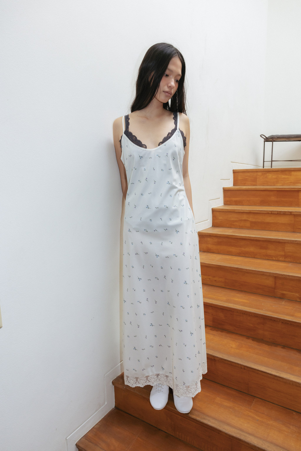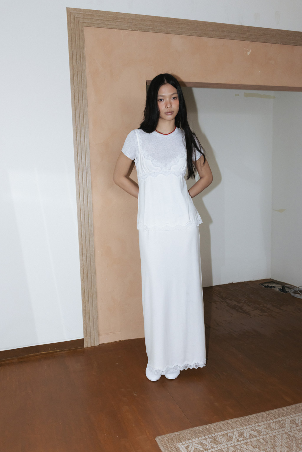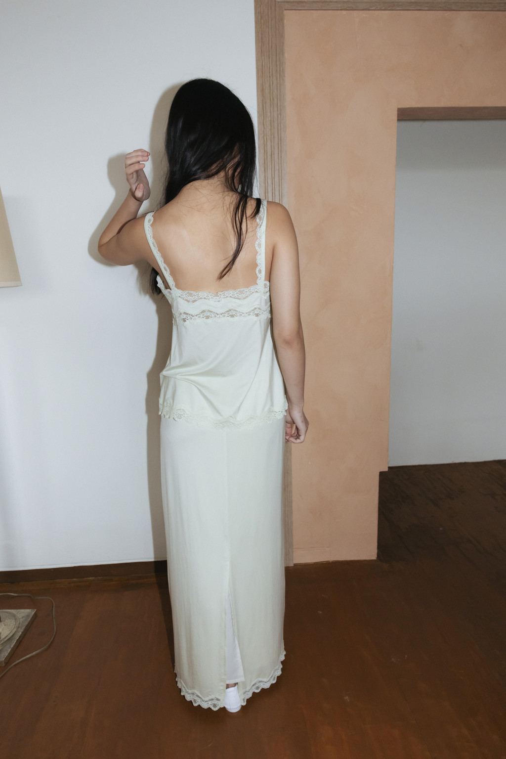Lace-Trim Flowing Jersey Cami (White / Melaon Cream / Dark Gray)NEW