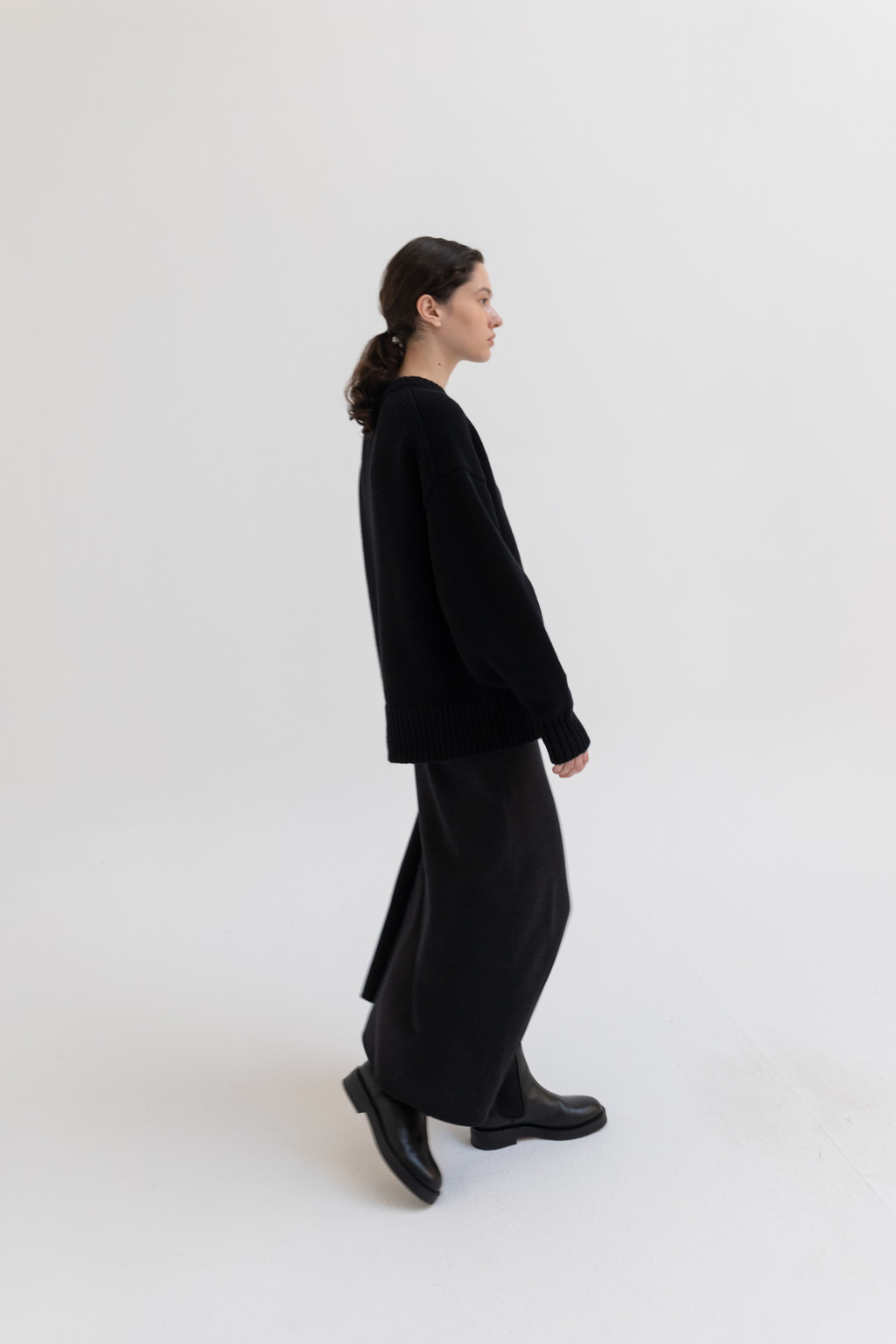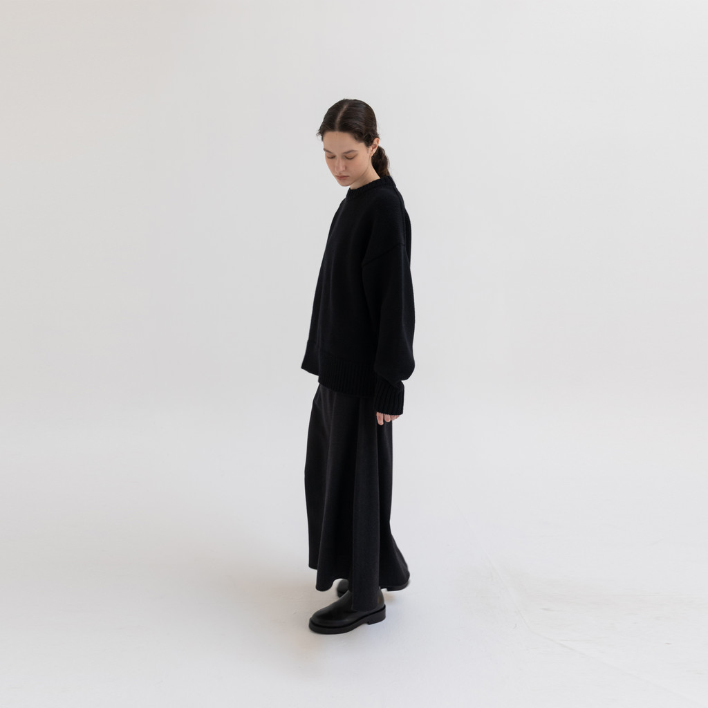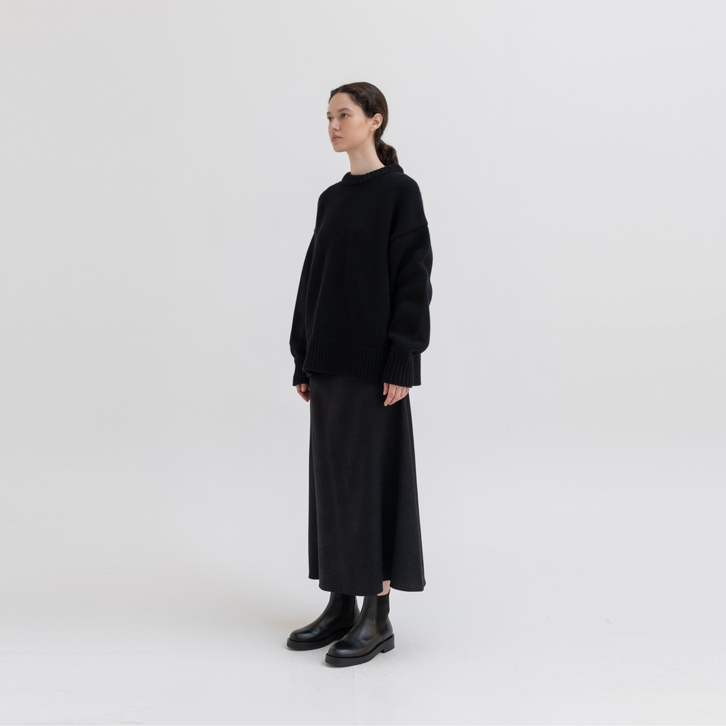 고급스러운 단직 울을 사용하여 만든 모노하의 클래식한 롱 스커트입니다. A라인 실루엣으로 여성스러운 분위기를 만들어 줍니다. 적당한 기장감으로 부츠와 함께 매치하였을 땐 세련된 연출이 가능합니다.