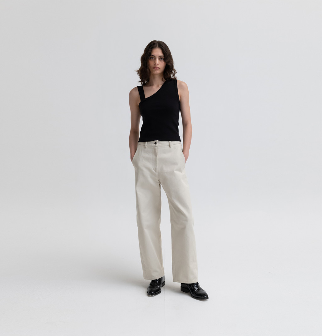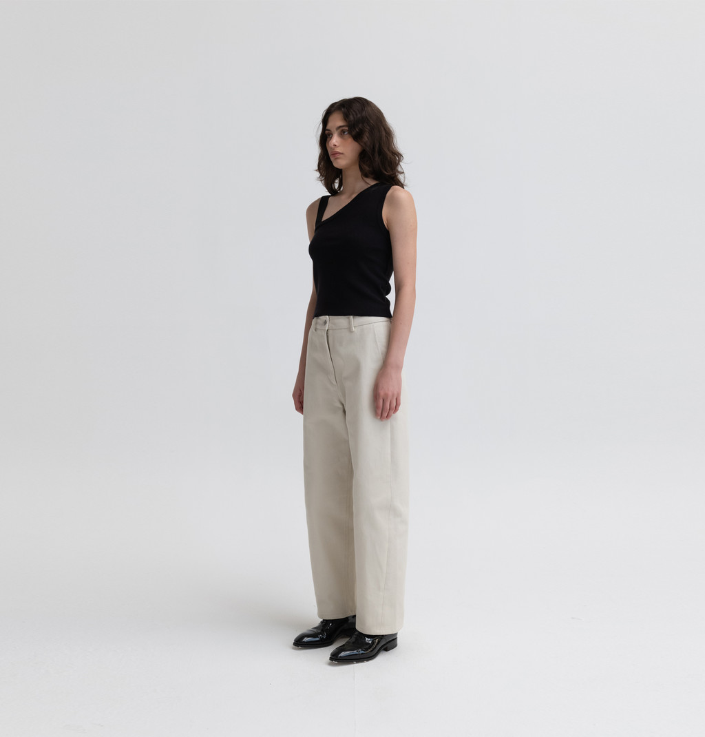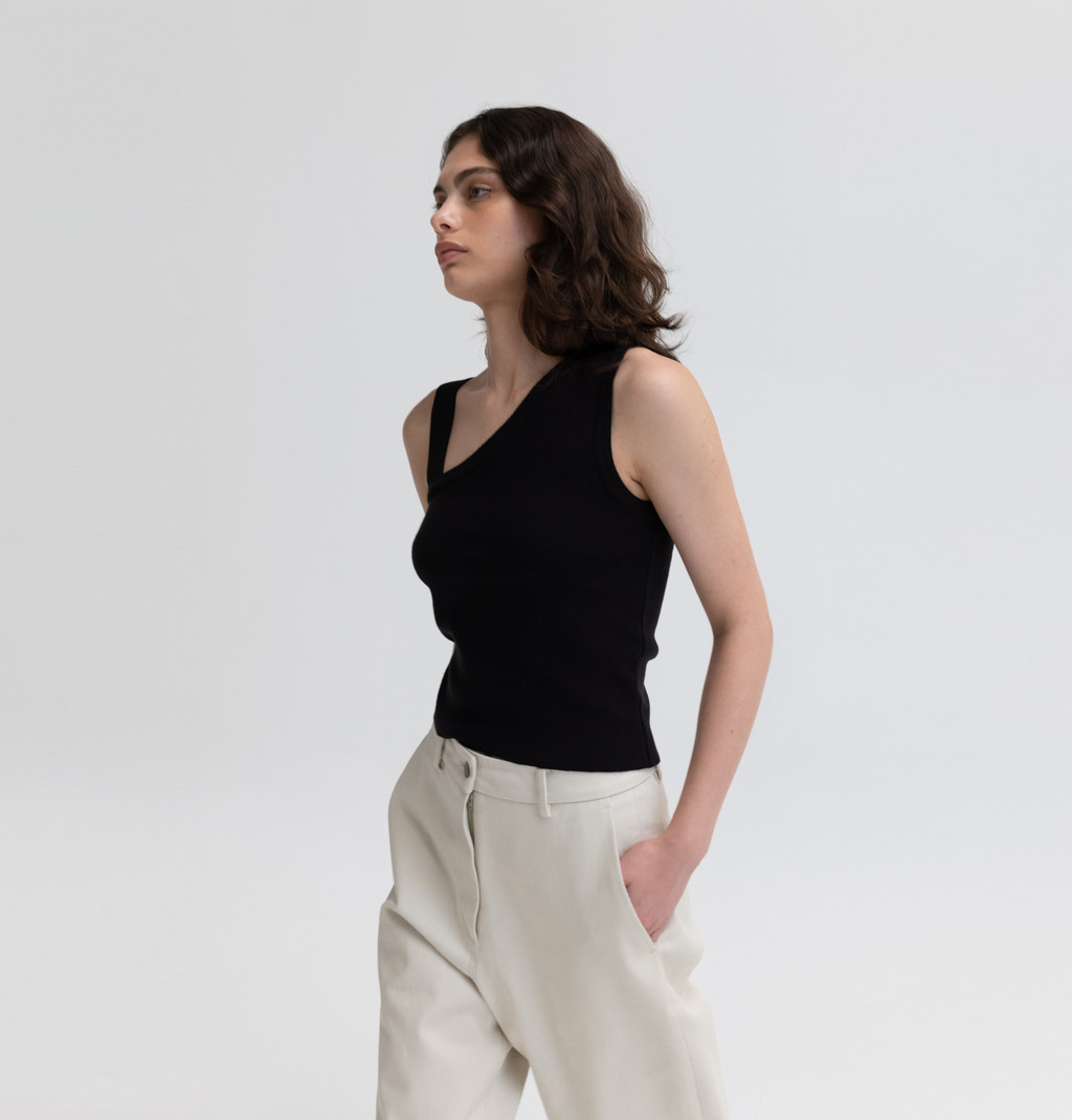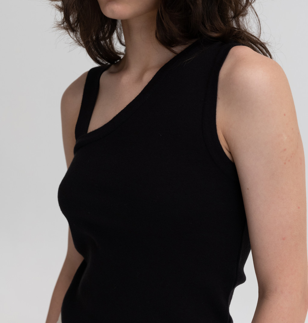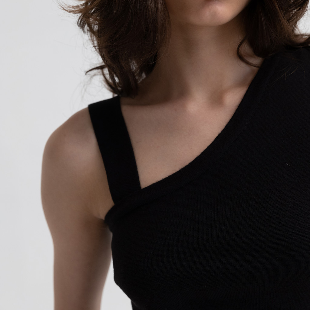 따뜻하고 부드러운 울 혼방 원사를 사용하여 제직한 슬리브리스입니다. 어깨가 비대칭 되는 디자인으로 이너나 단독으로도 세련된 분위기 연출이 가능합니다. 체형에 구애받지 않는 단단한 짜임이 특징입니다.