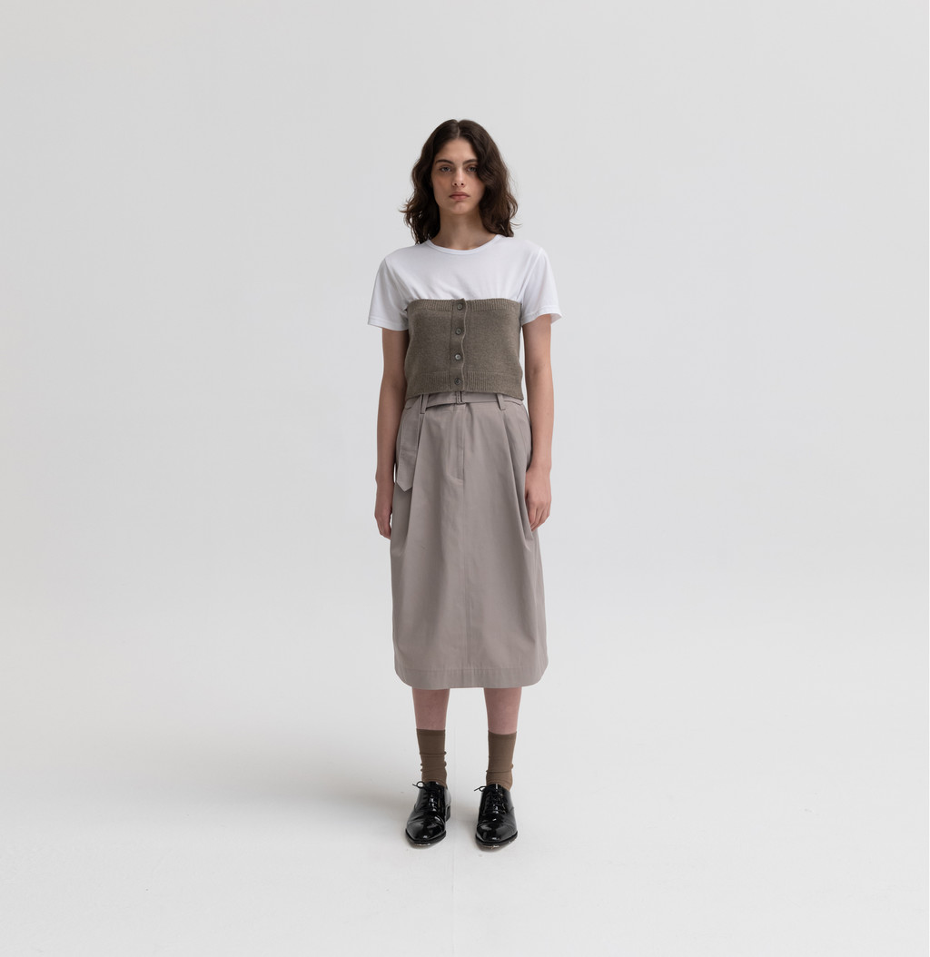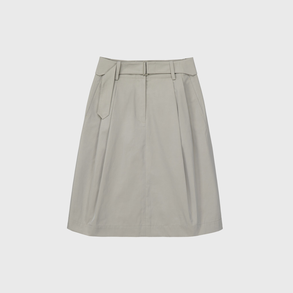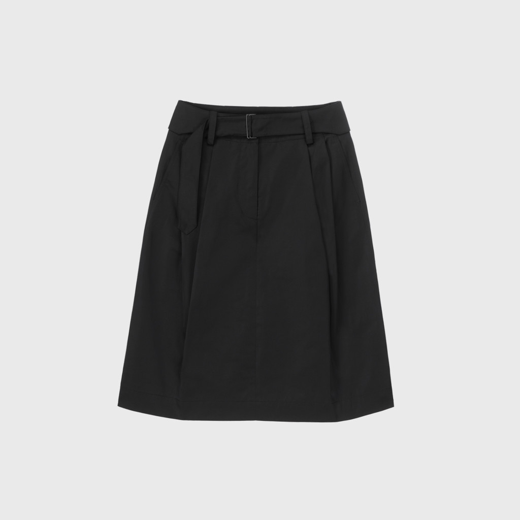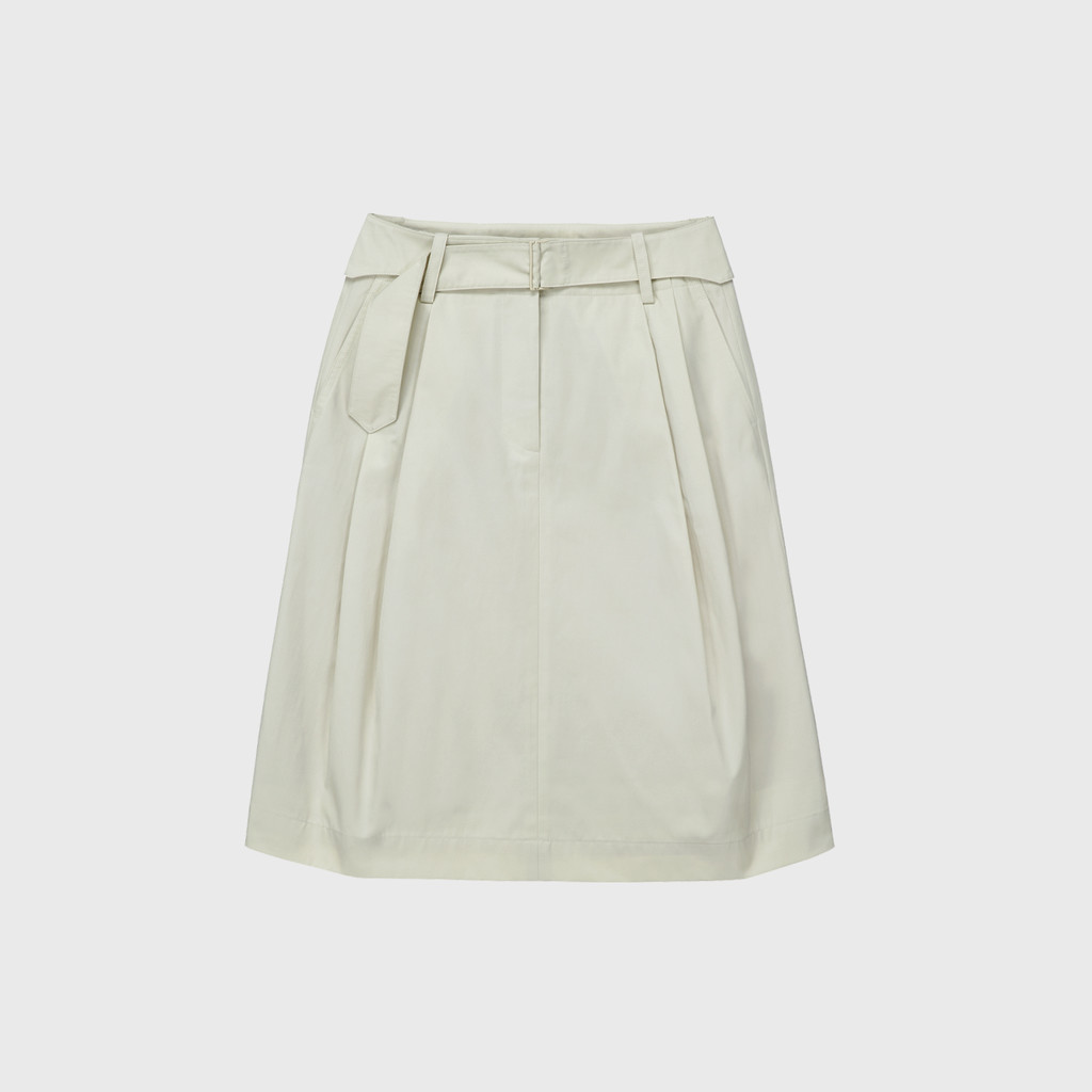 은은한 광택이 느껴지는 고밀도의 코튼 혼방인 소재를 사용하여 만든 벨트 스커트입니다. 턱이 있어 사이즈가 넉넉하고 밑으로 갈수록 둥근 실루엣이 특징입니다. 따뜻함이 느껴지는 안감을 덧대어 보온성을 높였습니다. 다양한 신발에 잘 어울리는 무릎까지의 기장감이며, 캐주얼한 무드를 잘 나타내어 줍니다.