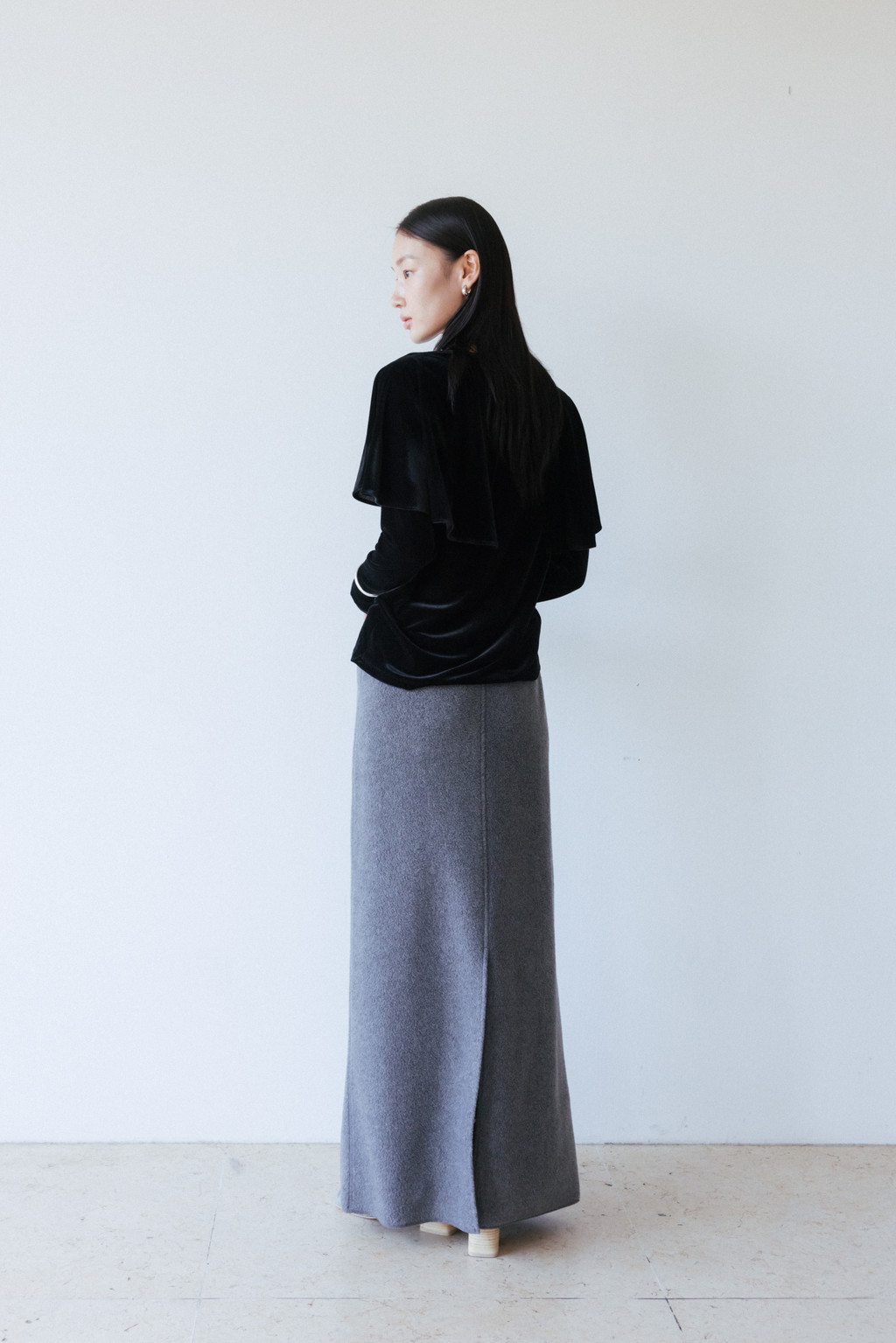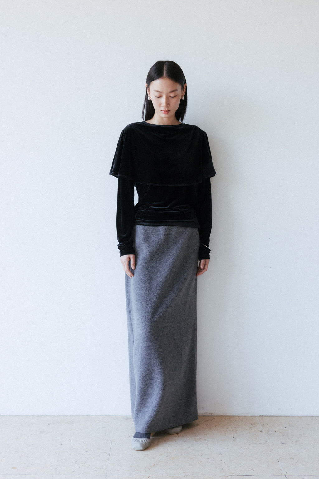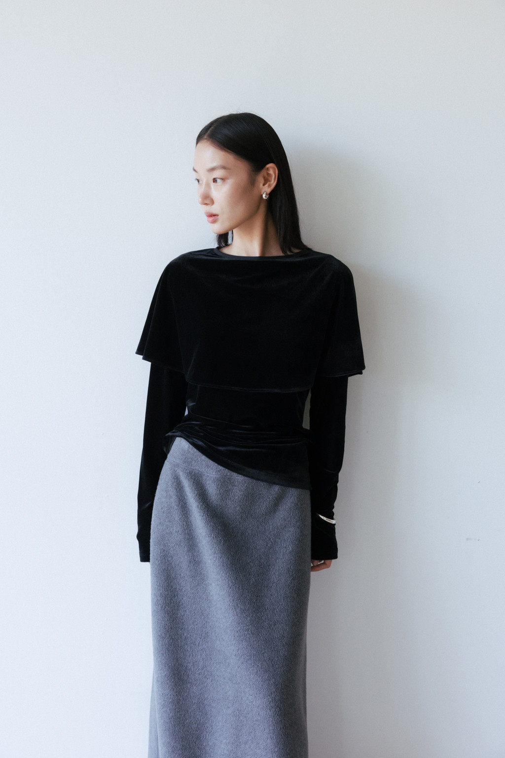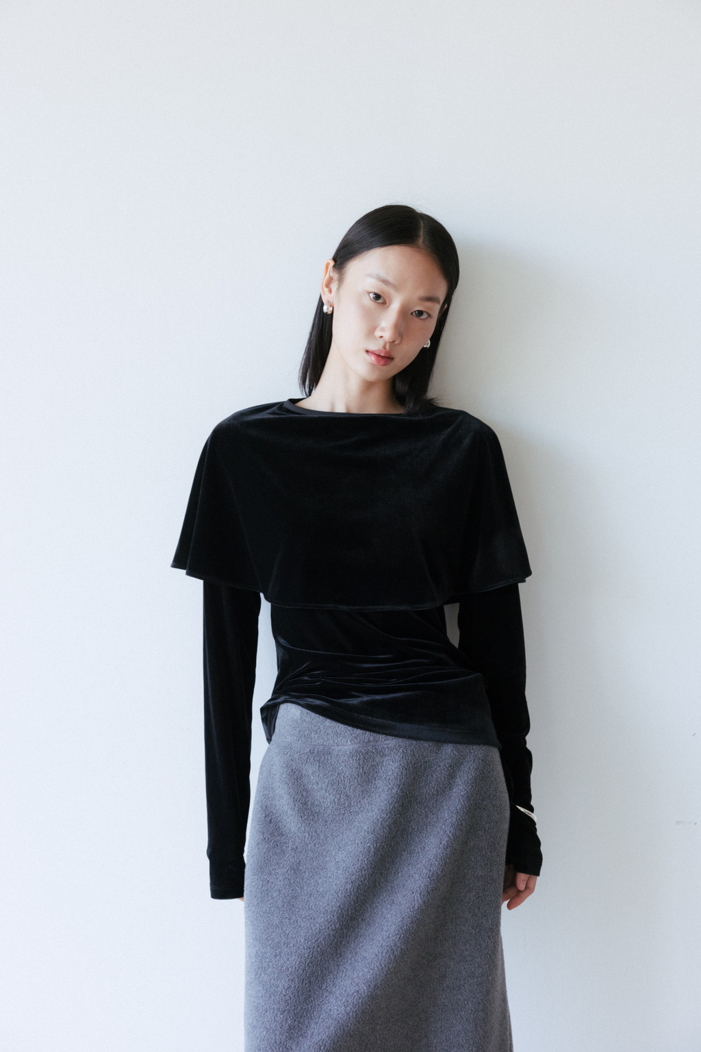 Velvet Jersey Cape T-Shirt (Ivory / Gray / Black / Khaki)