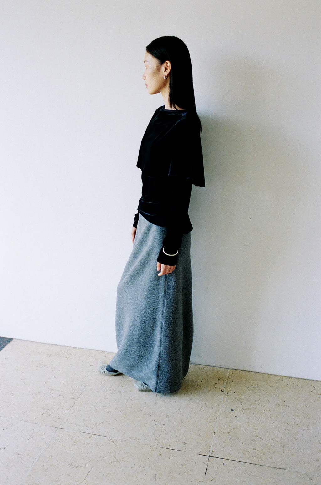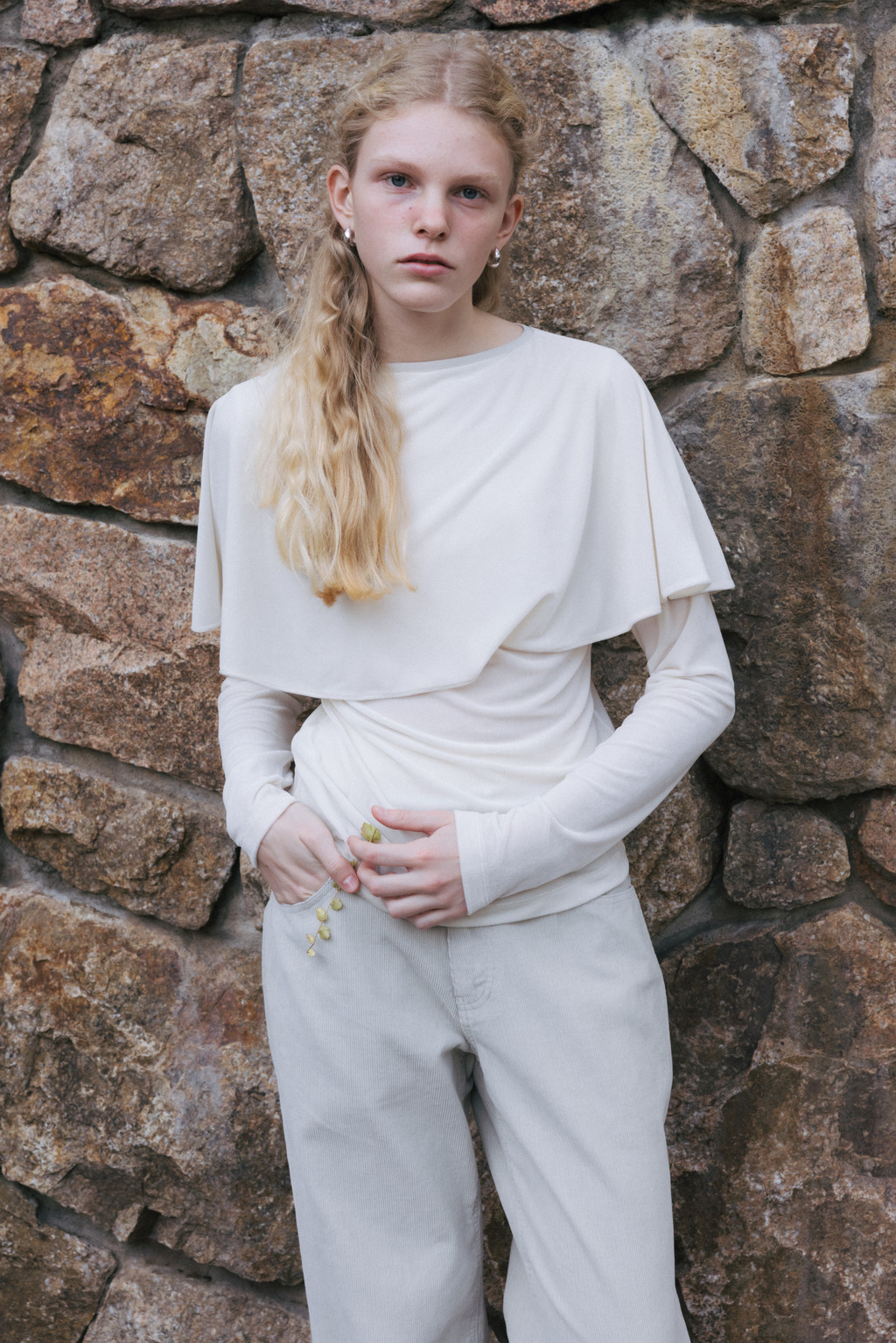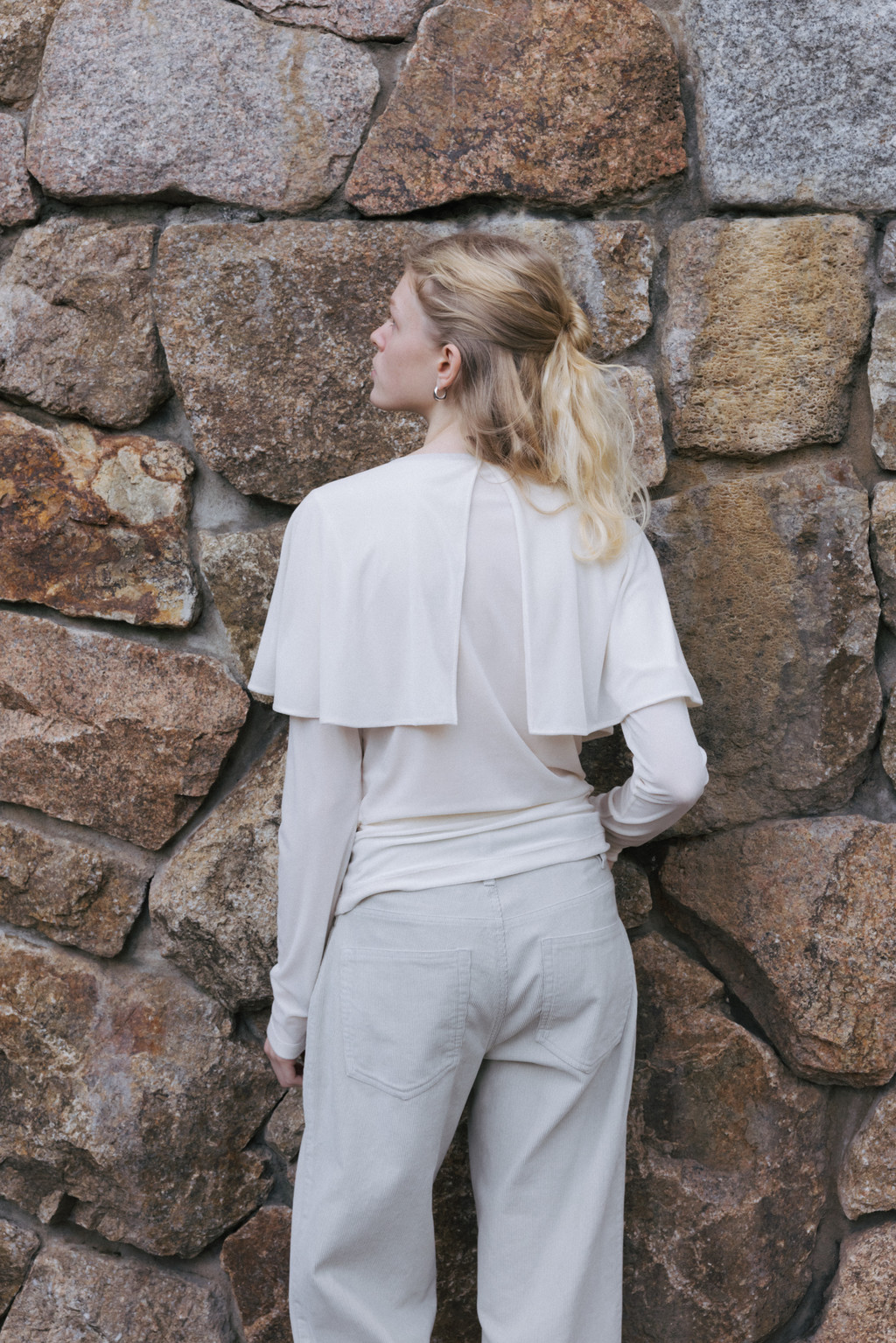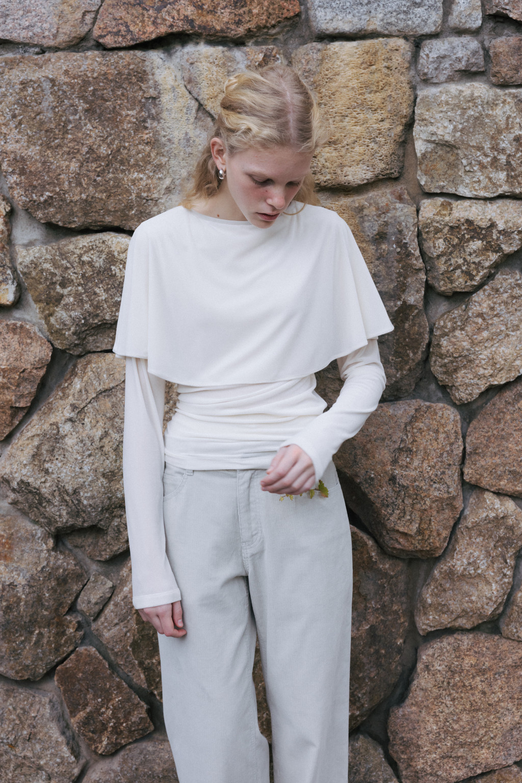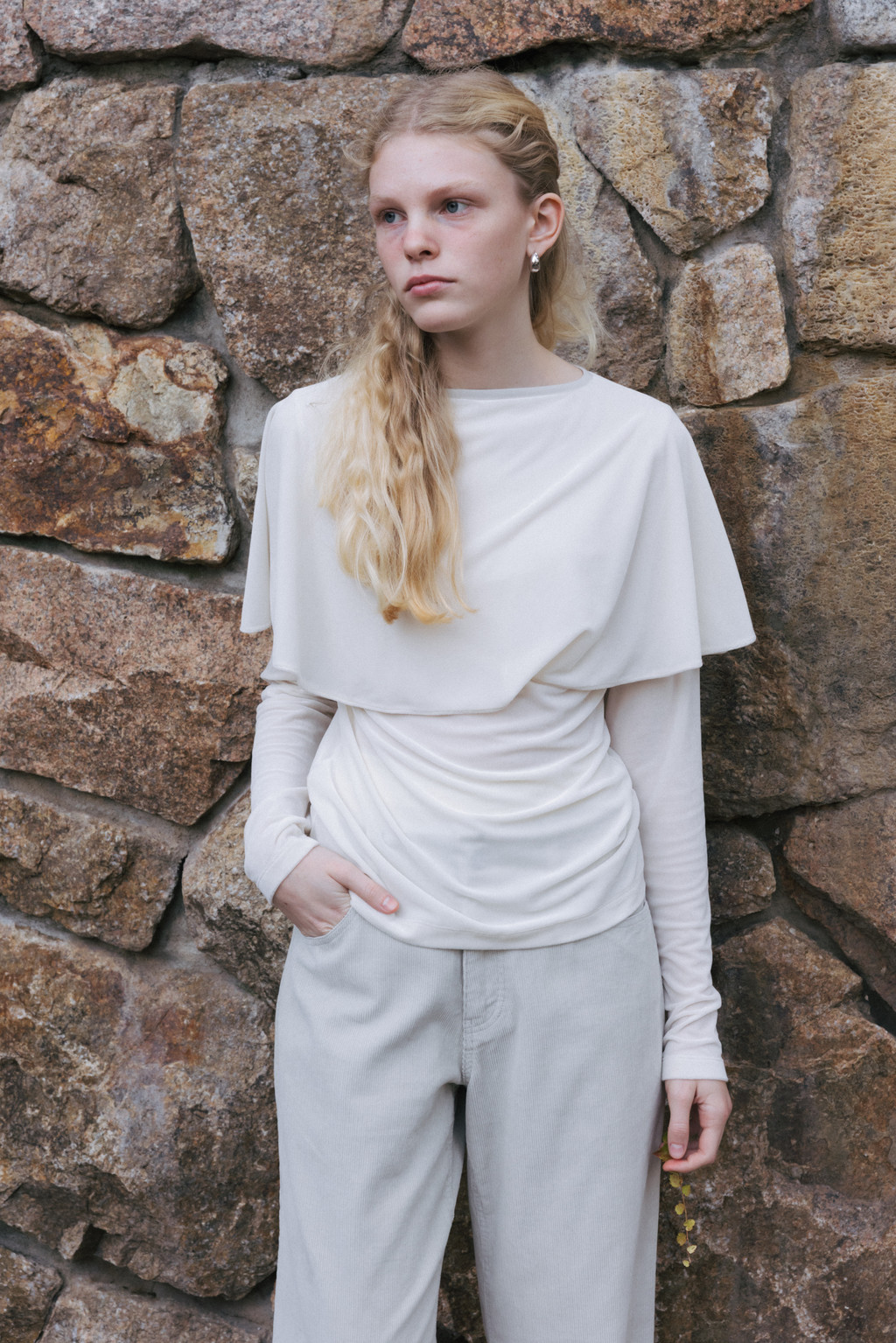 Velvet Jersey Cape T-Shirt (Ivory / Gray / Black / Khaki)